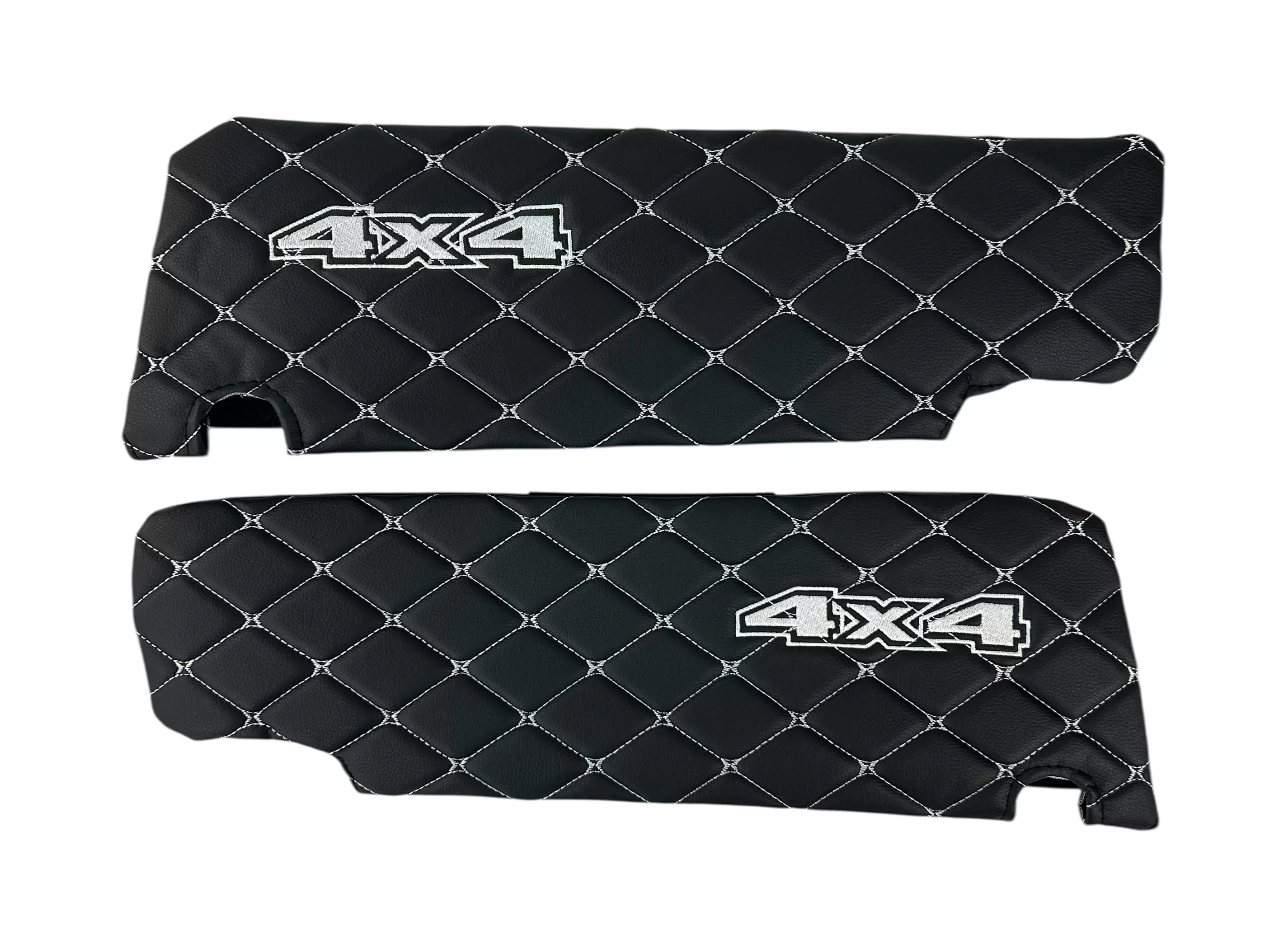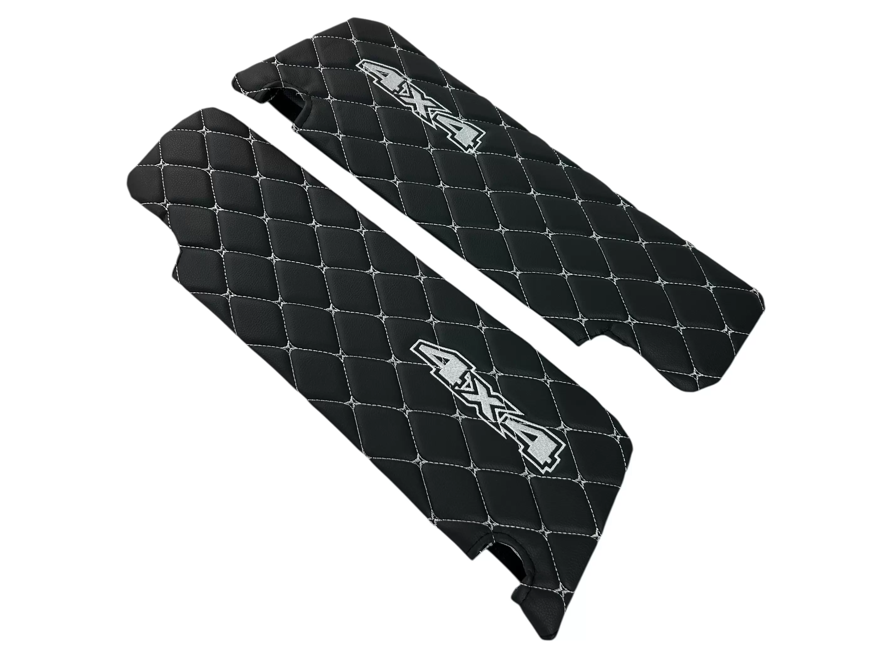 Чехлы на козырьки УАЗ Патриот, Пикап, Профи с лого 4х4, черный ромб белая нить