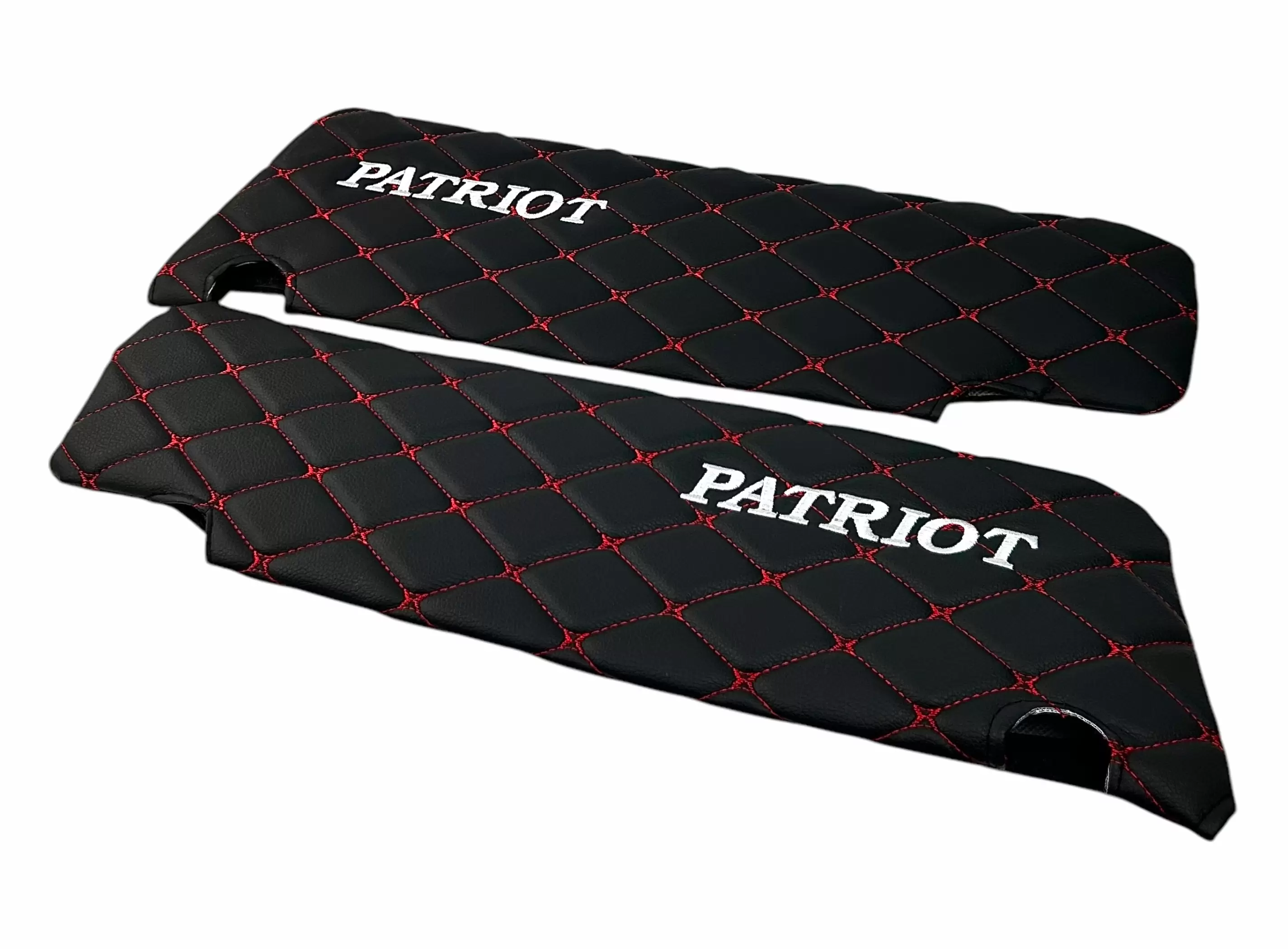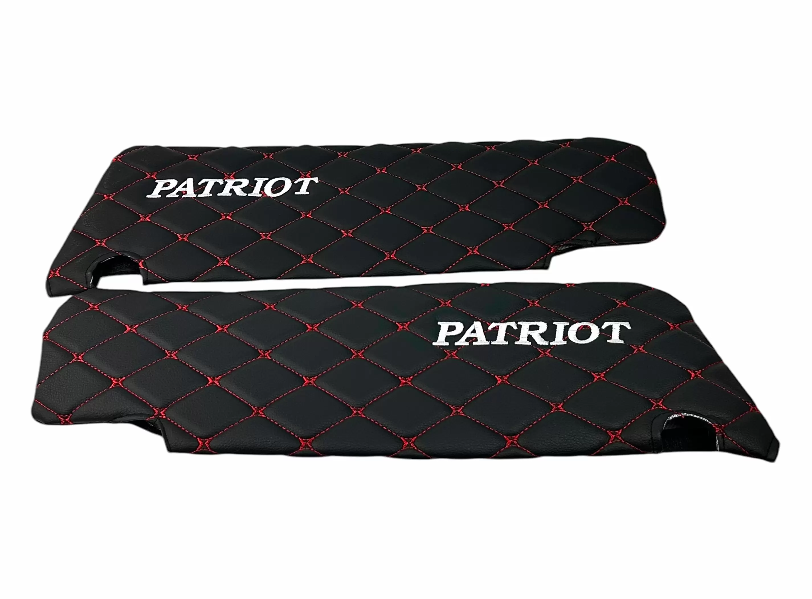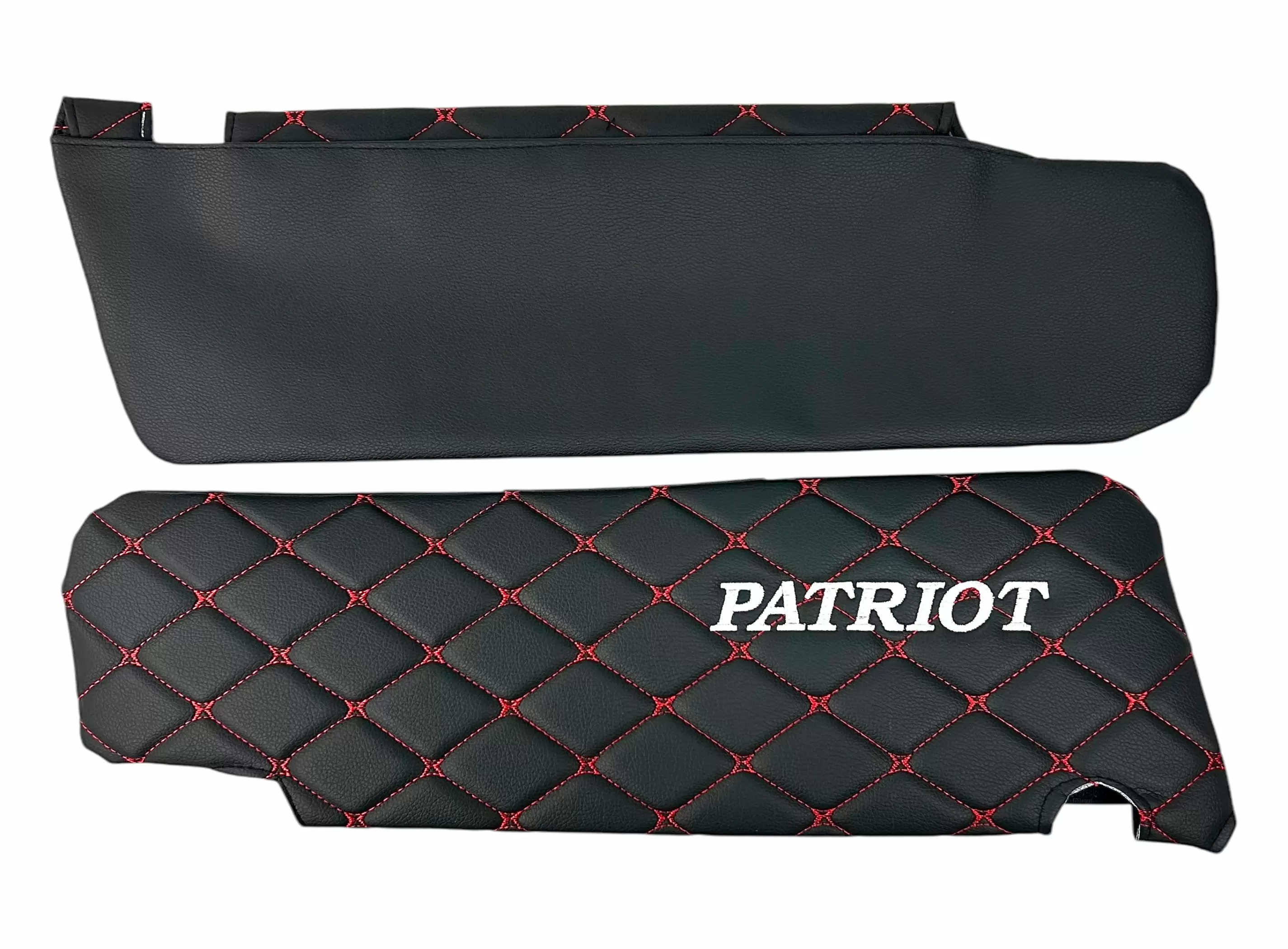 Чехлы на козырьки УАЗ Патриот, Пикап, Профи с надписью, черный ромб красная нить, 2 шт к-т
