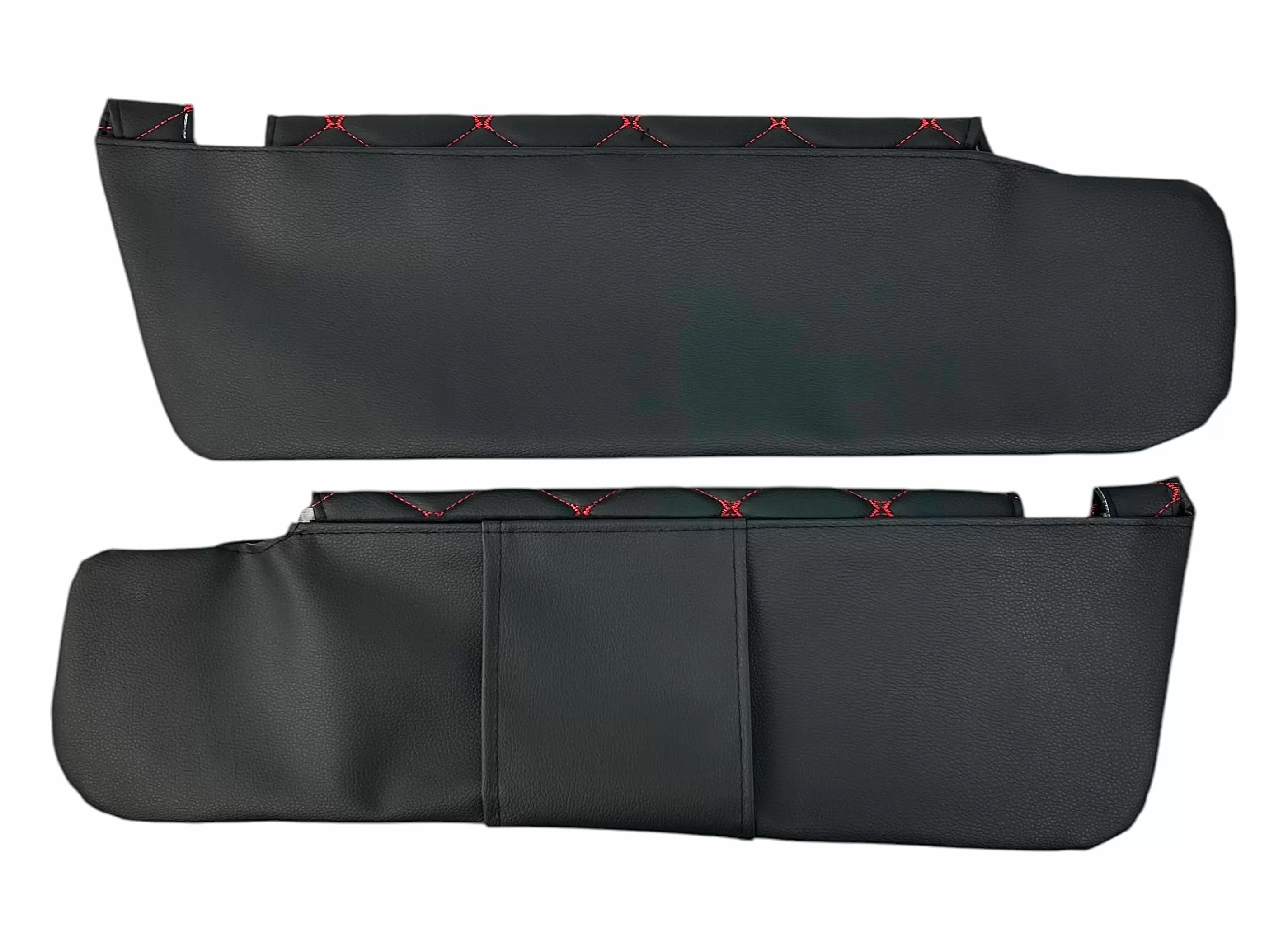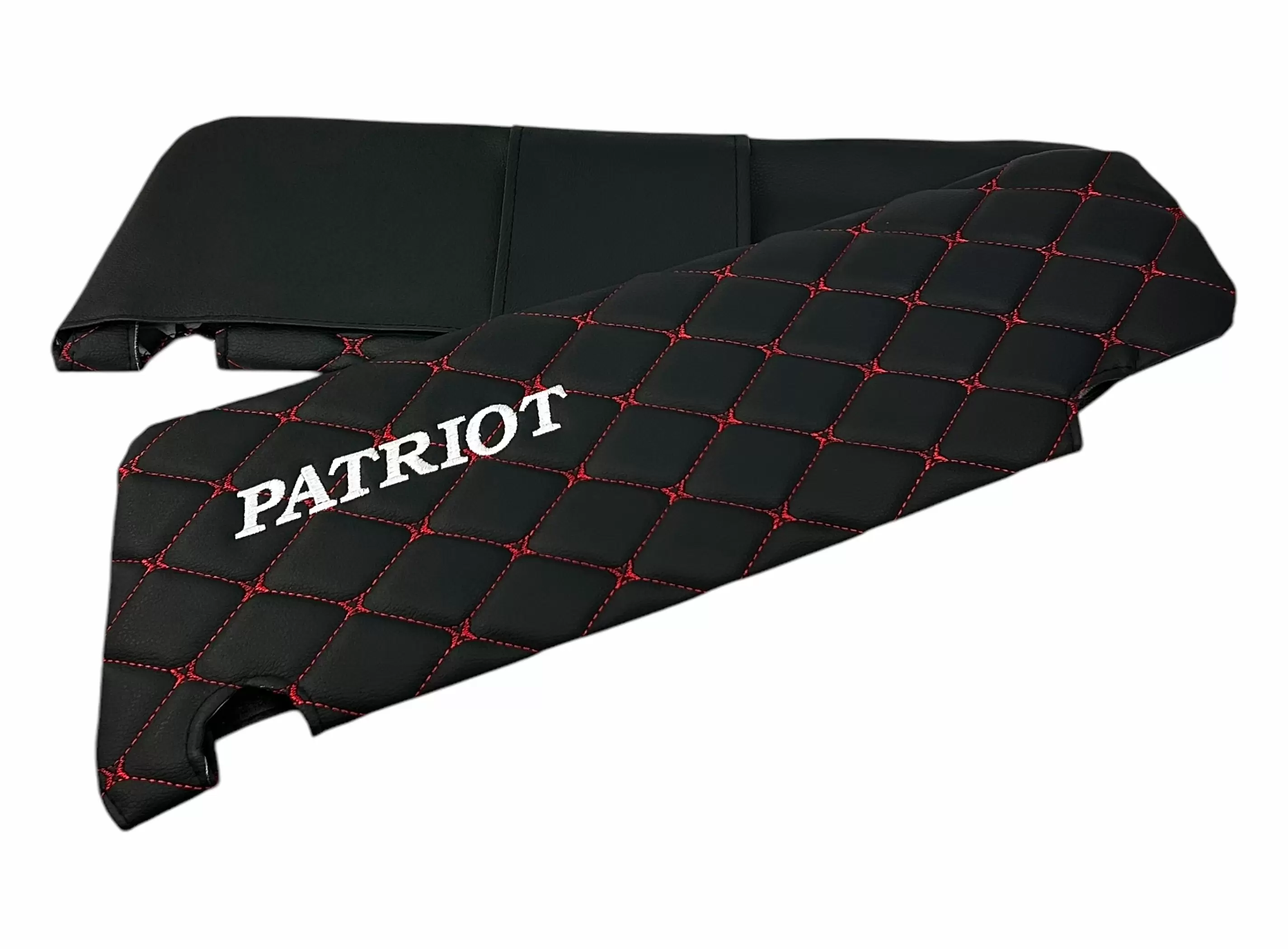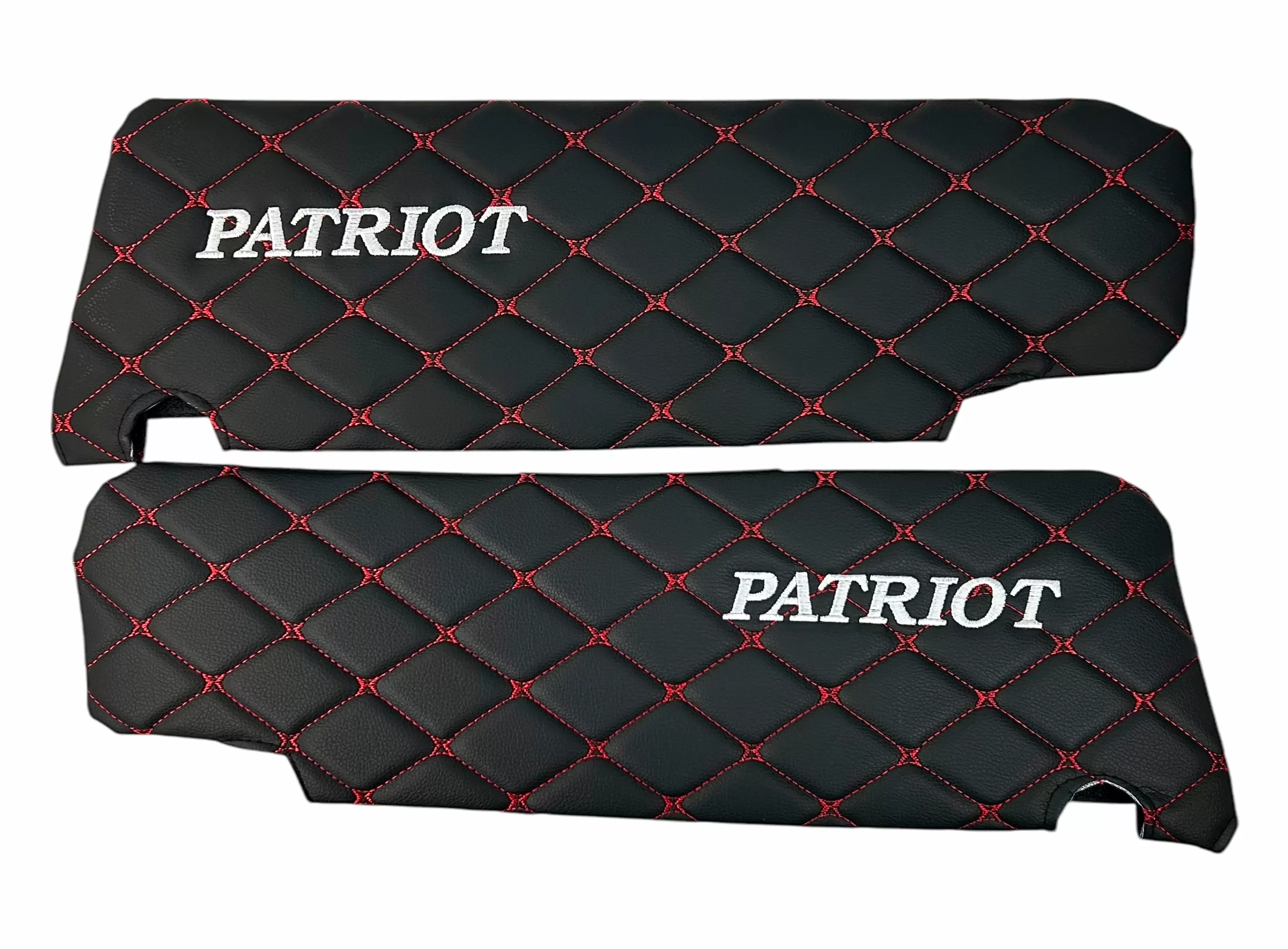 Чехлы на козырьки УАЗ Патриот, Пикап, Профи с надписью, черный ромб красная нить, 2 шт к-т
