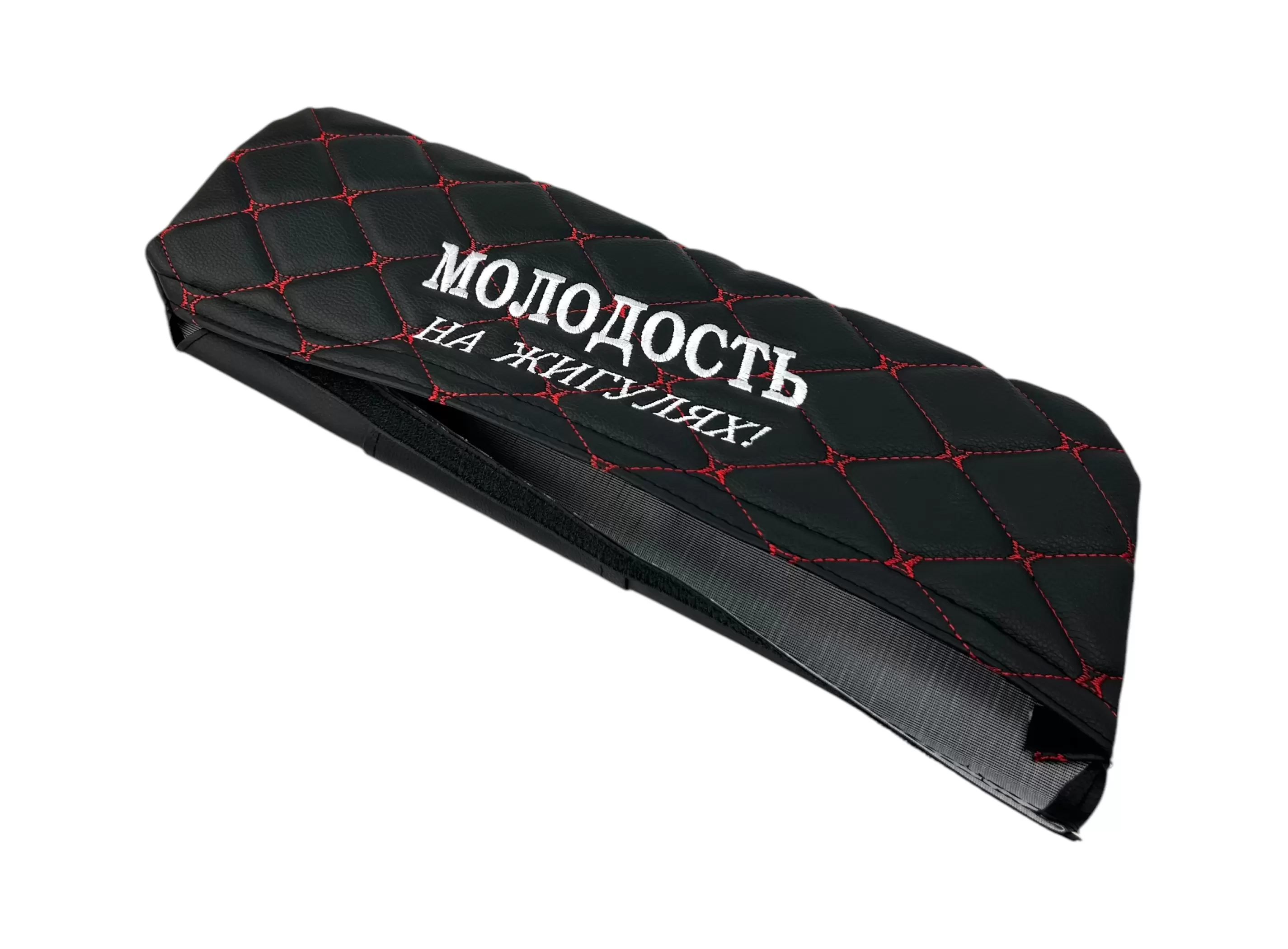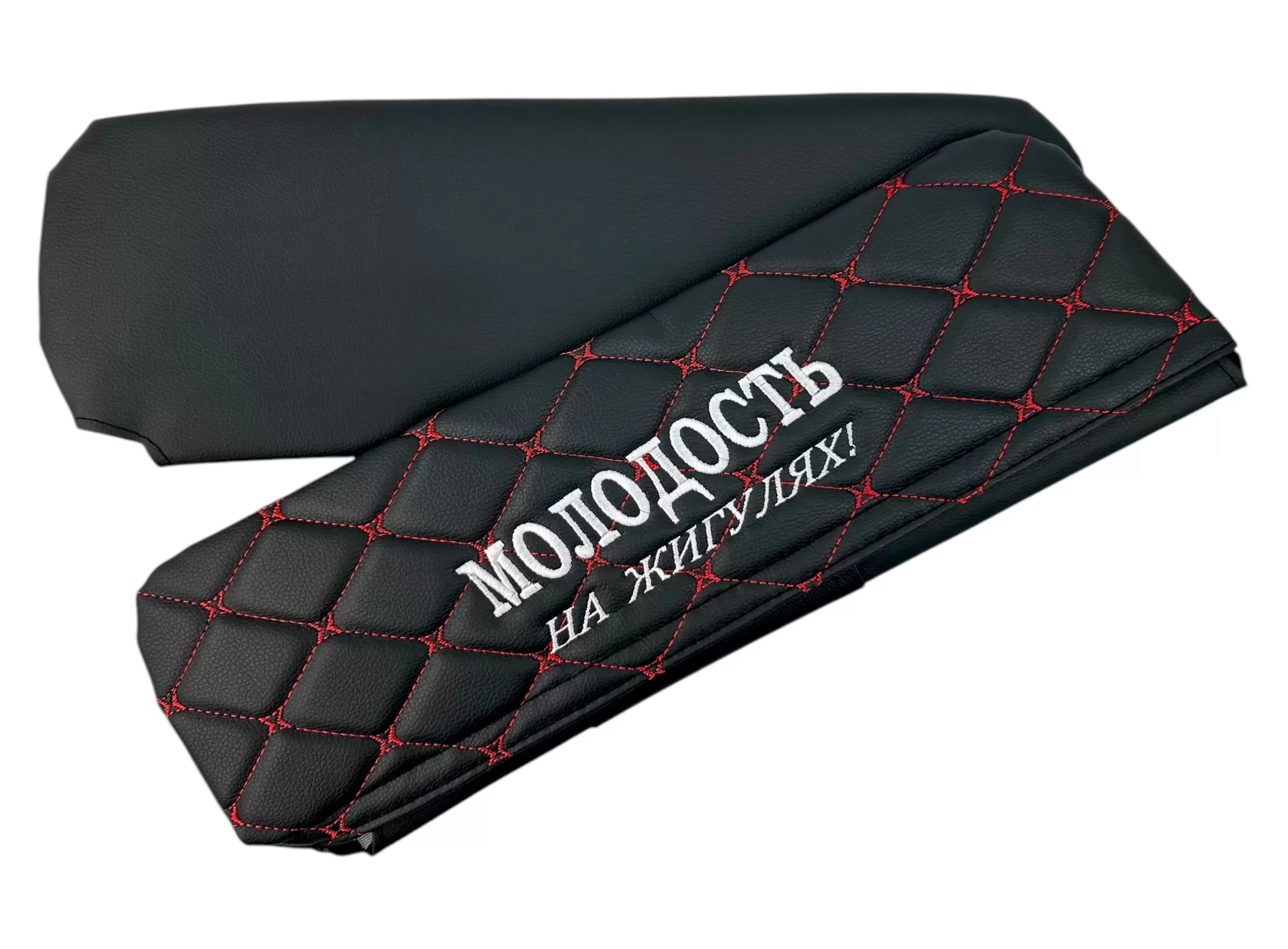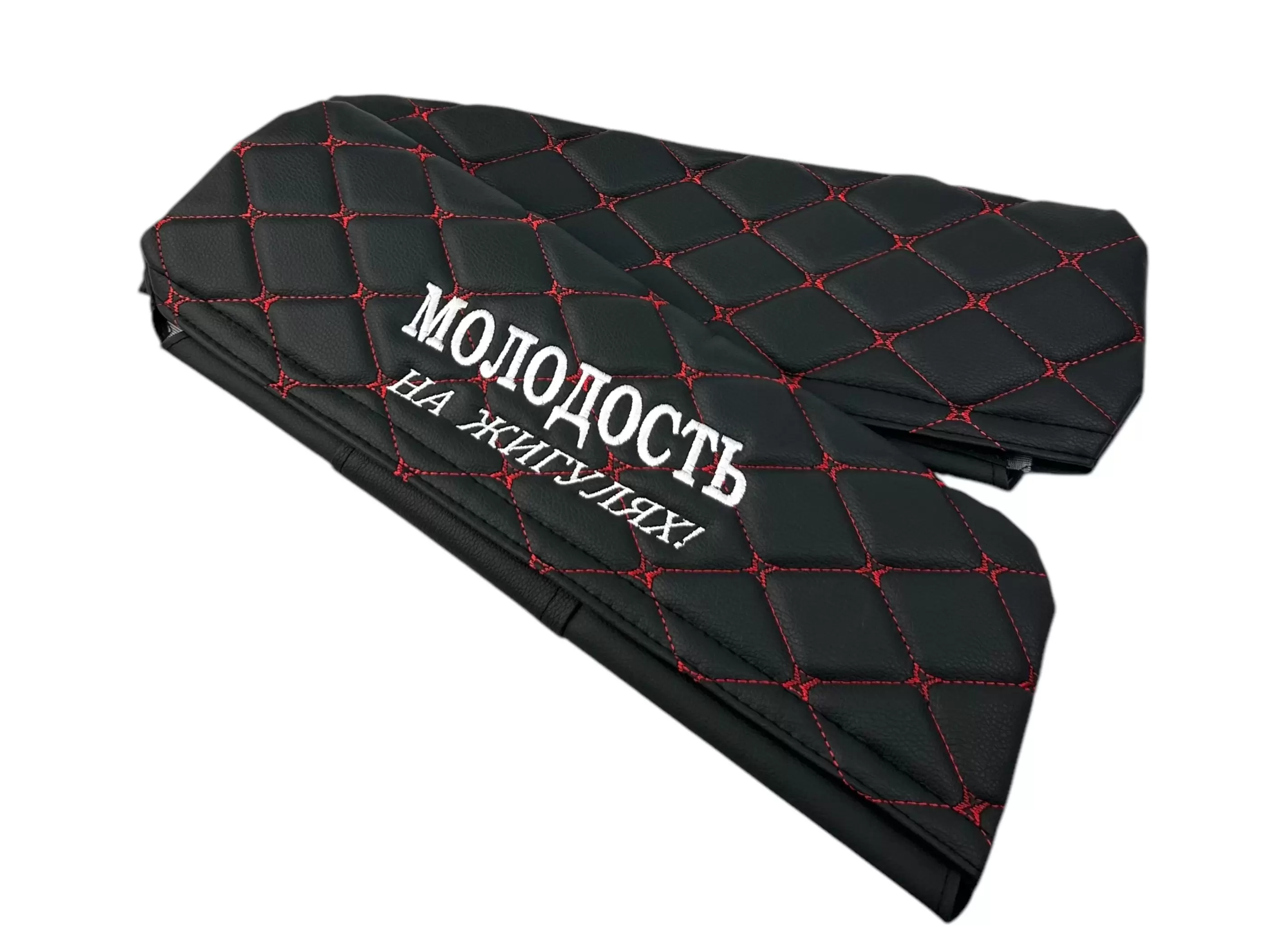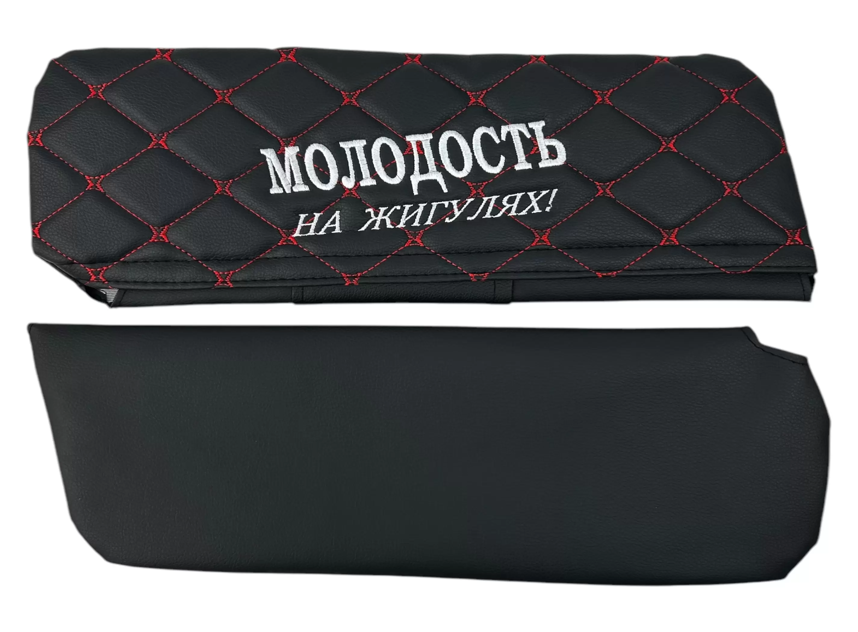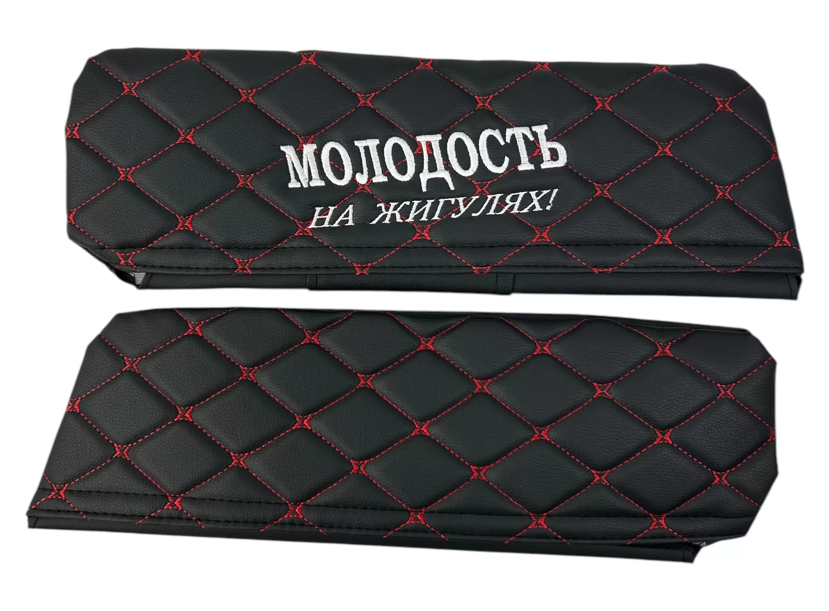 Чехлы на козырьки ВАЗ 2104, 2105, 2107 "Молодость на Жигулях" черный ромб, красная нить