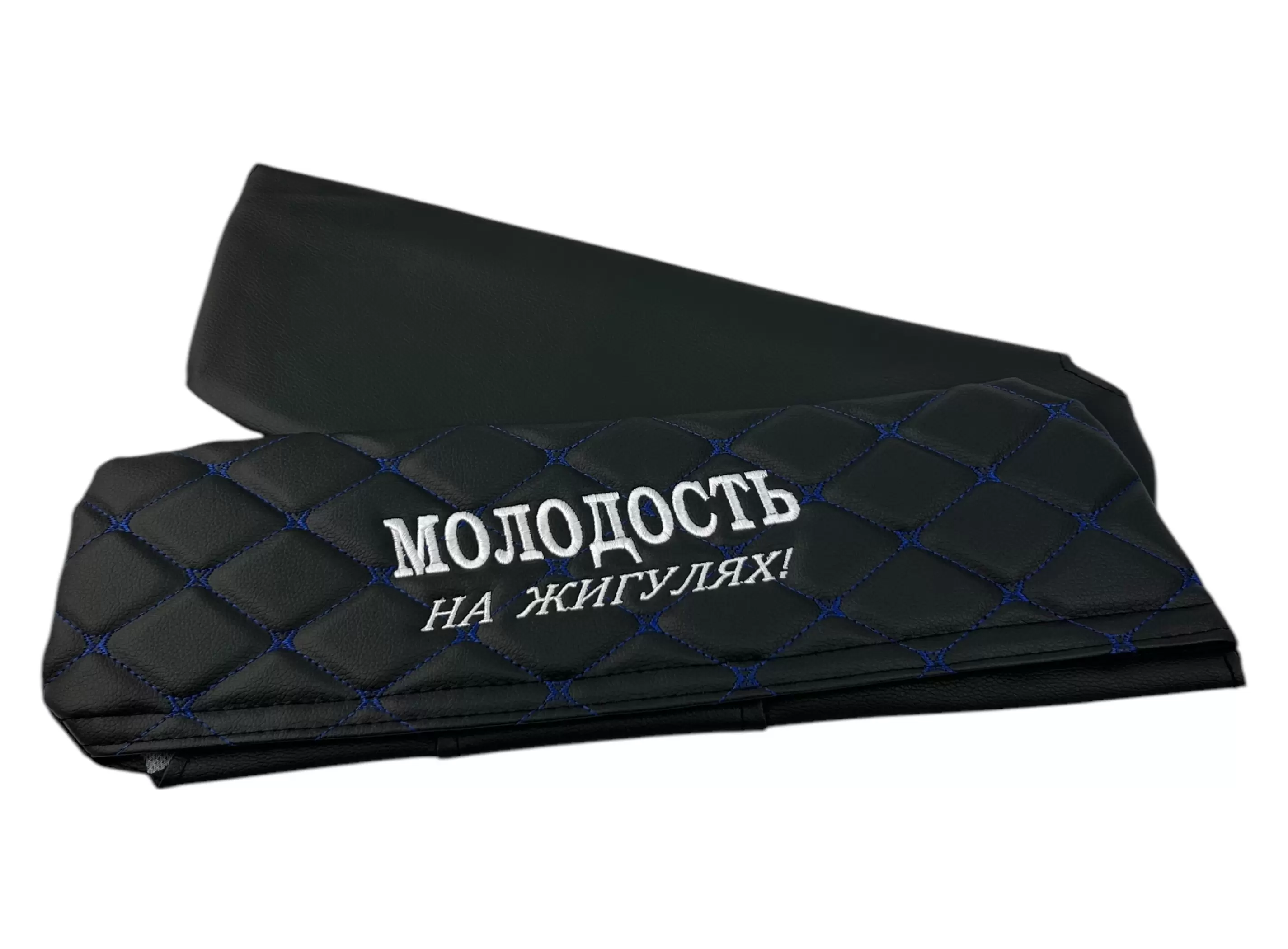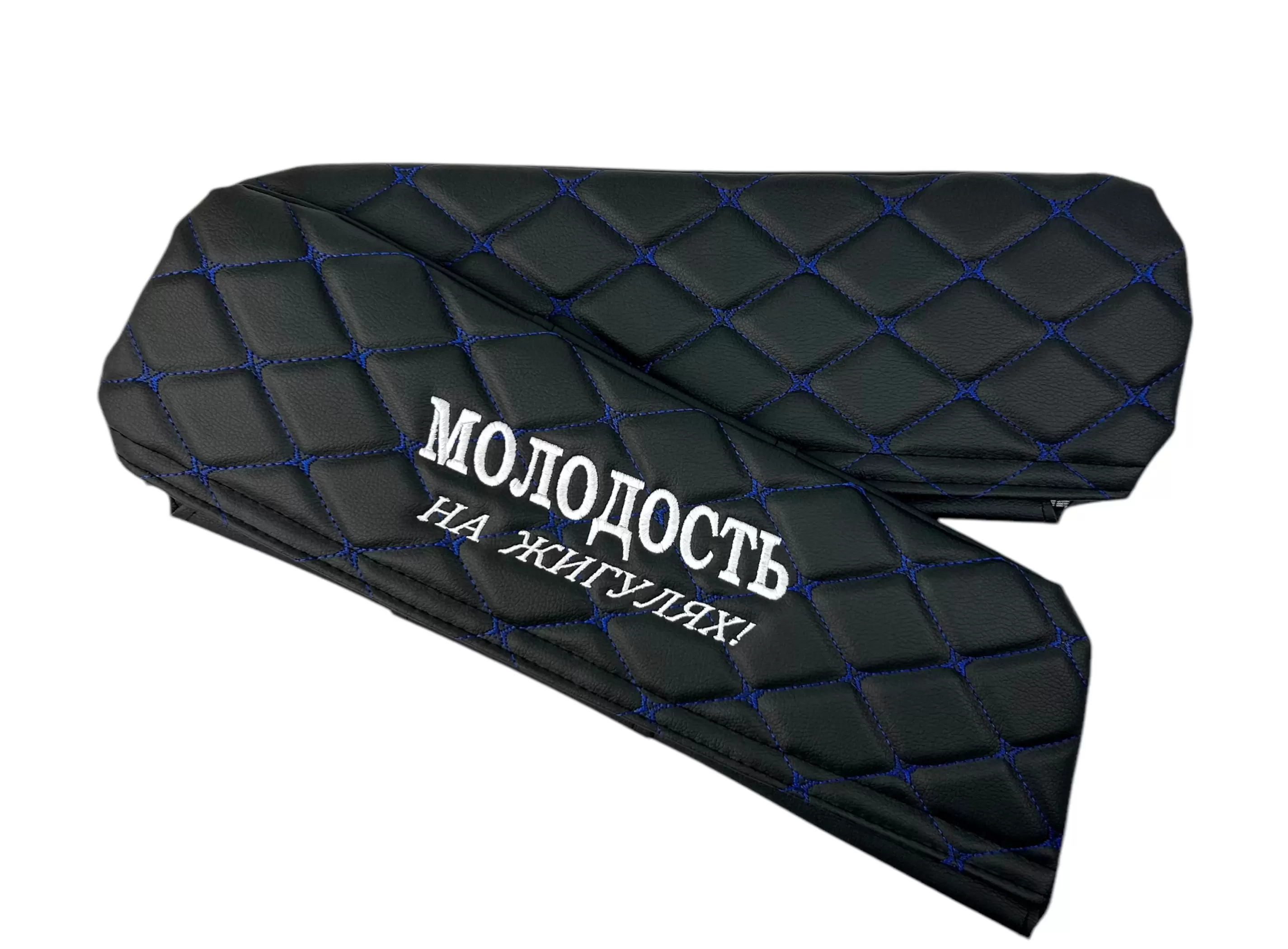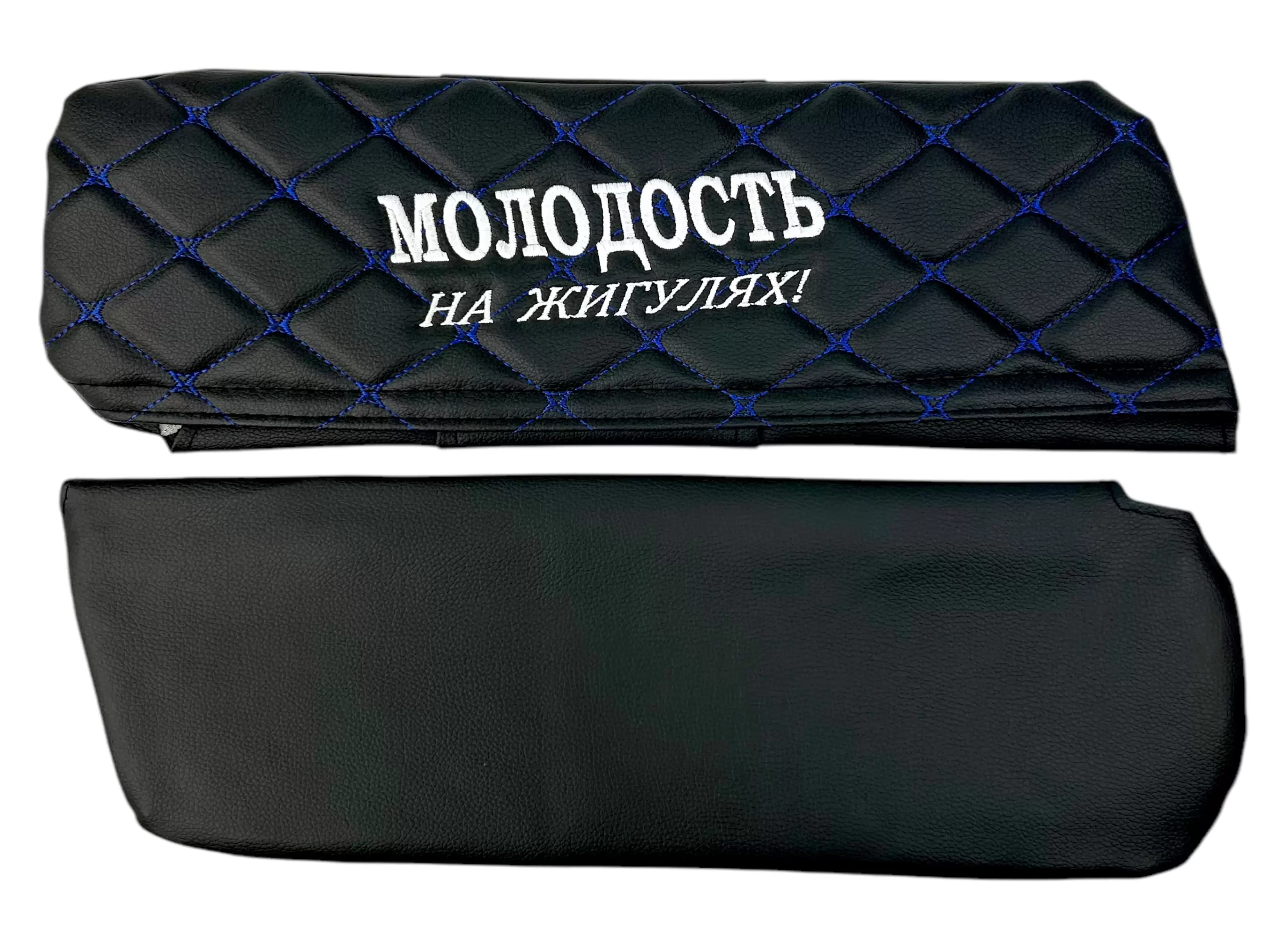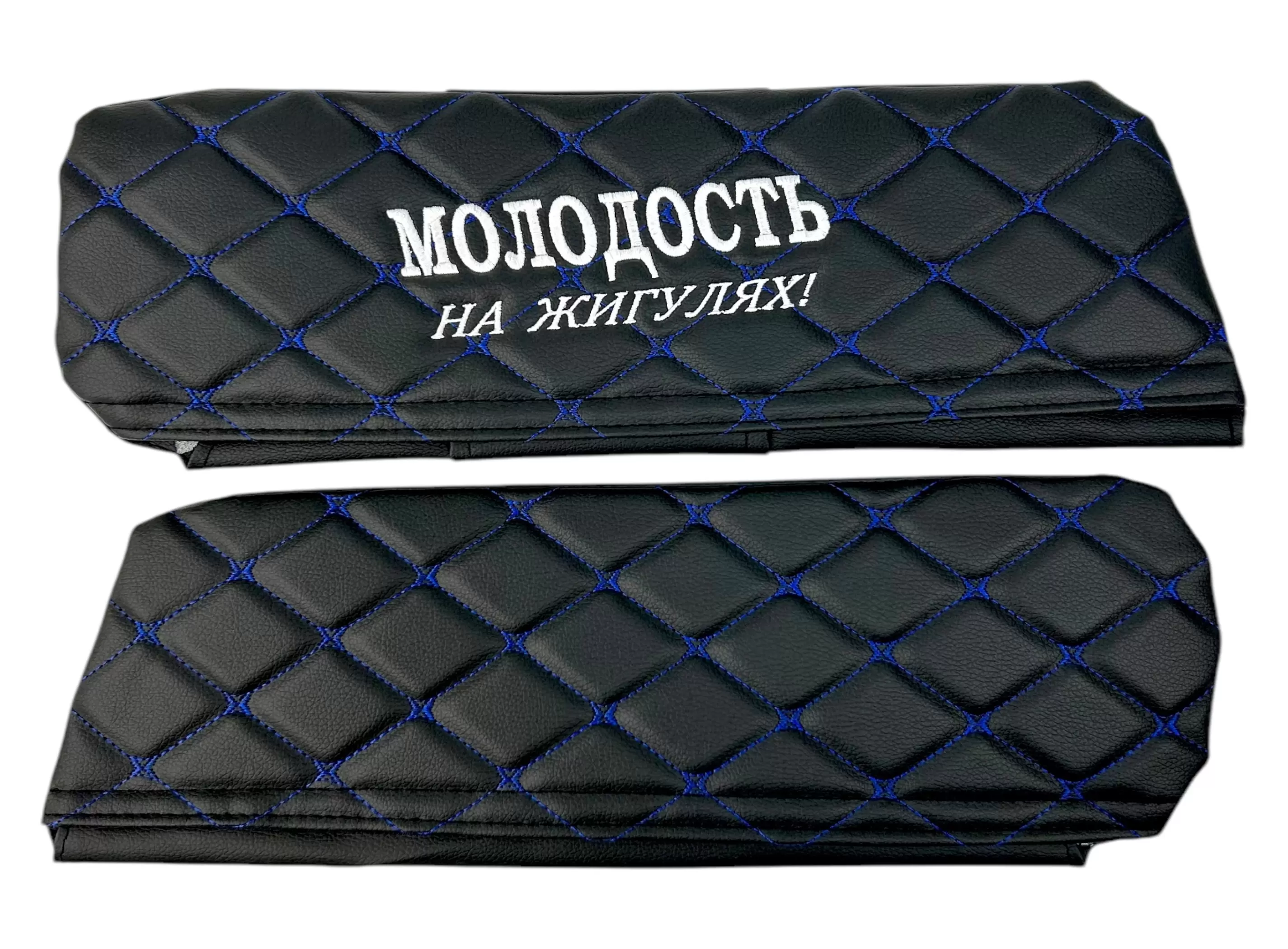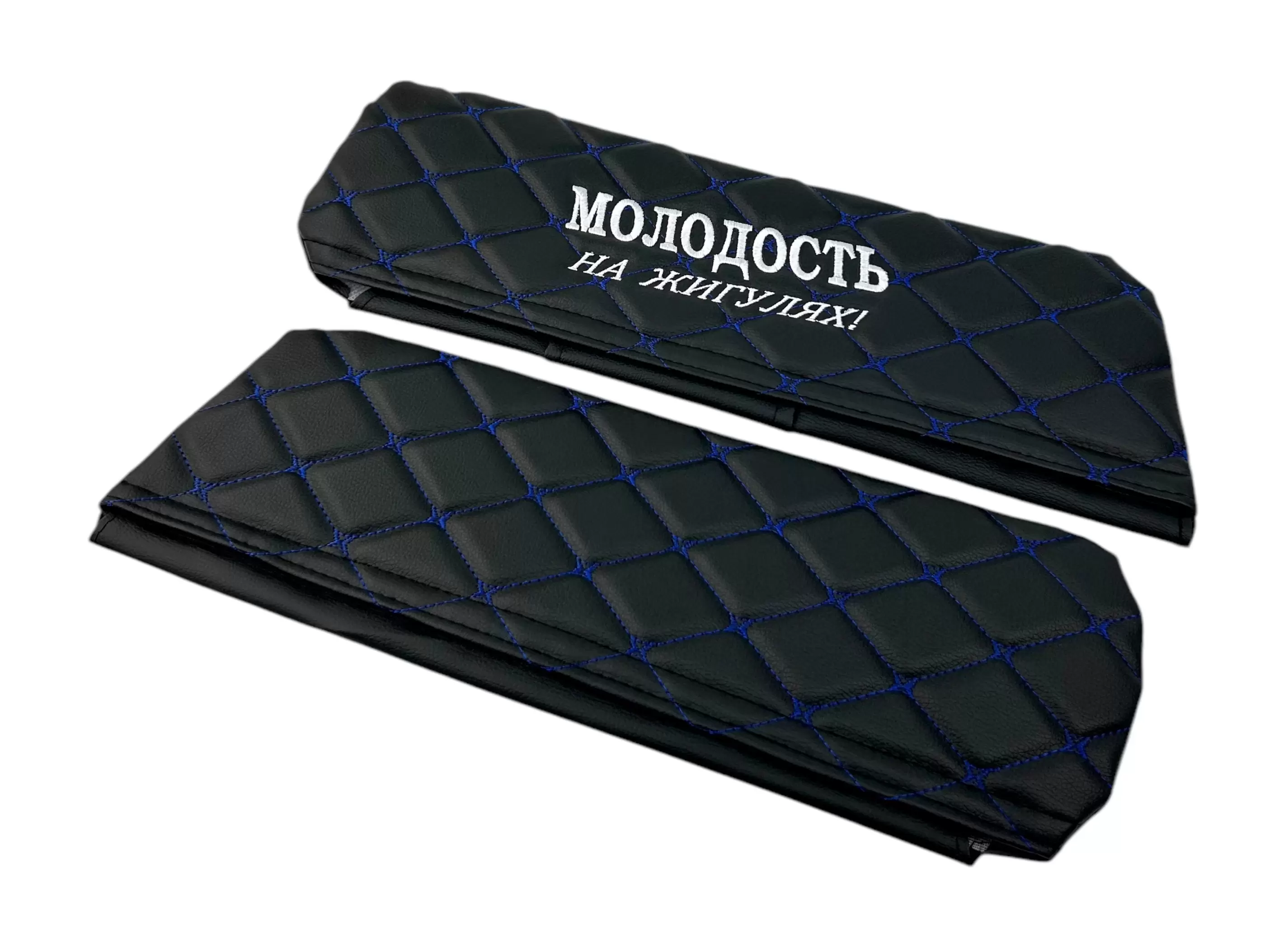 Чехлы на козырьки ВАЗ 2104, 2105, 2107 "Молодость на Жигулях" черный ромб, синяя нить