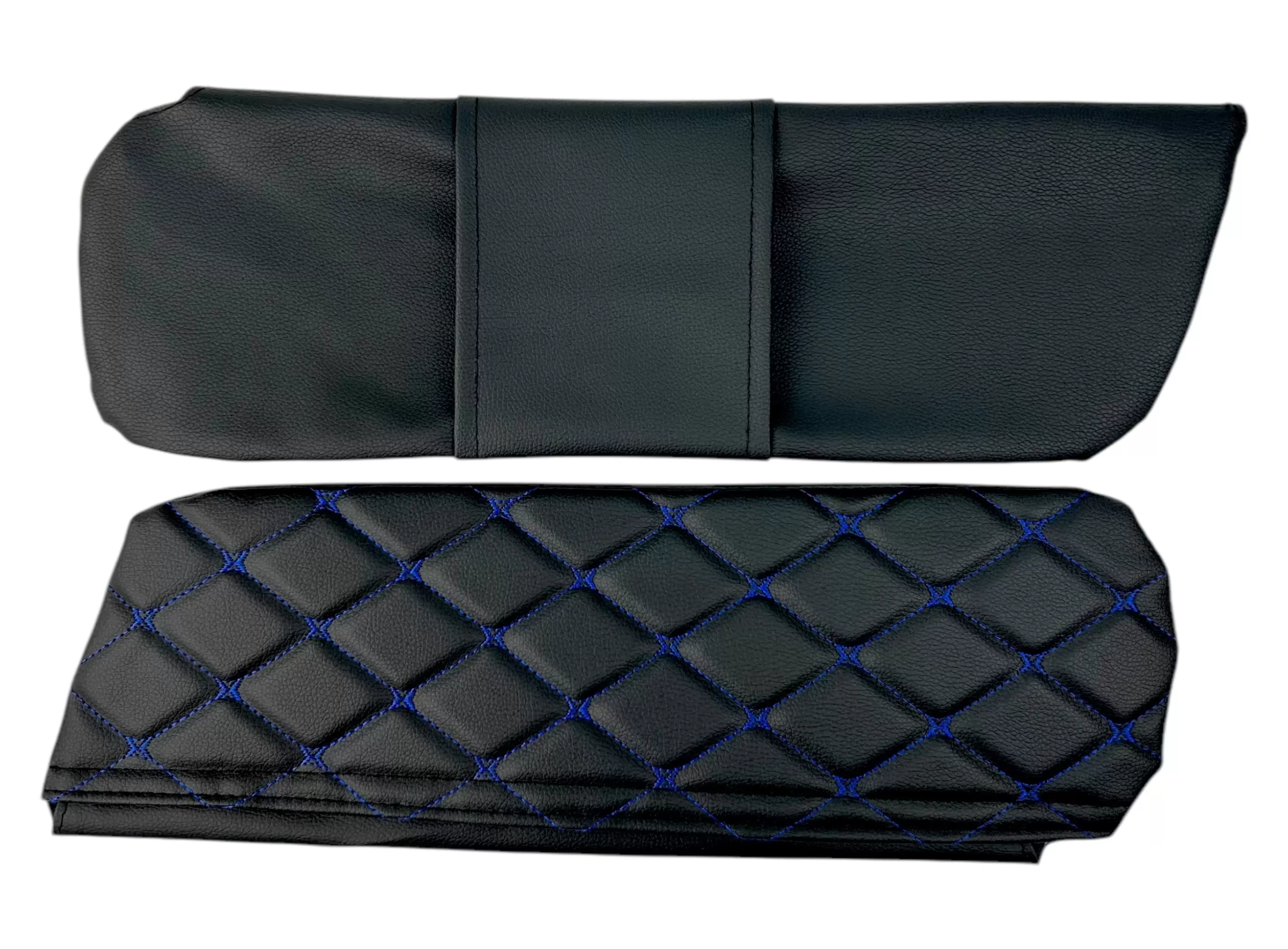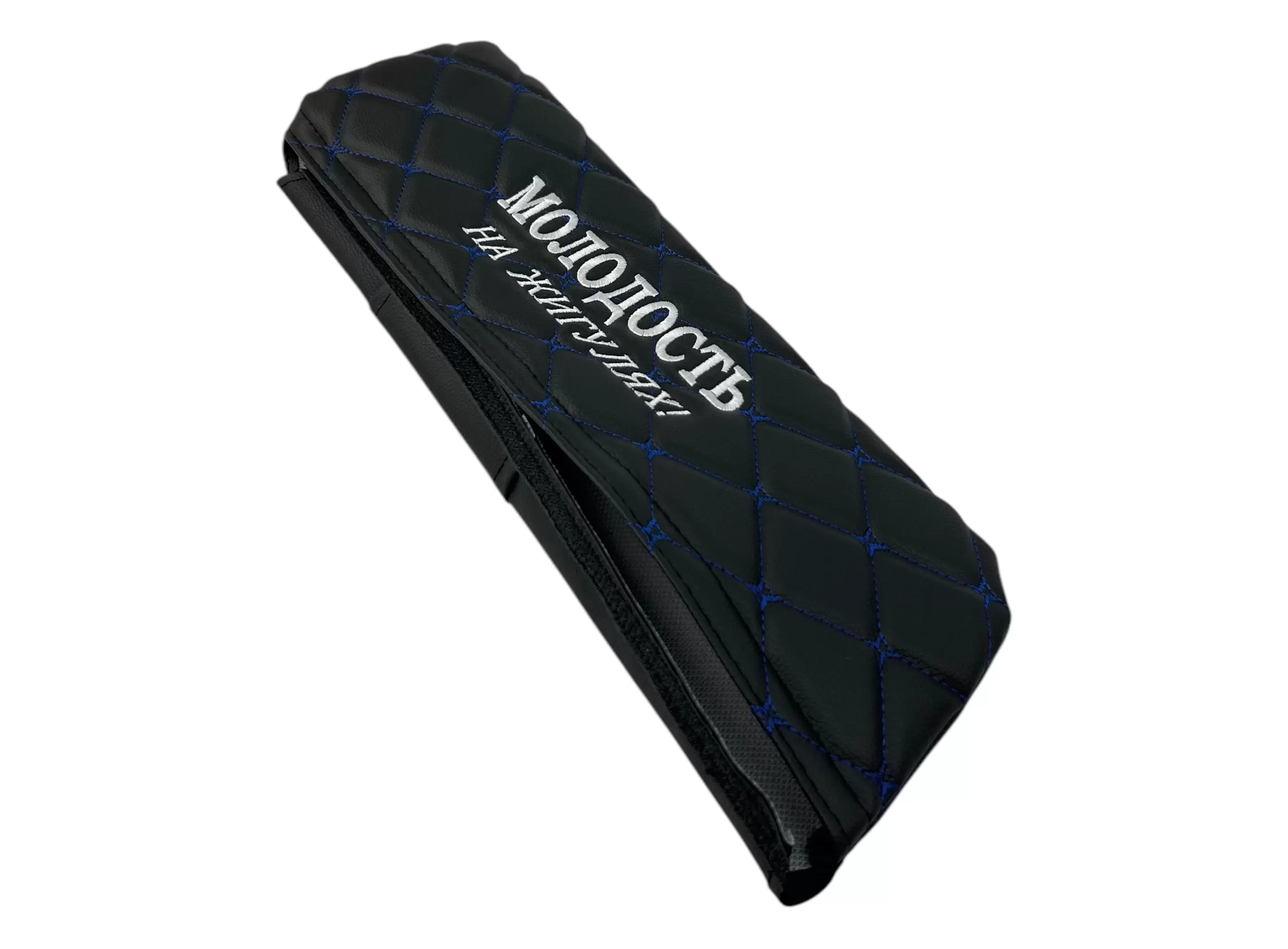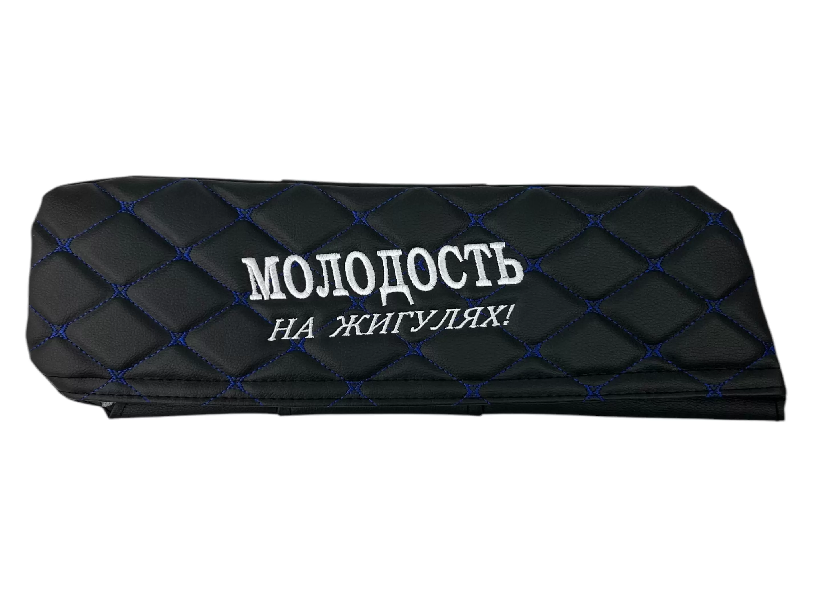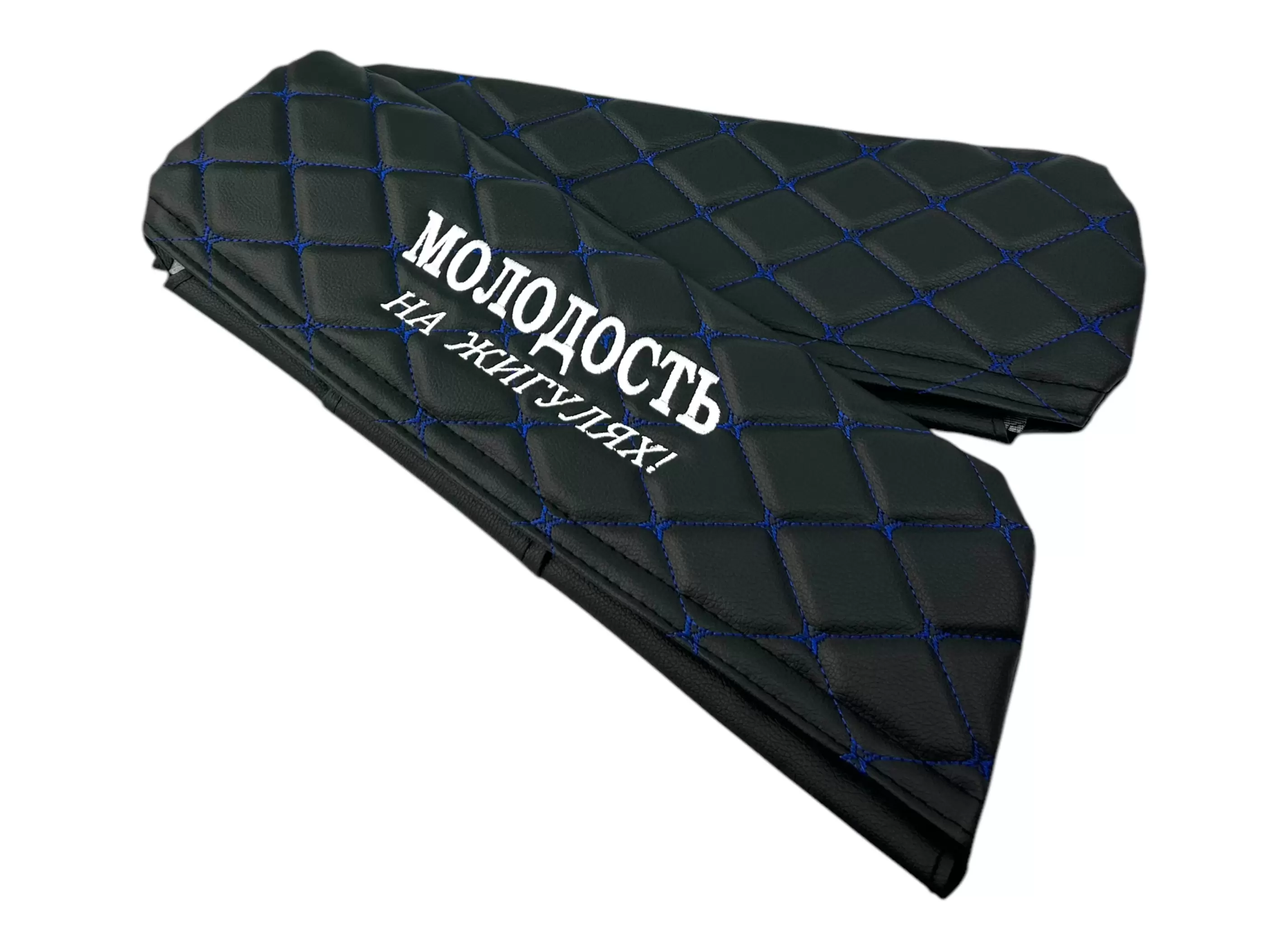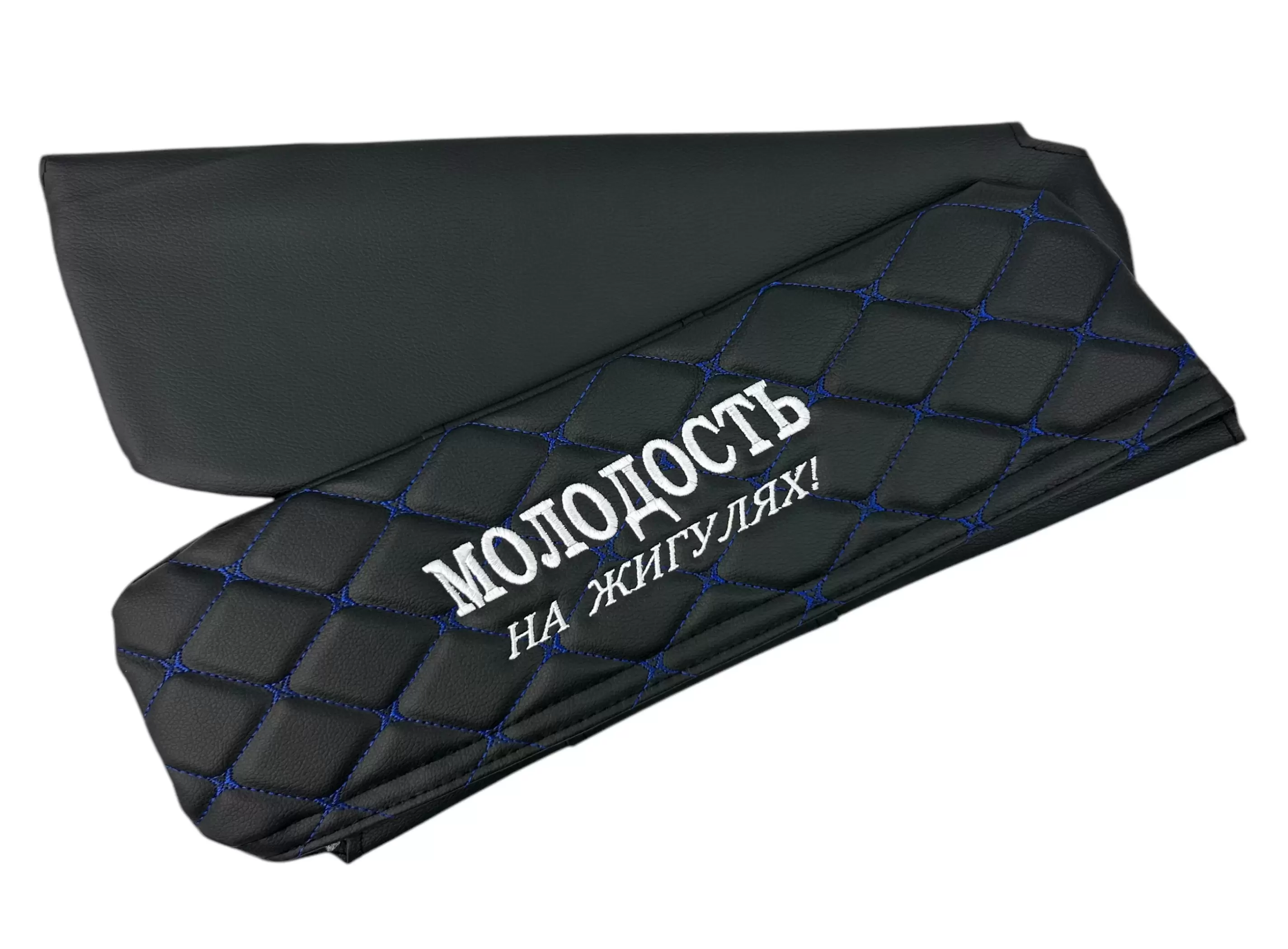 Чехлы на козырьки ВАЗ 2104, 2105, 2107 "Молодость на Жигулях" черный ромб, синяя нить