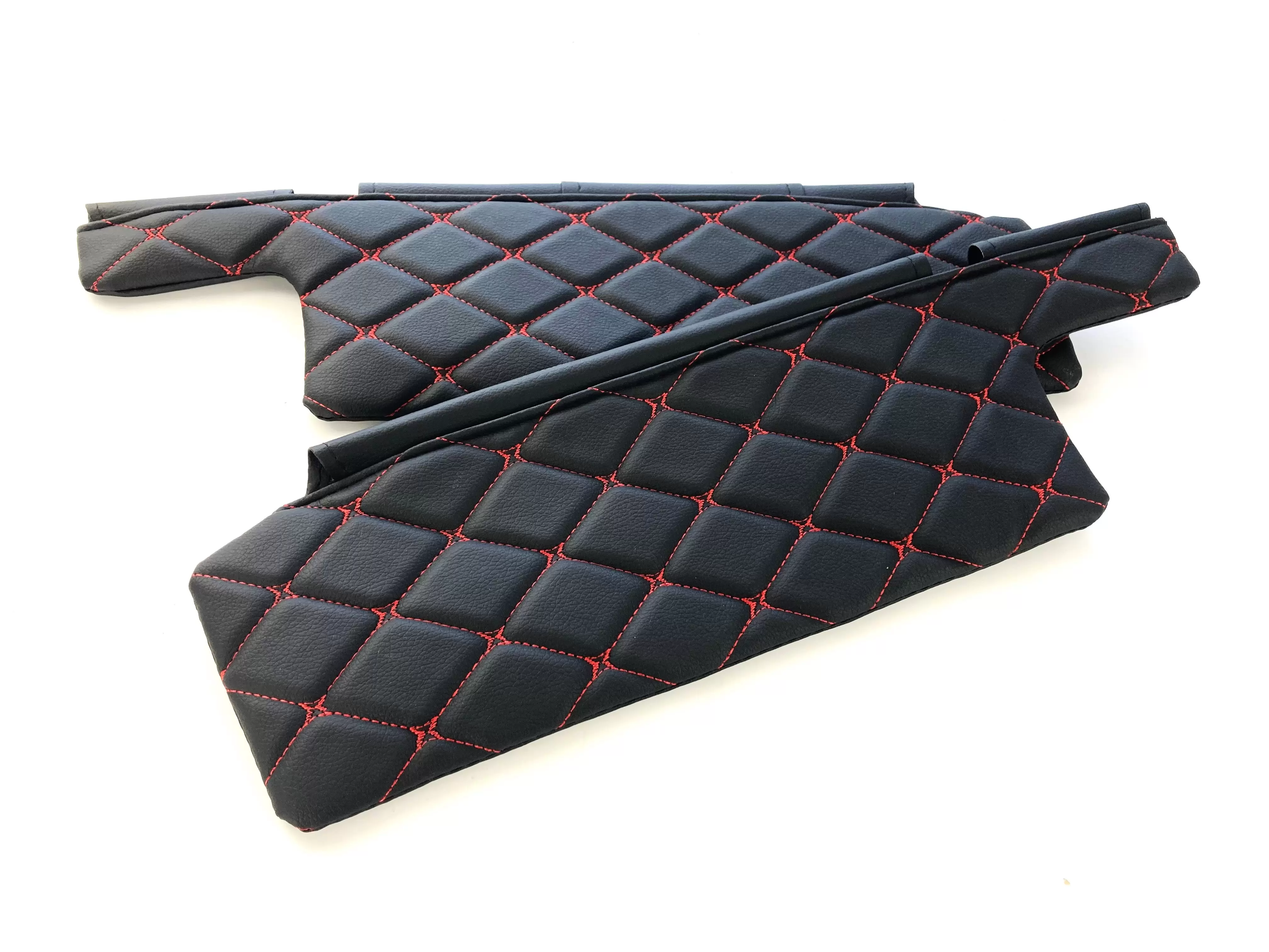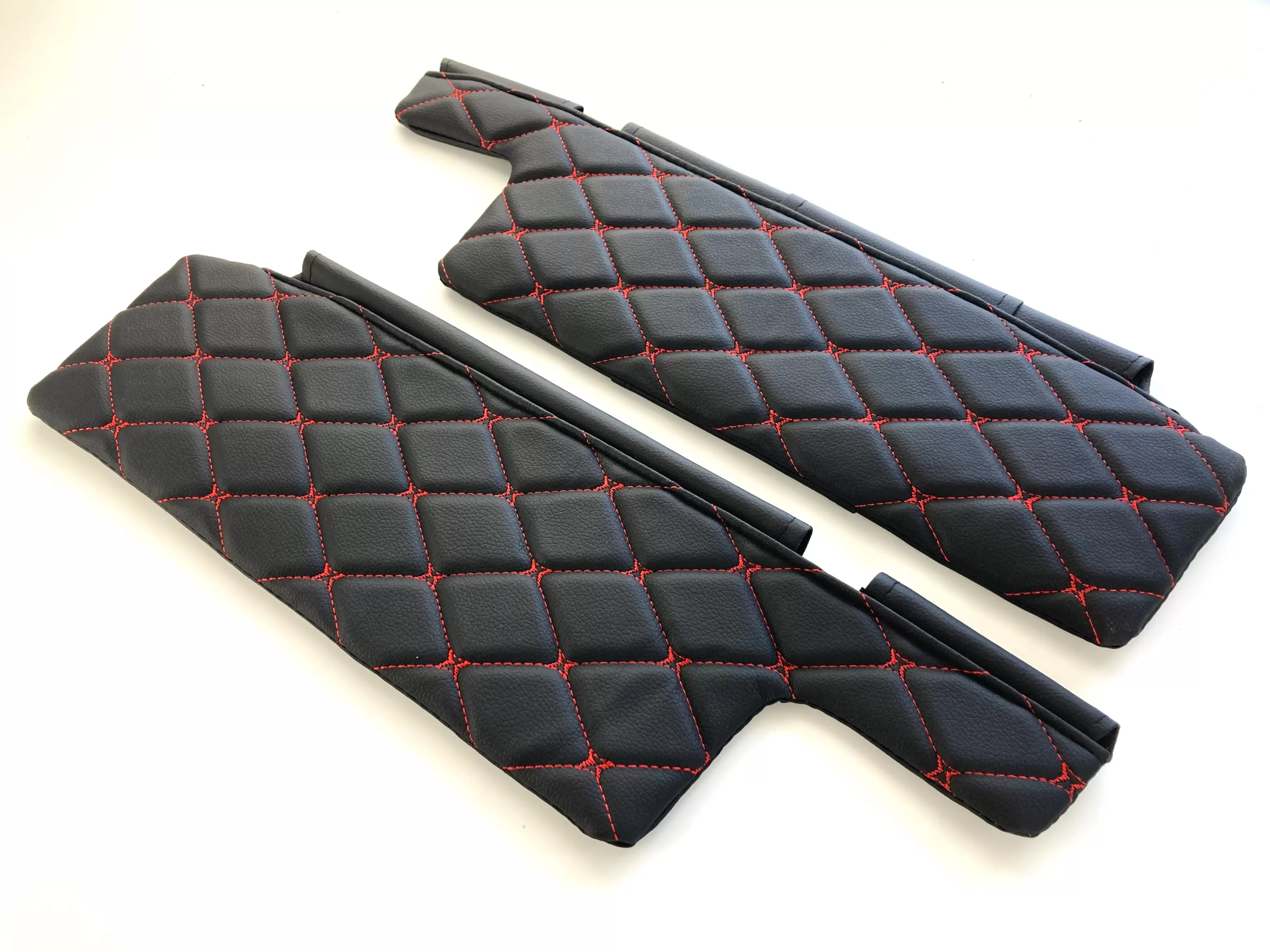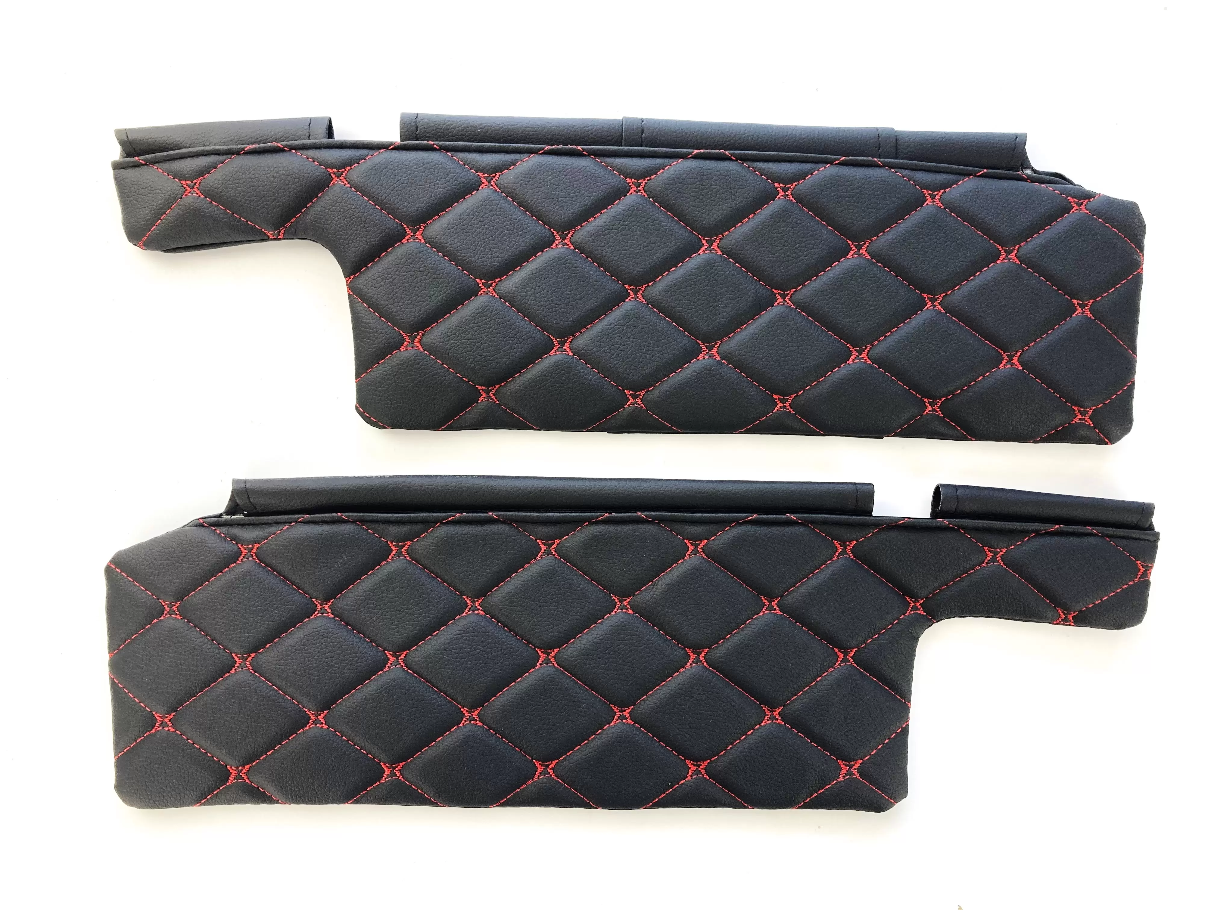 Чехлы на козырьки ВАЗ 2108, 09, 099, 2113-2115 (к-т) декоративный черный ромб, красная нить