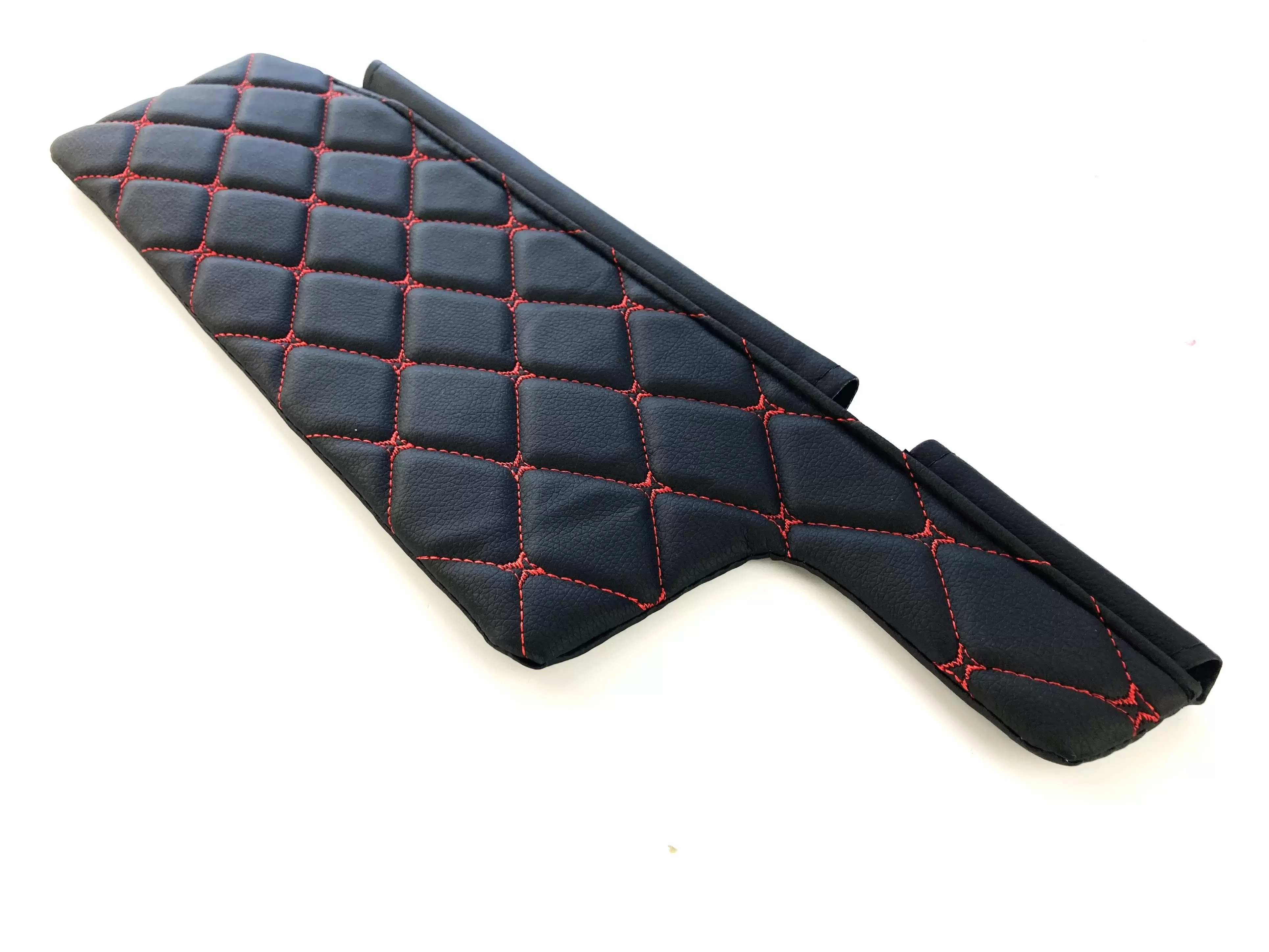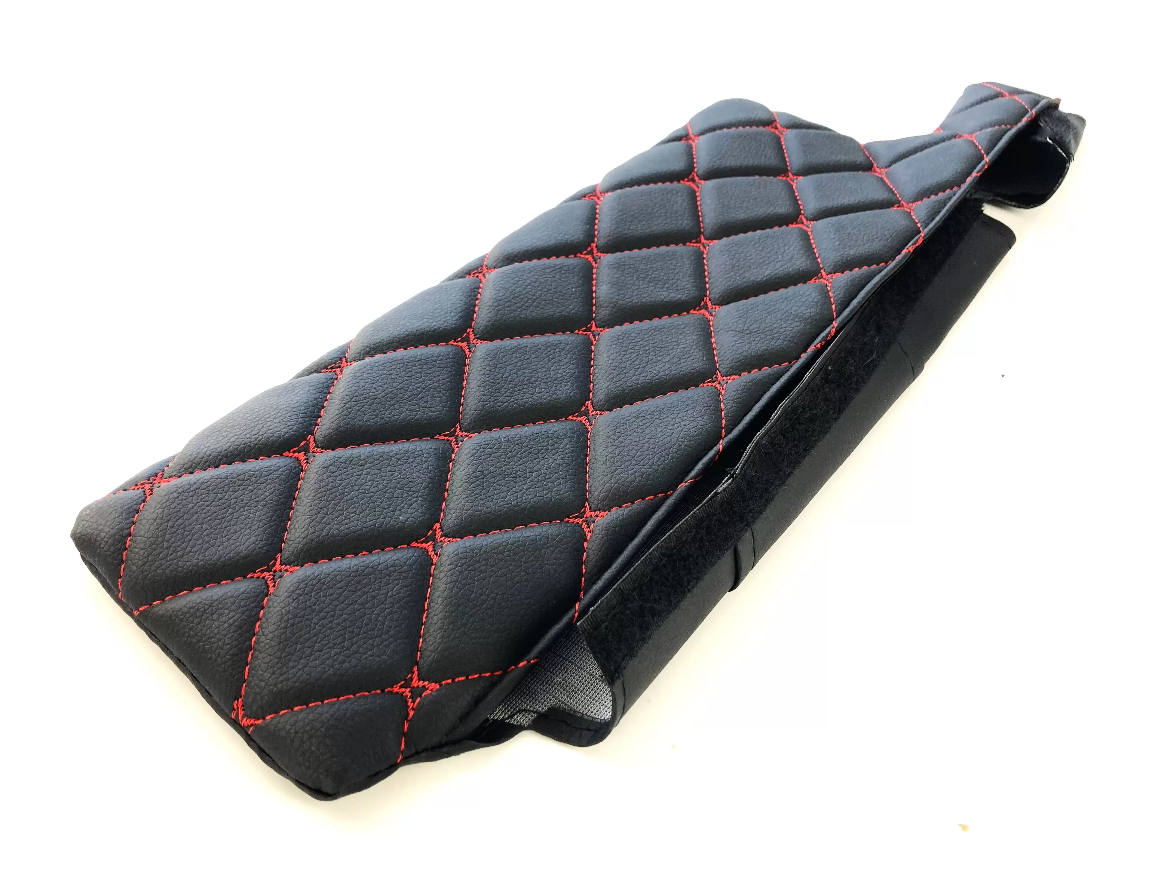 Оригинальный дизайн из декоративных черных ромбов, прошитых яркой красной нитью, придает автомобилю стильный, брутальный и запоминающийся внешний вид.