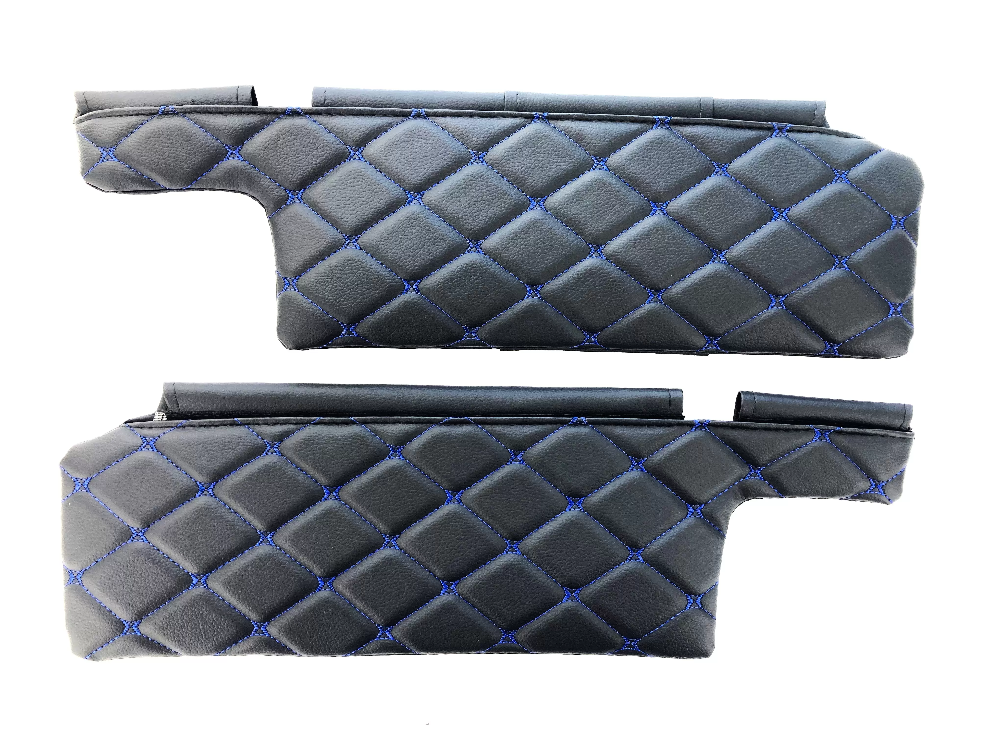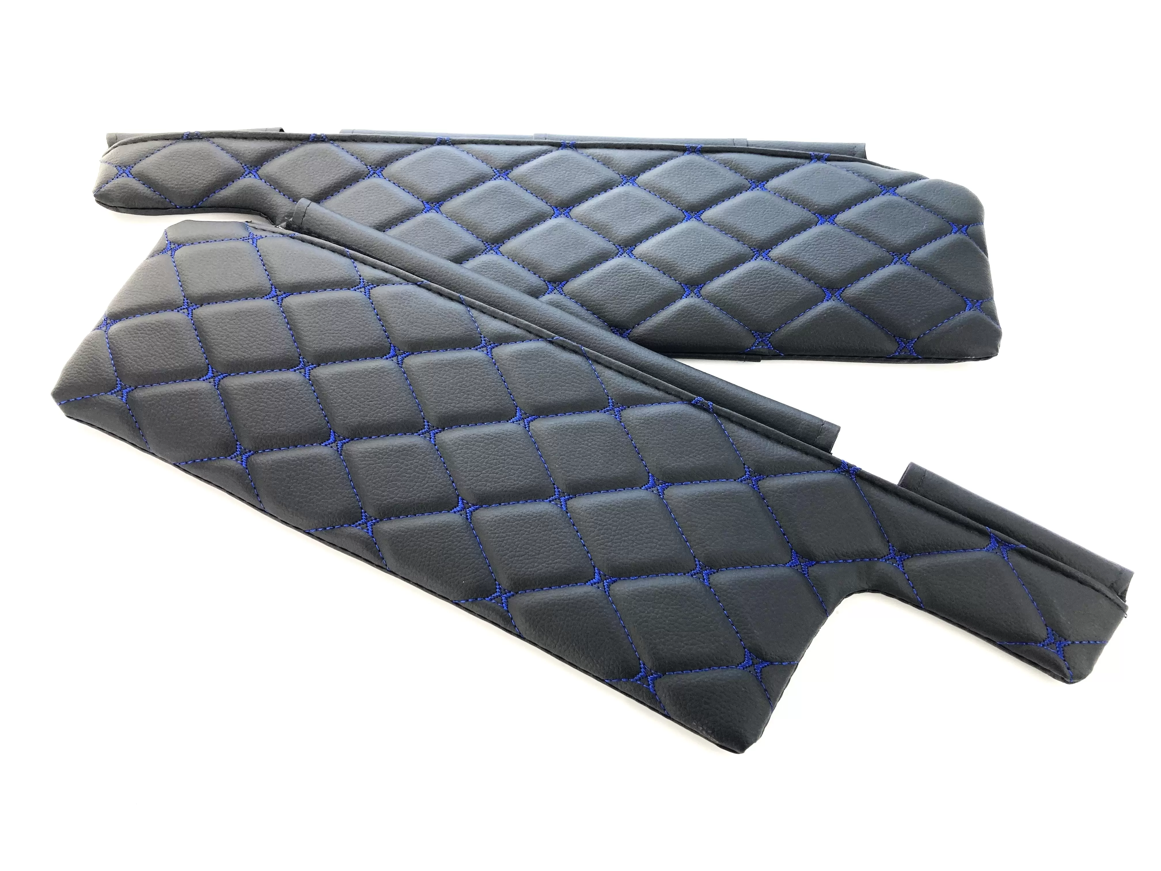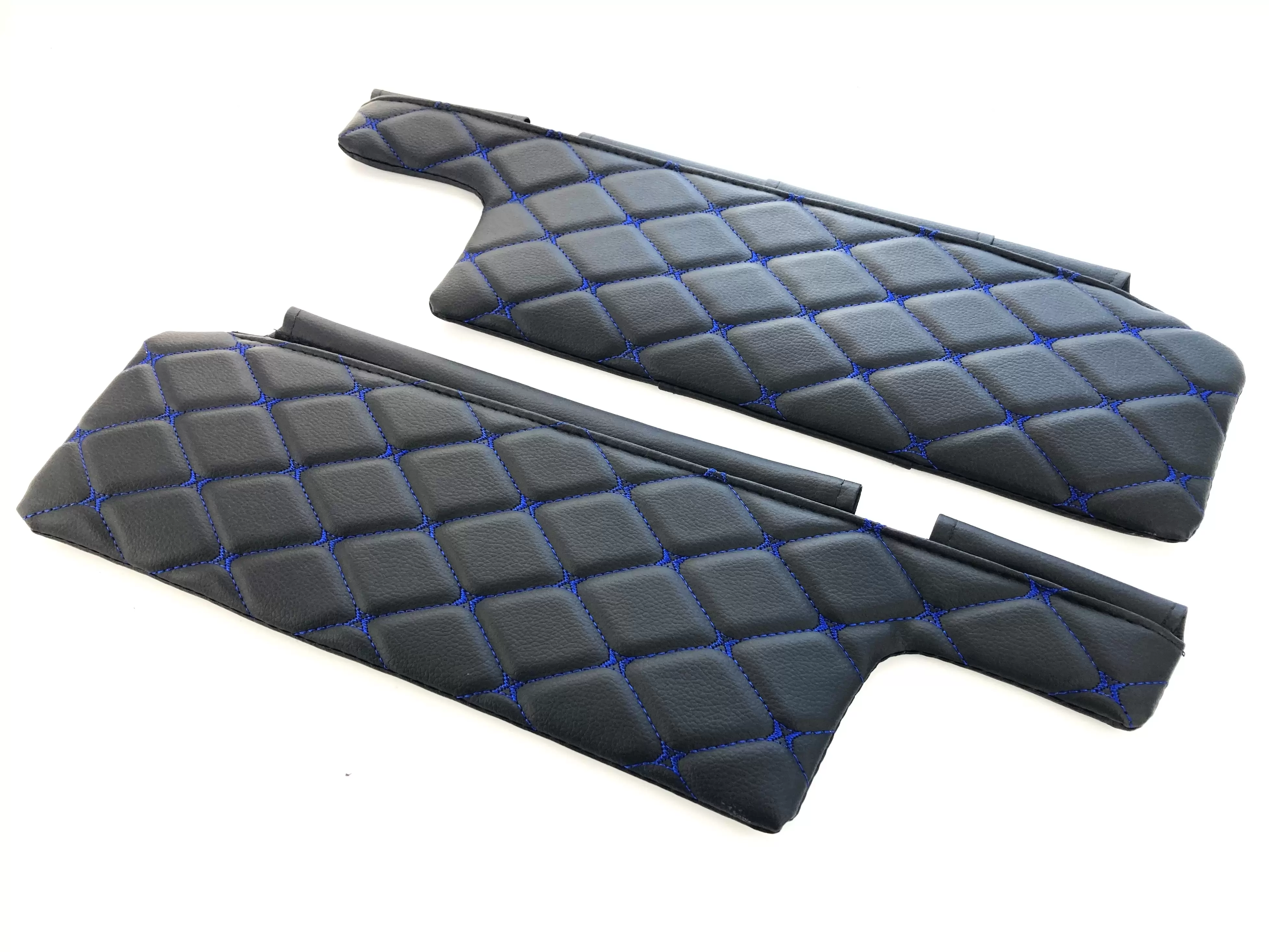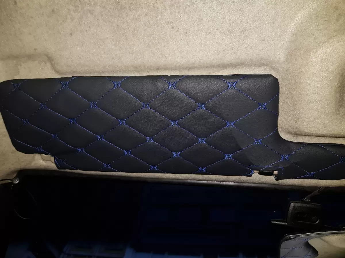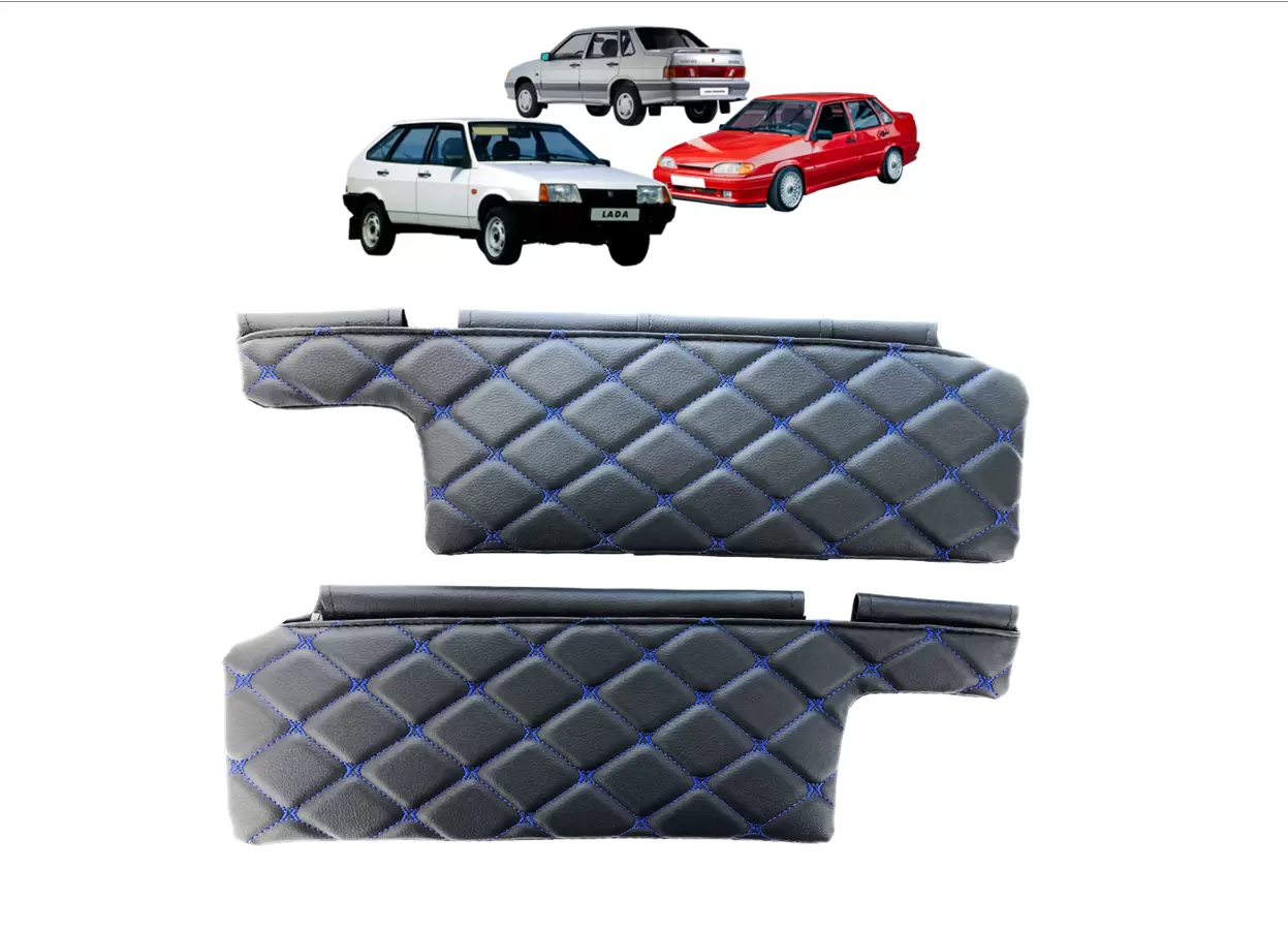 Чехлы на козырьки ВАЗ 2108, 09, 099, 2113-2115 (к-т) декоративный черный ромб, синяя нить