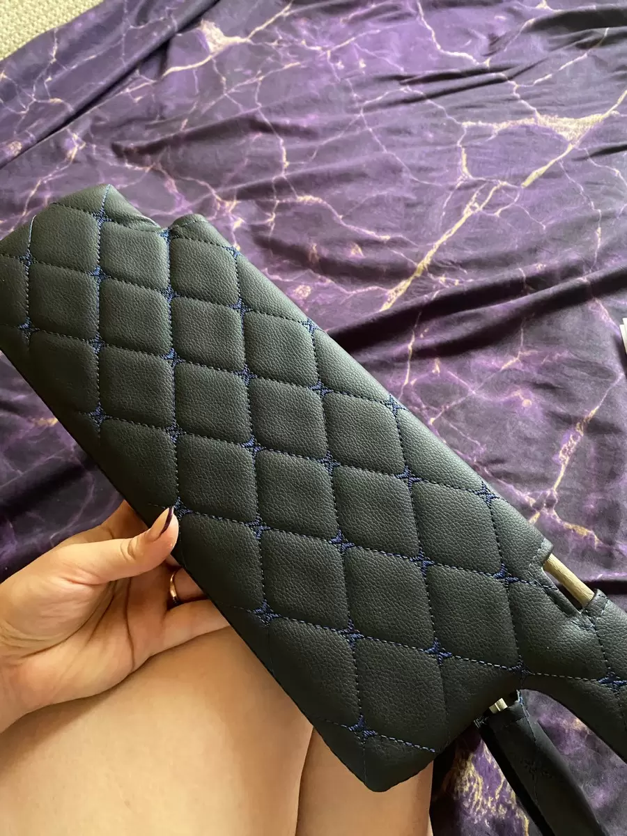 - Внешний вид: декоративный черный ромб, прошитый синей нитью.