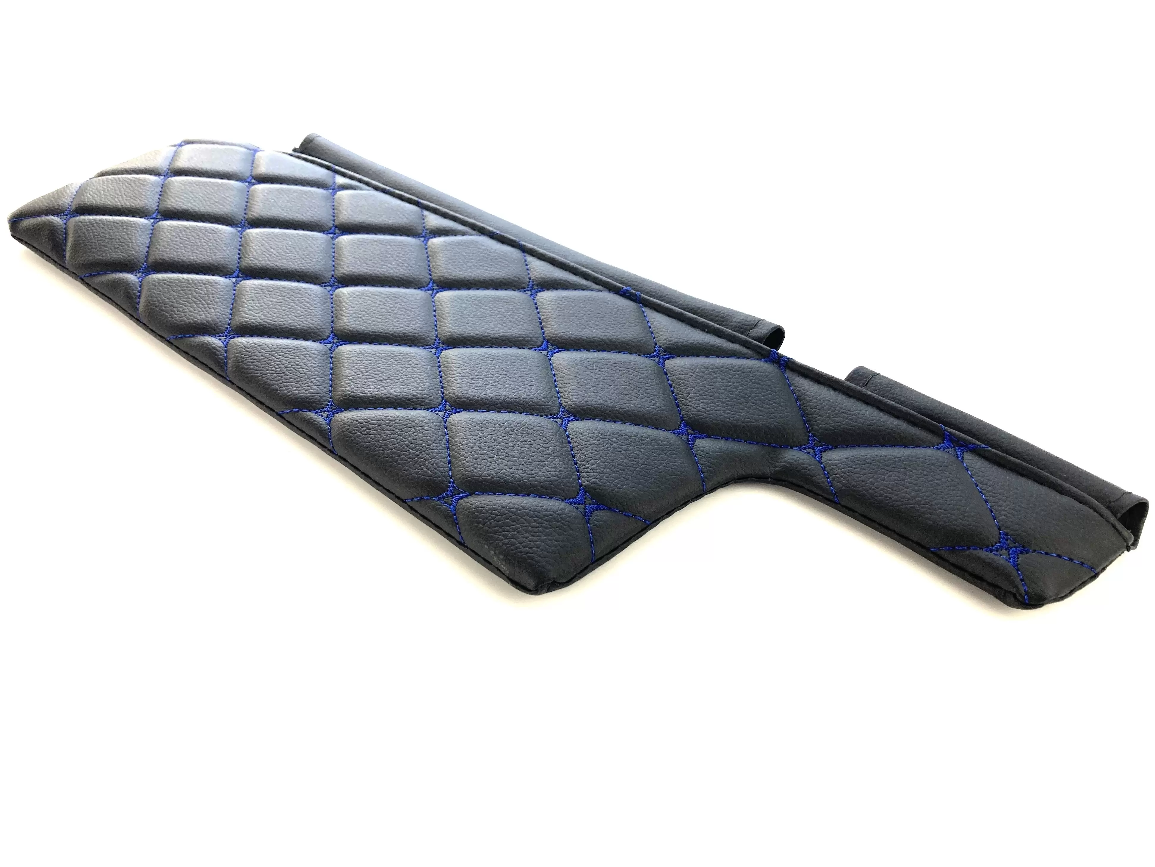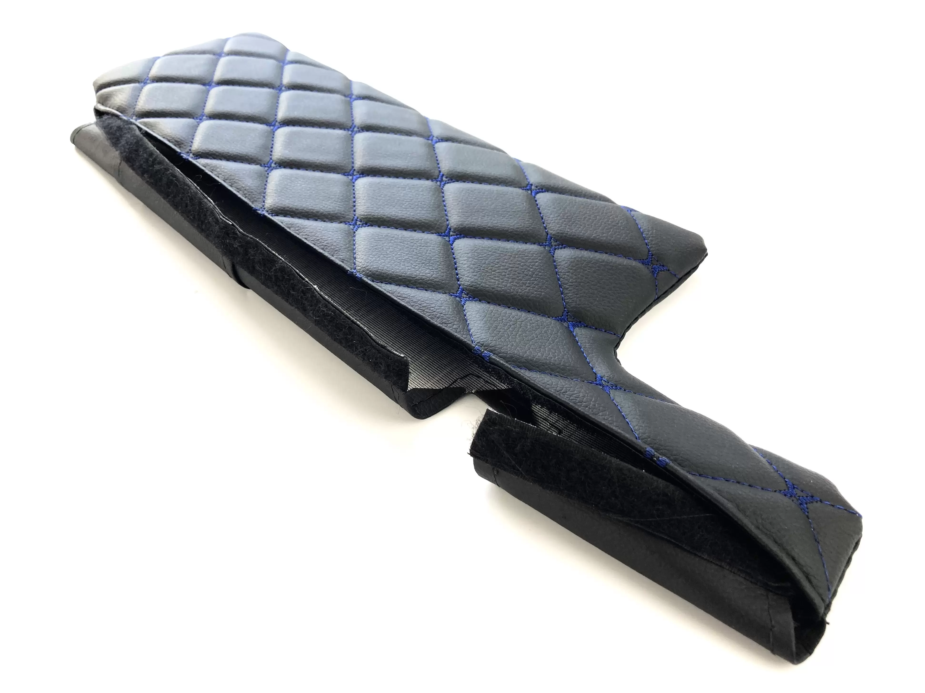 Оригинальный дизайн из декоративных черных ромбов, прошитых синей нитью, придает автомобилю стильный, солидный и элегантный внешний вид.