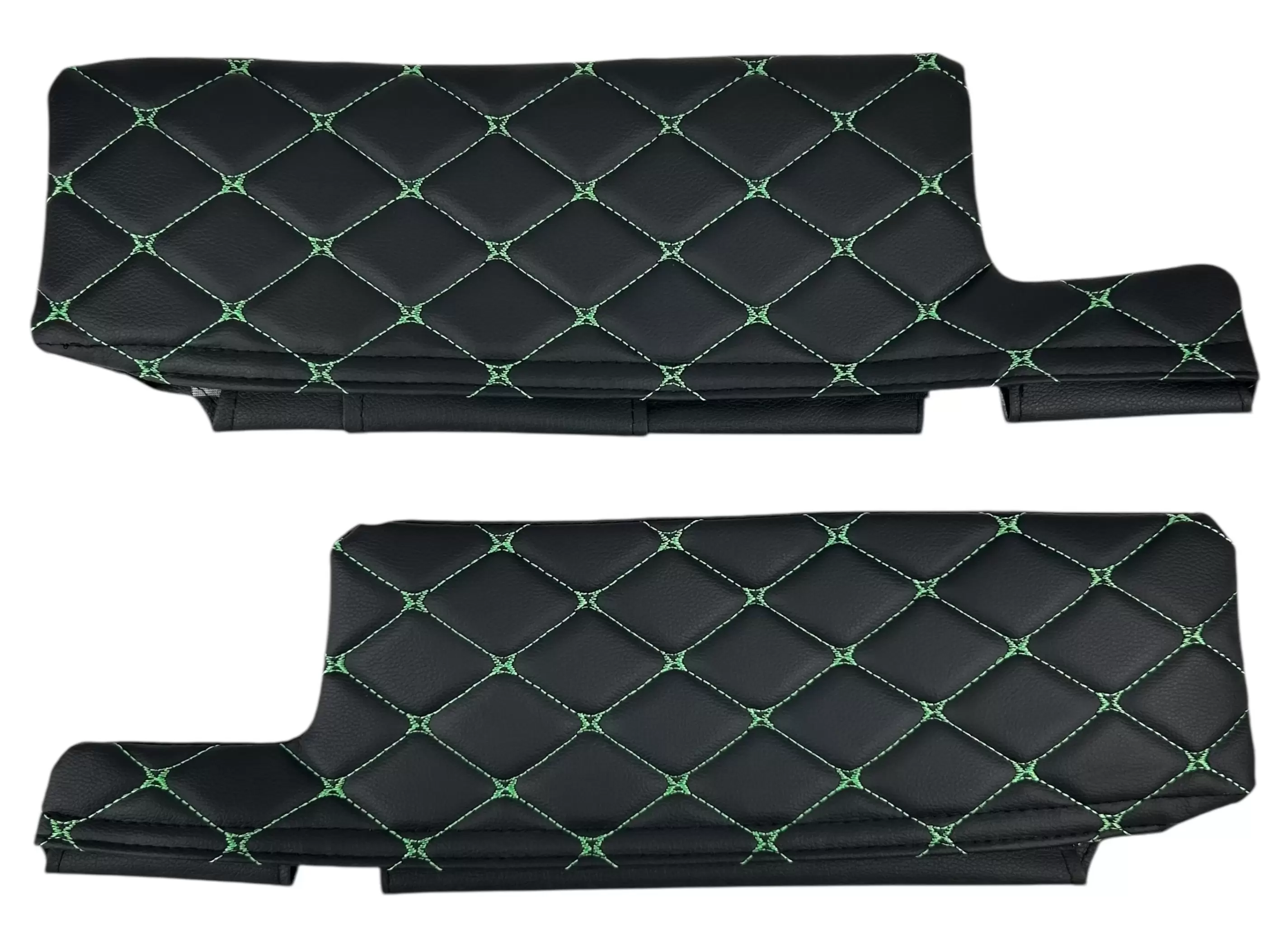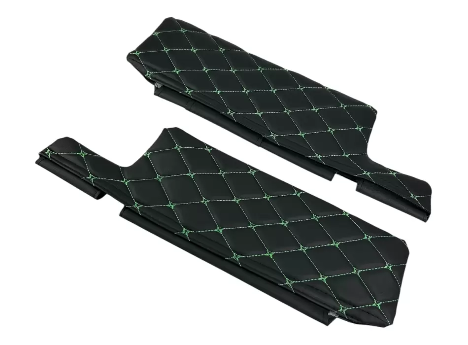 Чехлы на козырьки ВАЗ 2108, 09, 099, 2113-2115 (к-т) декоративный черный ромб, зелёная нить