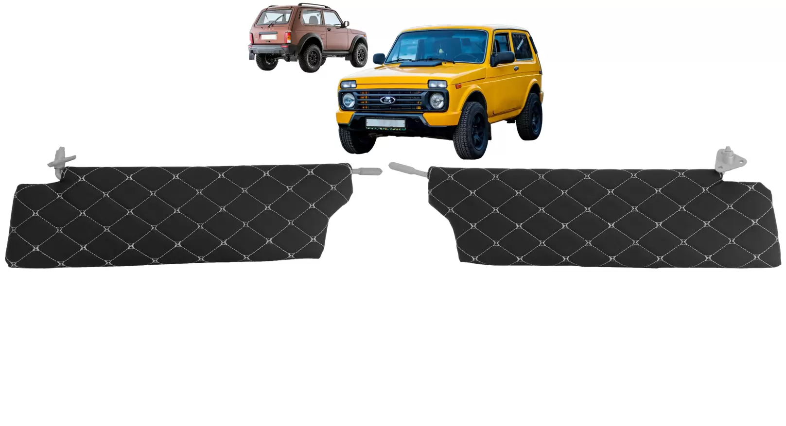 Чехлы на козырьки ВАЗ 2121, LADA Niva 4х4 (комплект) декоративный черный ромб, белая нить