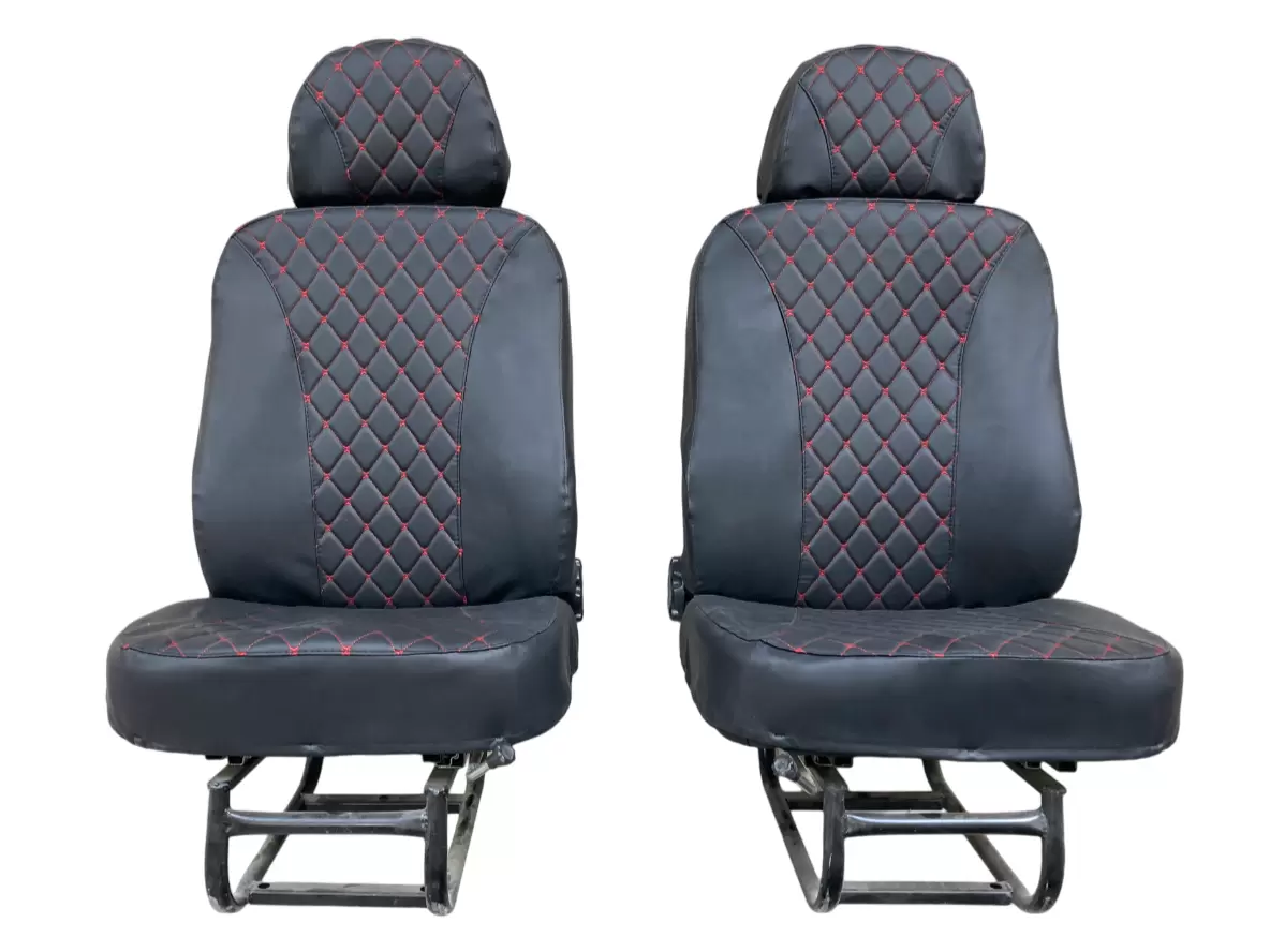 Чехлы на передние сиденья ЛЮКС на УАЗ 452, Буханка до 2016, 469 черный ромб красная нить