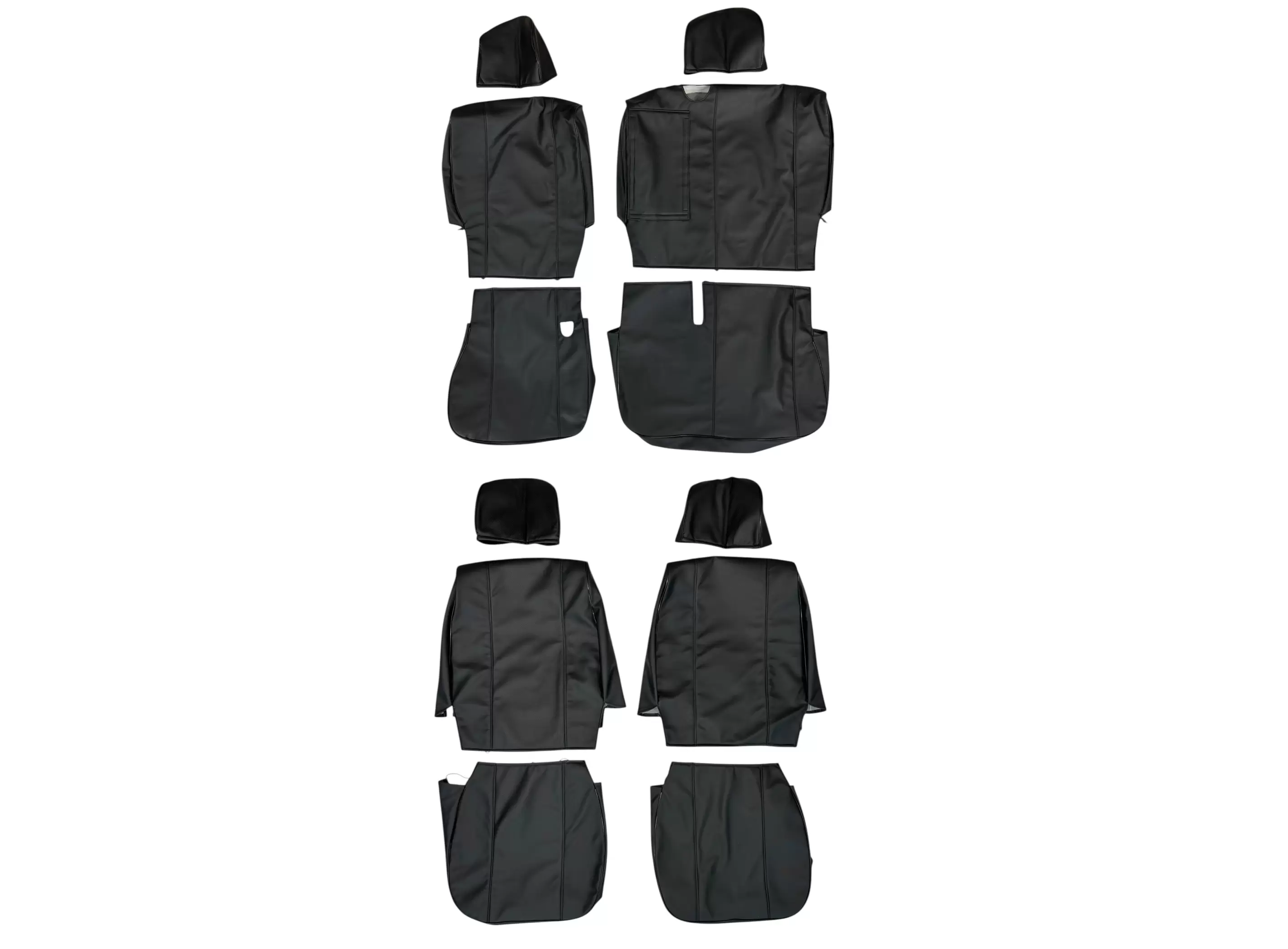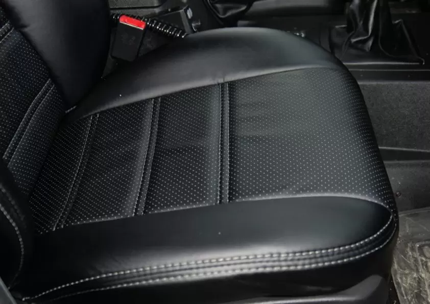 Изготовлены из прочной чёрной экокожи, устойчивой к износу, влаге и загрязнениям. Чехлы защищают штатную обивку от потертостей, влаги, пыли и бытовых повреждений, обеспечивая аккуратный внешний вид и продлевая срок службы сидений. Материал легко очищается и подходит для ежедневной эксплуатации.