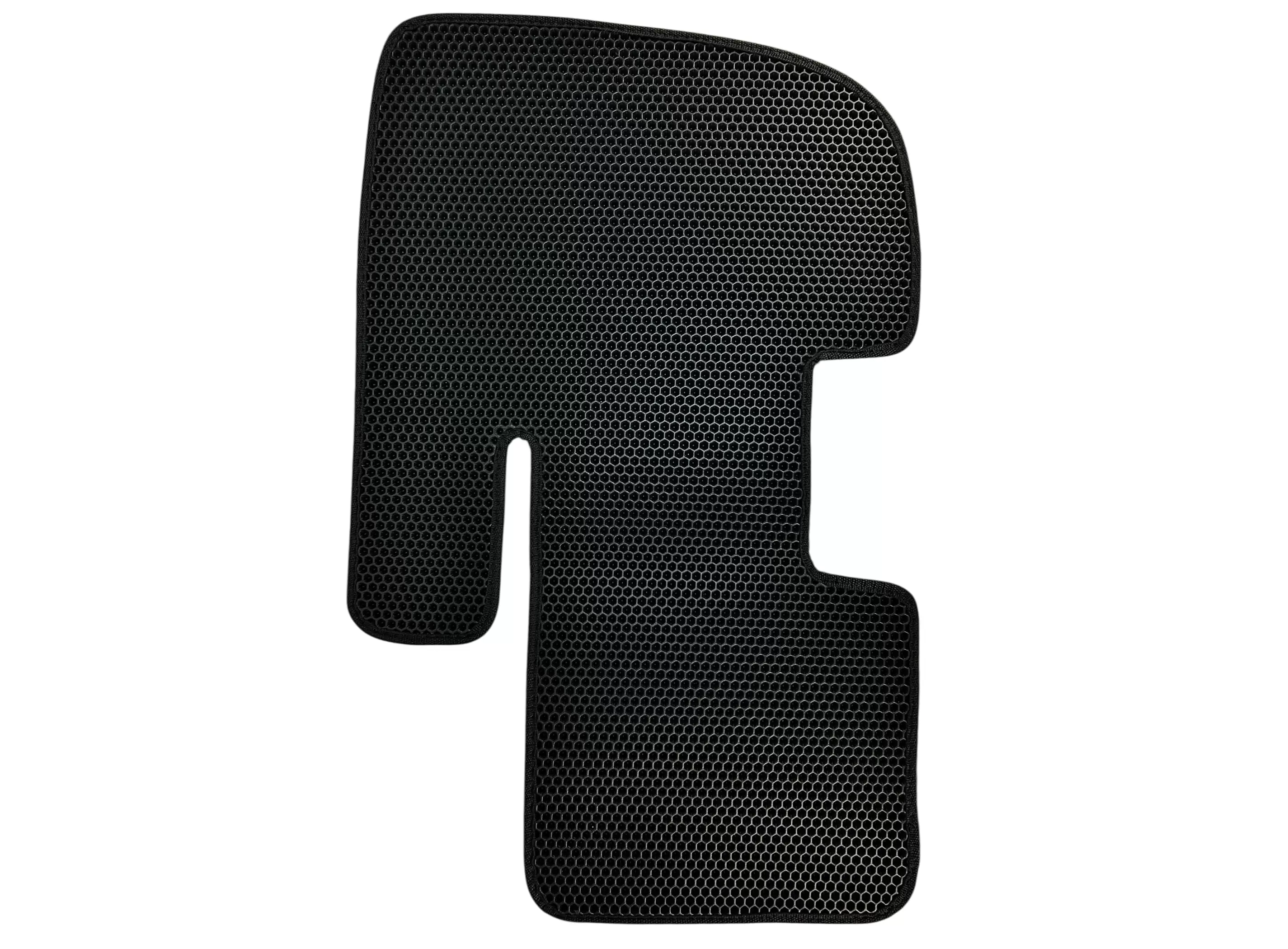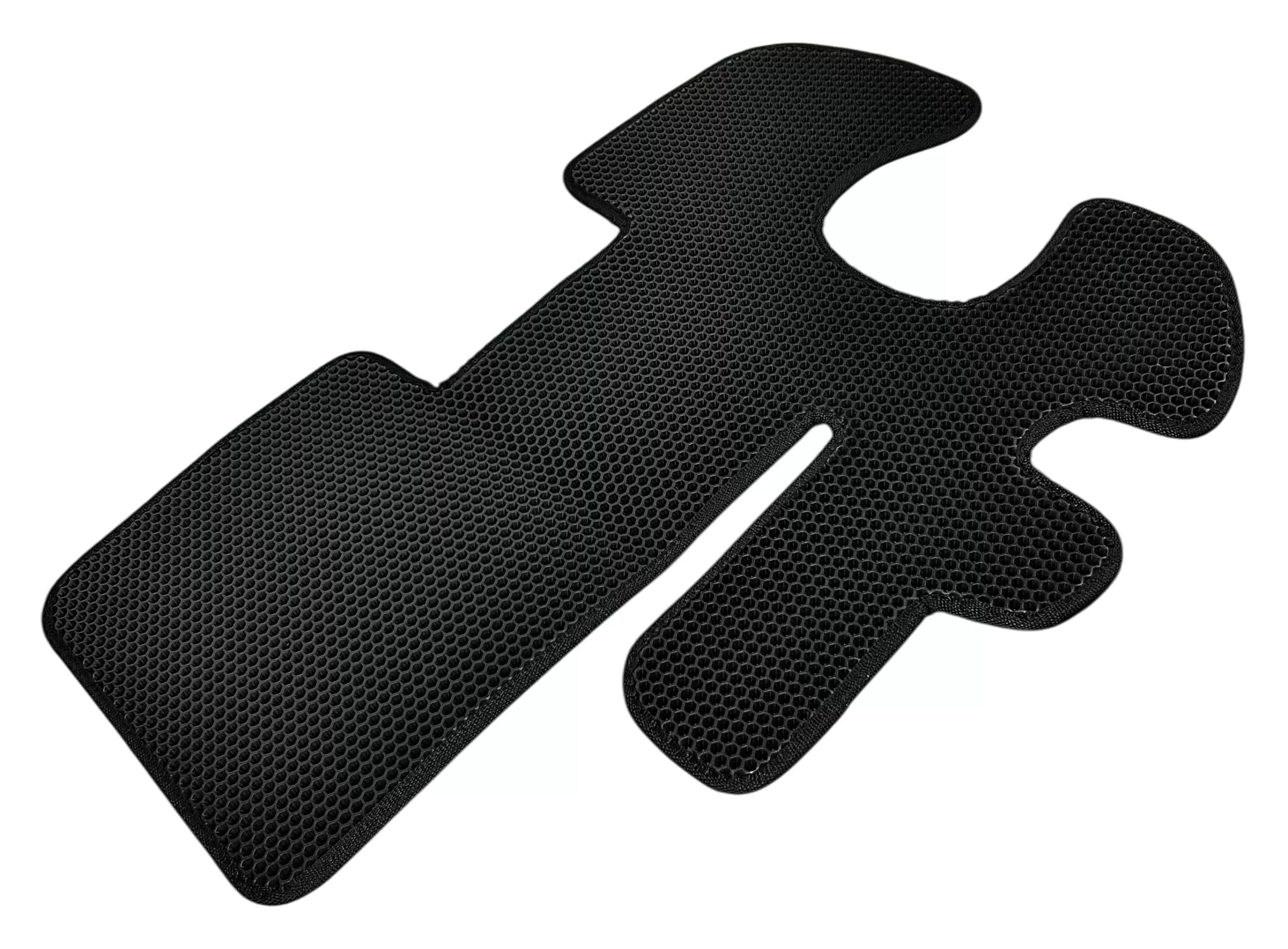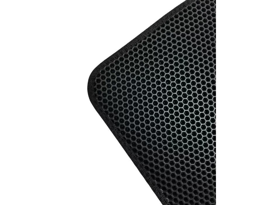 Коврики выполнены из современного материала EVA (этиленвинилацетат) с ячеистой структурой. Такая поверхность эффективно удерживает влагу и загрязнения внутри ячеек, не позволяя им распространяться по салону. Коврики плотно прилегают к полу кабины и сохраняют форму при эксплуатации.