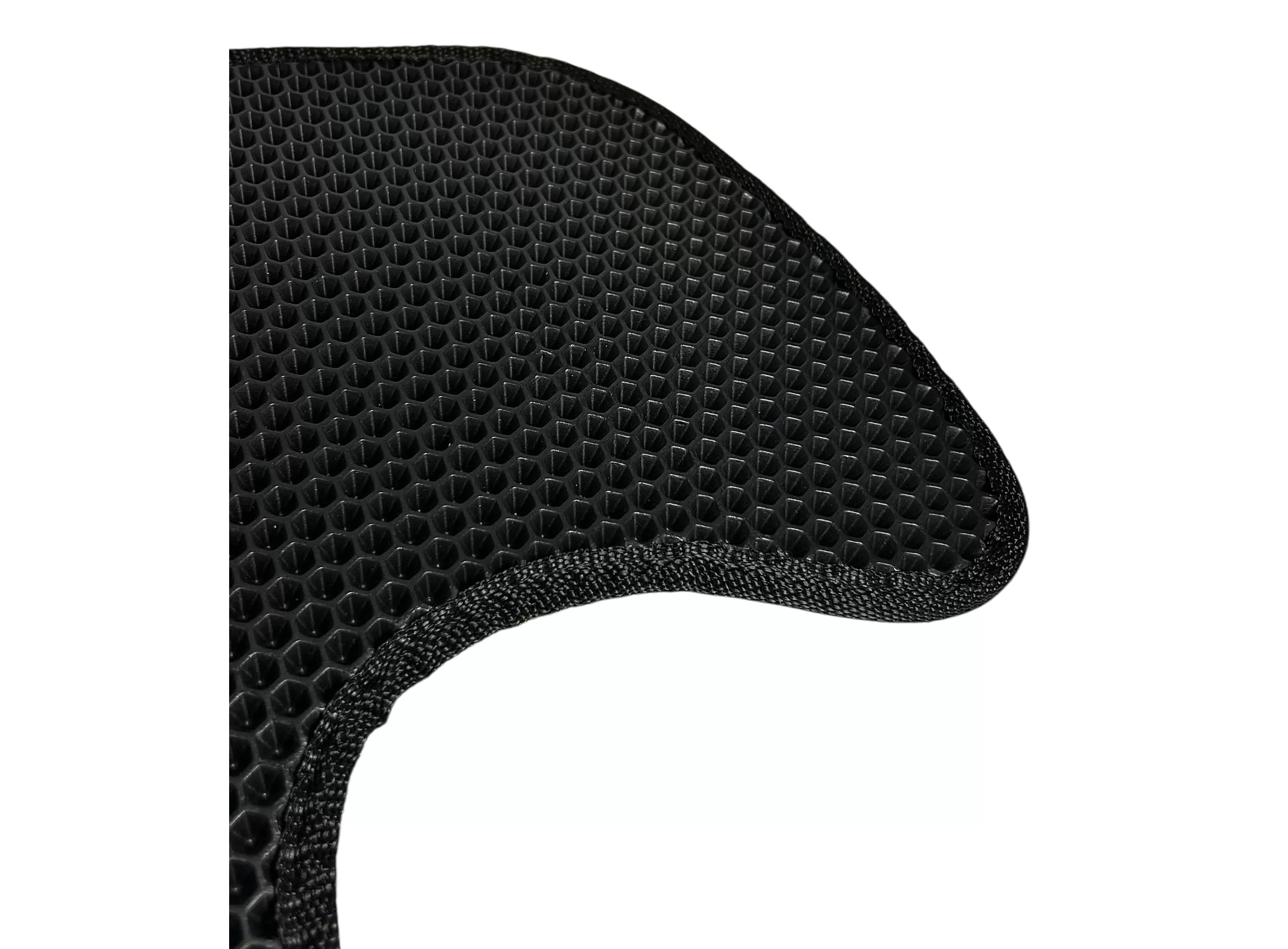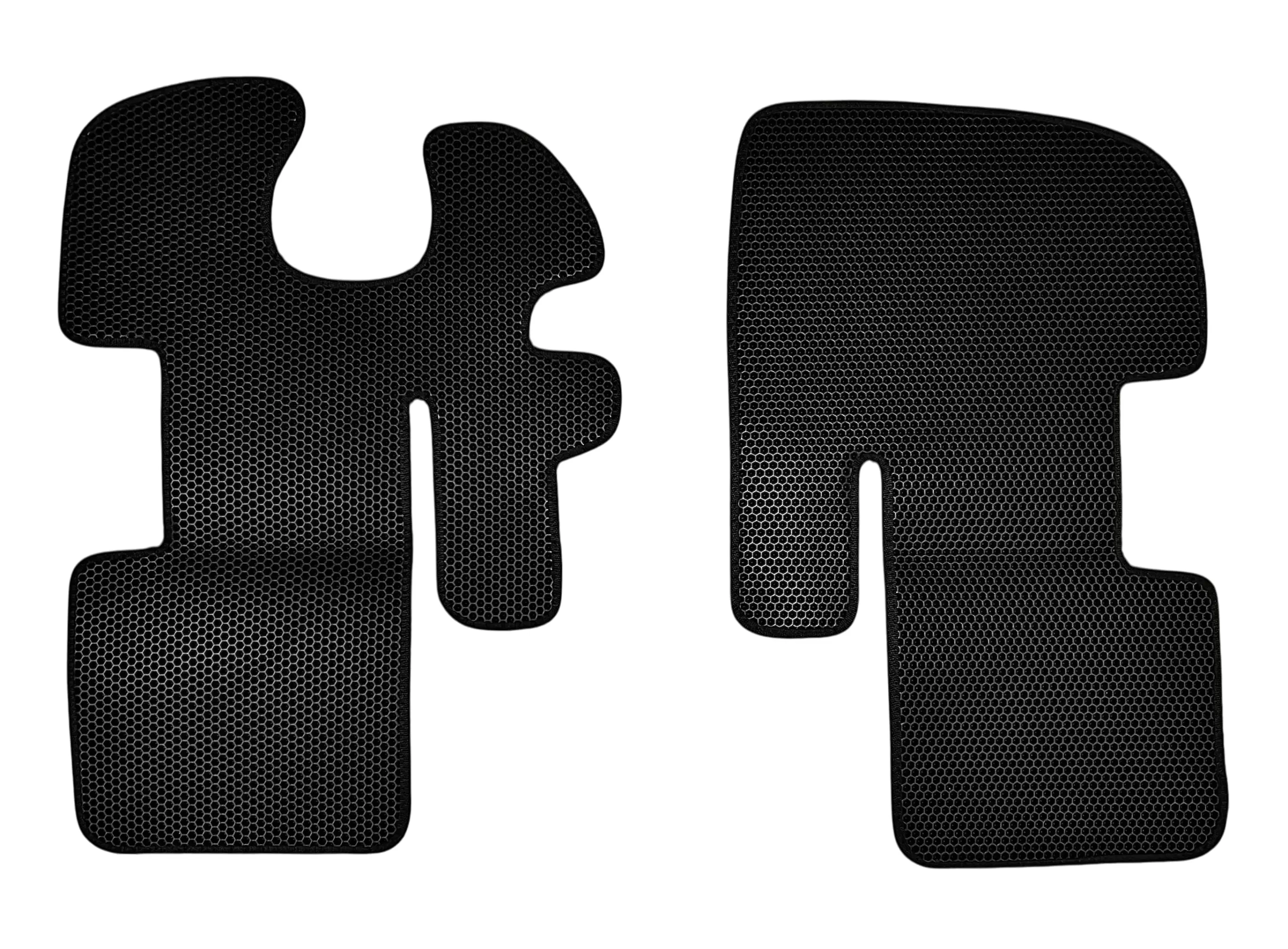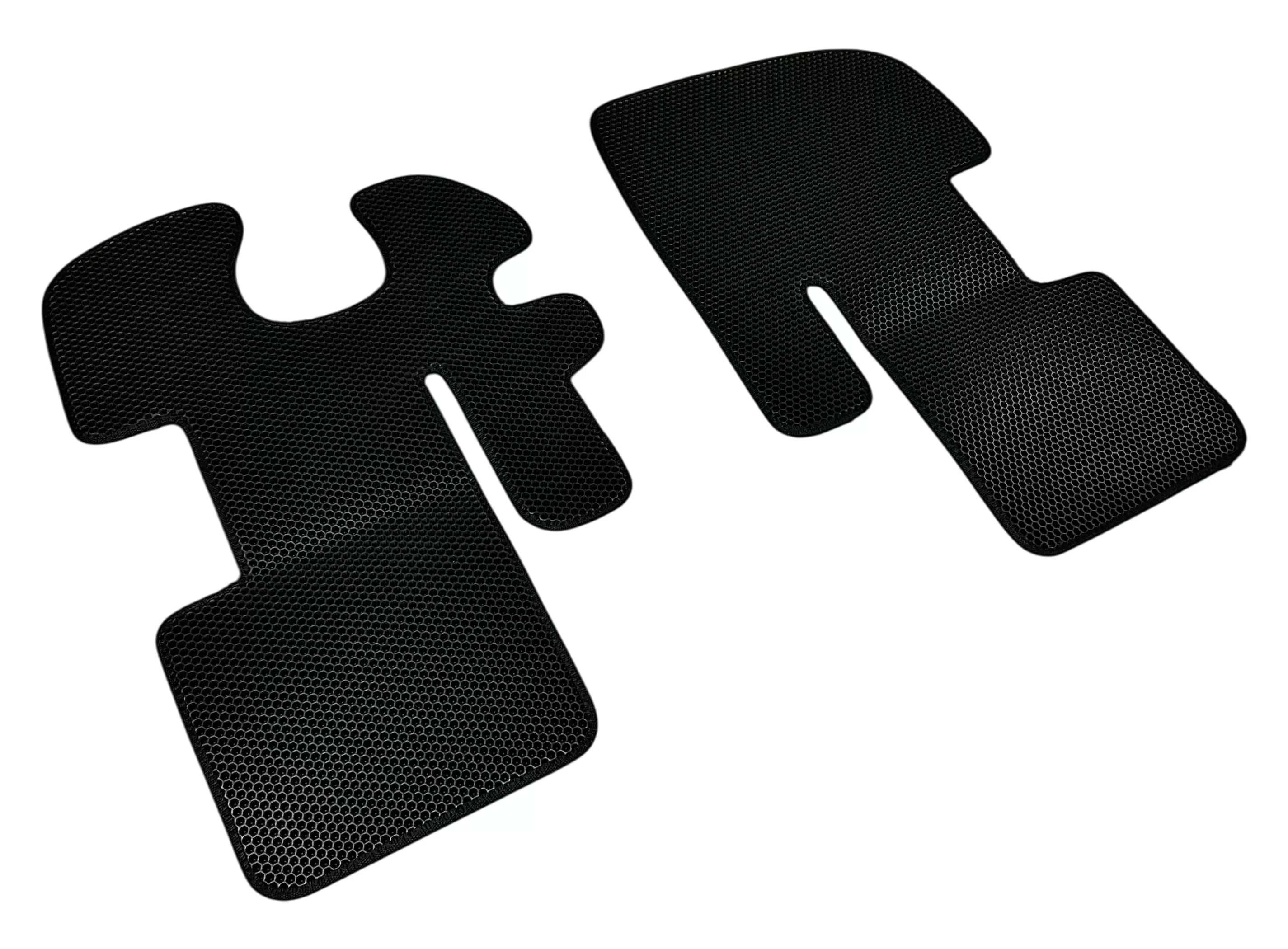 Коврики выполнены из современного материала EVA (этиленвинилацетат) с ячеистой структурой. Такая поверхность эффективно удерживает влагу и загрязнения внутри ячеек, не позволяя им распространяться по салону. Коврики плотно прилегают к полу кабины и сохраняют форму при эксплуатации.