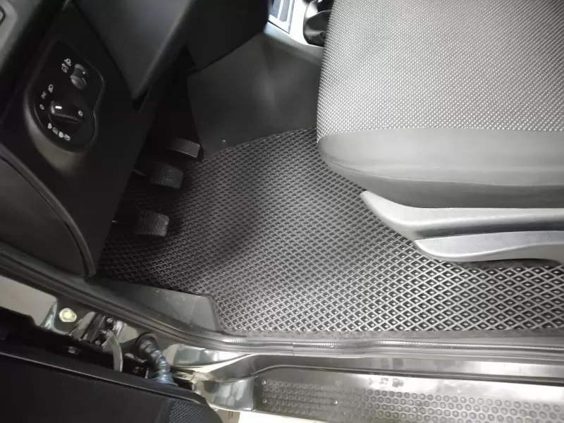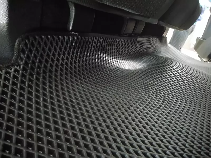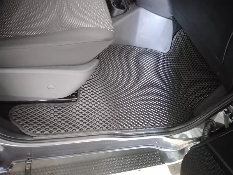 Изделия выполнены из материала EVA с ячеистой структурой, которая эффективно удерживает загрязнения внутри ячеек и не позволяет им распространяться по салону. Водительский коврик оснащён полиуретановым подпятником, который защищает зону повышенного износа и значительно увеличивает срок службы изделия.