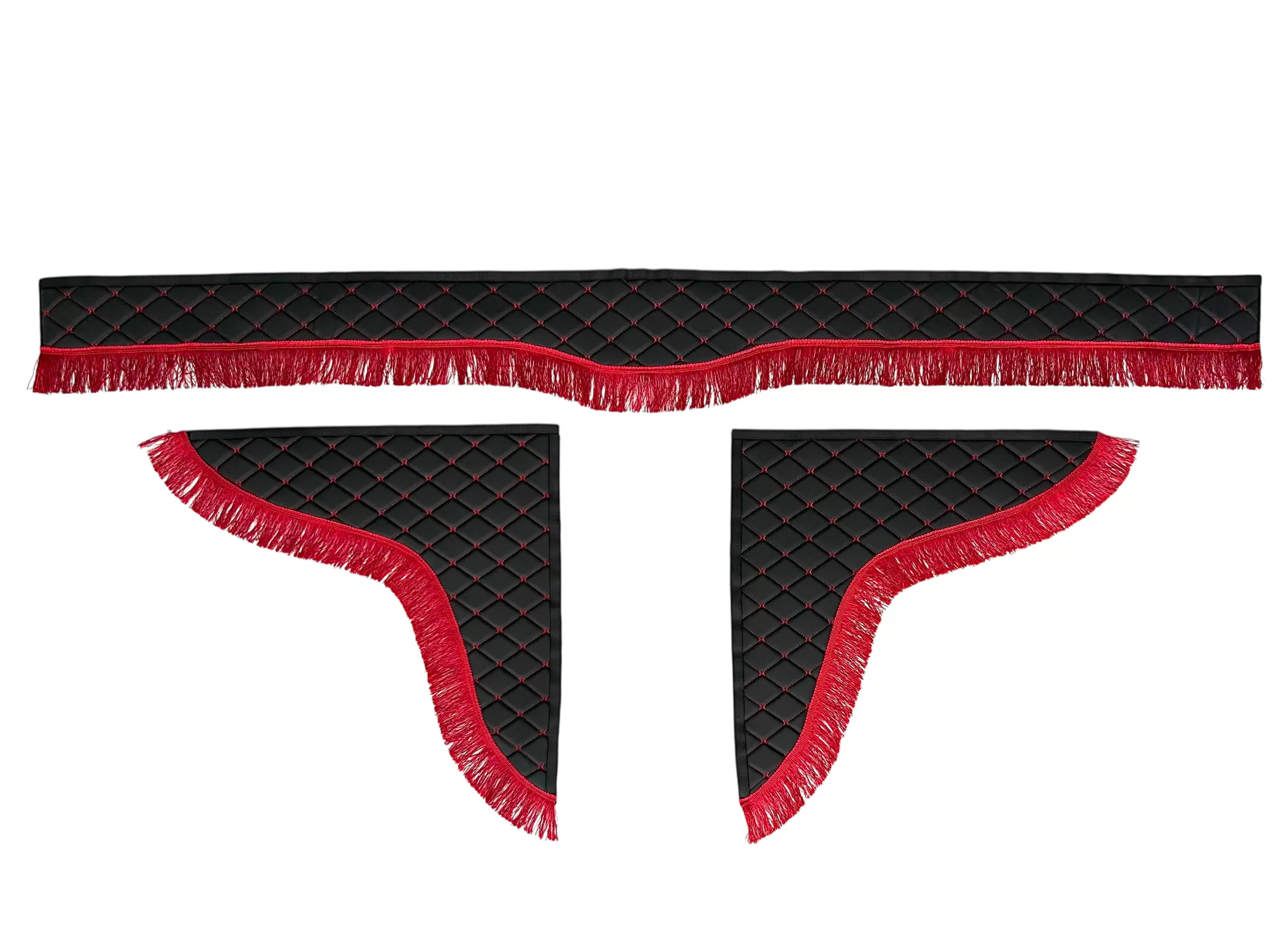 Ламбрекен с боковыми шторками 180 см, красный ромб, для ГАЗель NEXT / Урал NEXT / Sollers ATLANT