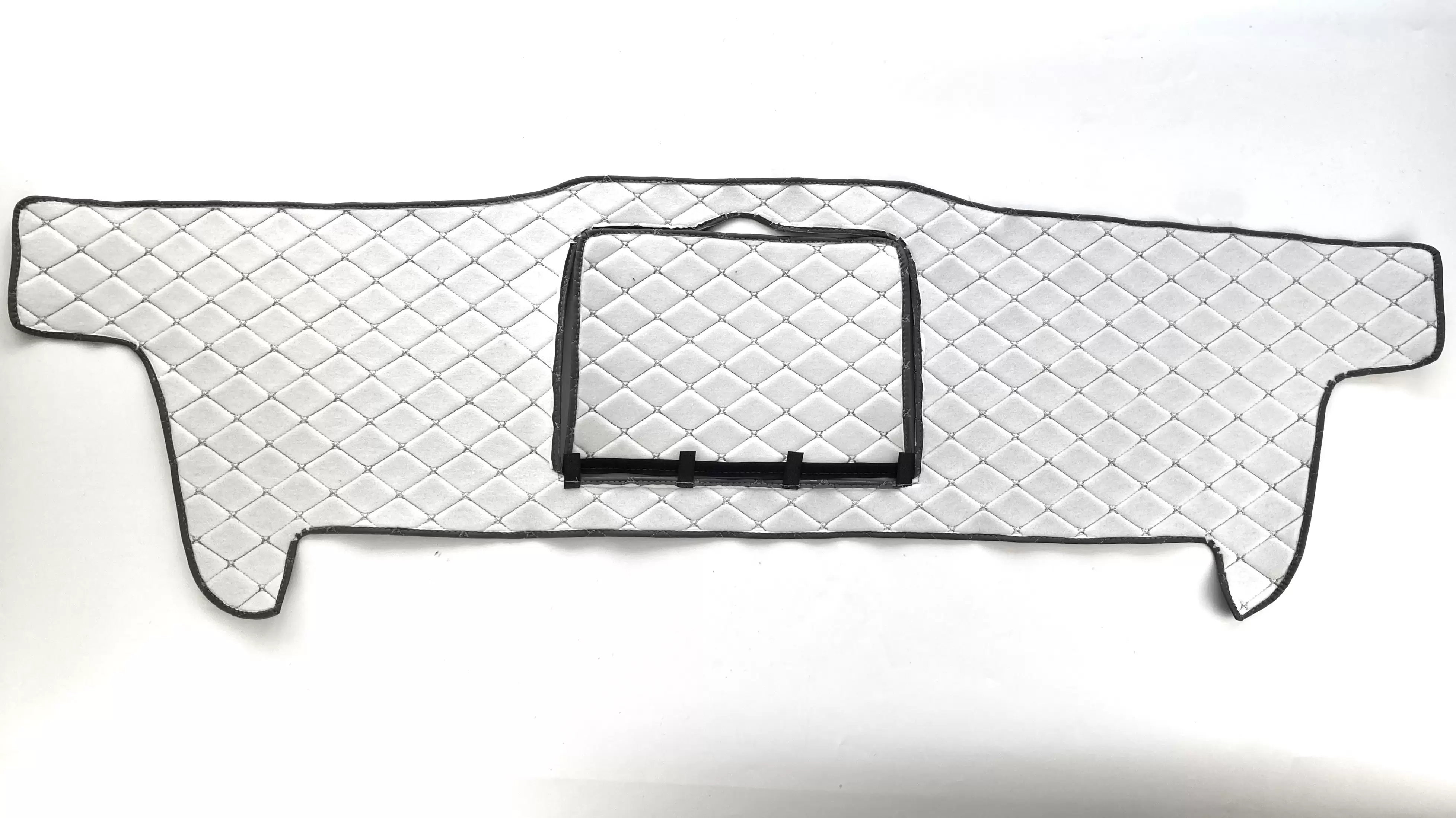 Продуманная конструкция позволяет просто и быстро прикрепить накидку к приборной панели автомобиля с помощью самоклеящейся ленты.