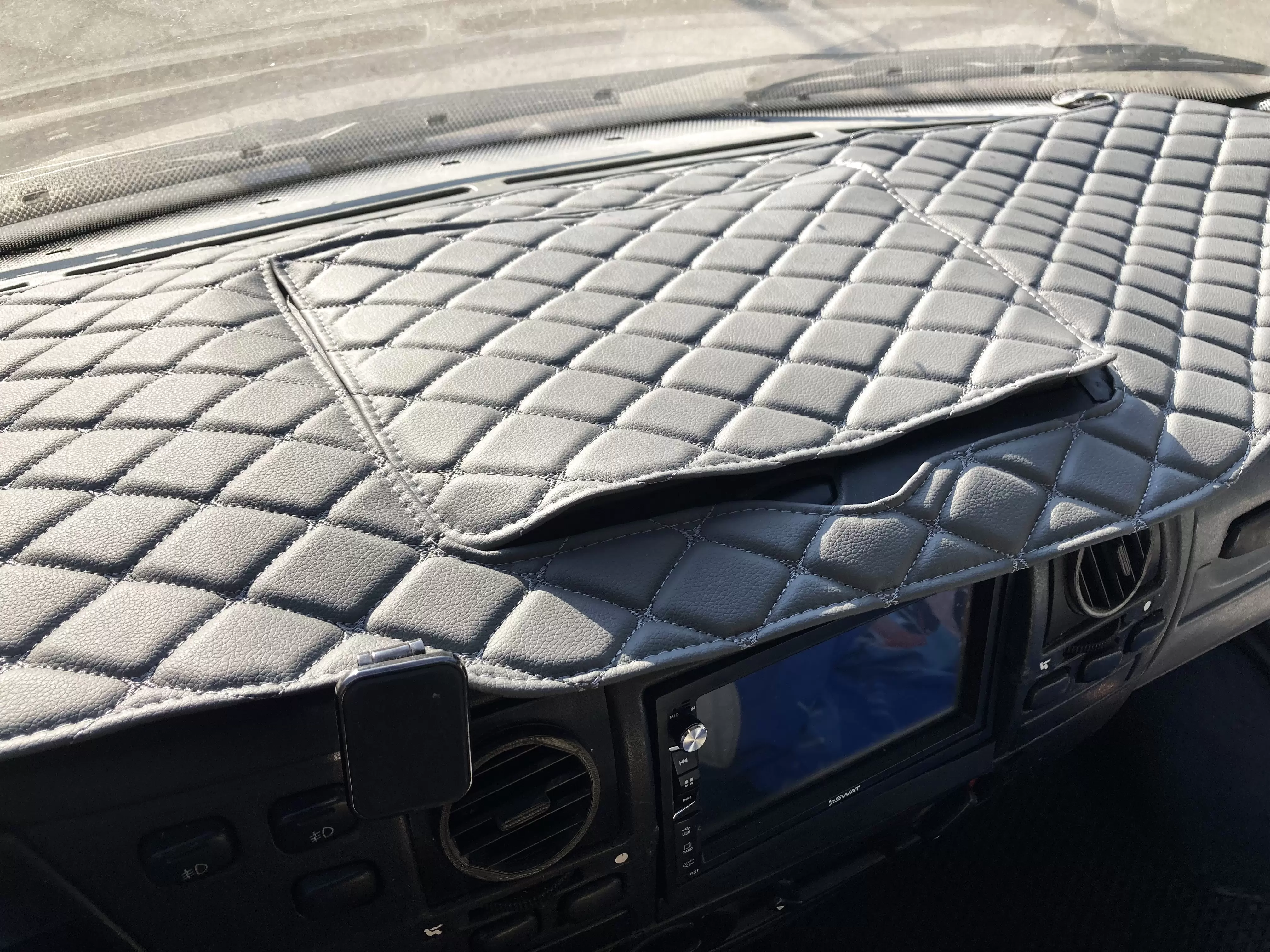 Благодаря продуманной конструкции накидка легко и быстро крепится к панели приборов с помощью самоклеящейся ленты, идущей в комплекте.