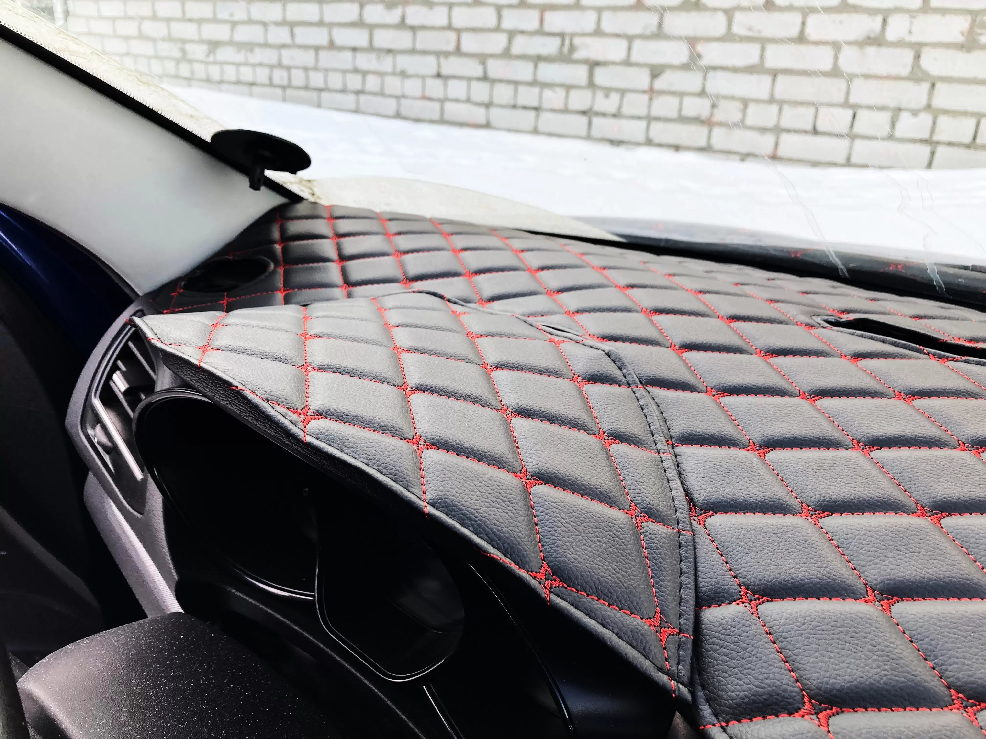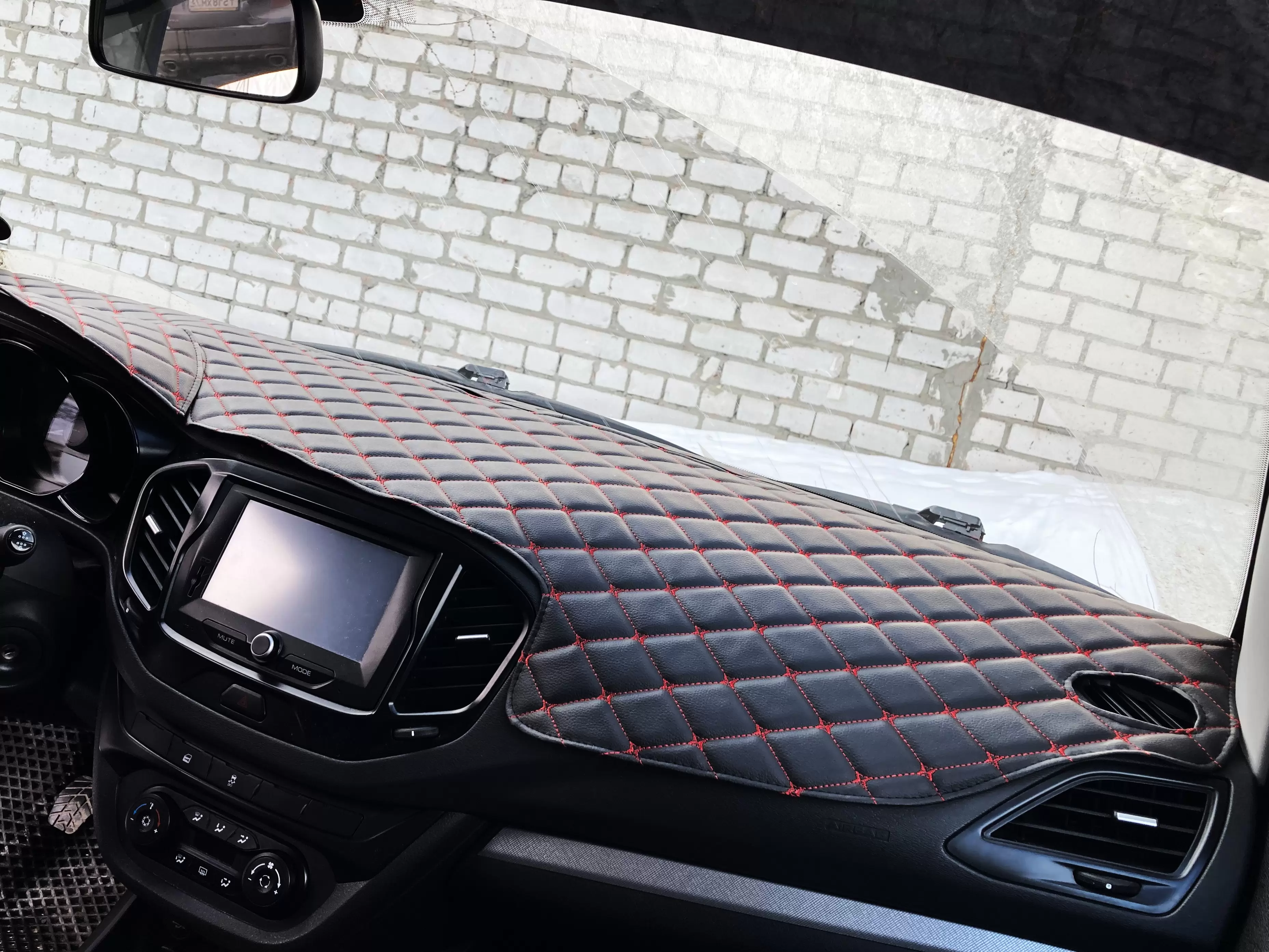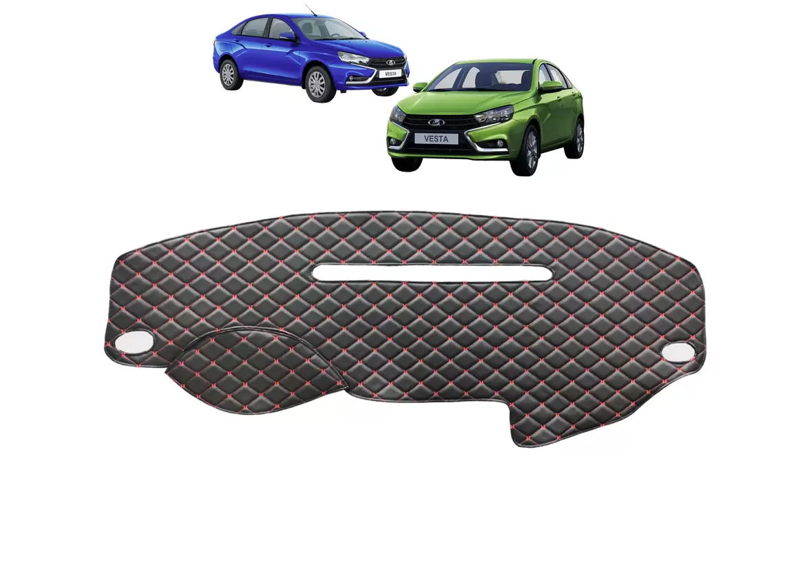 Накидка на панель LADA Vesta (2015-2021) декоративный черный ромб красная нить