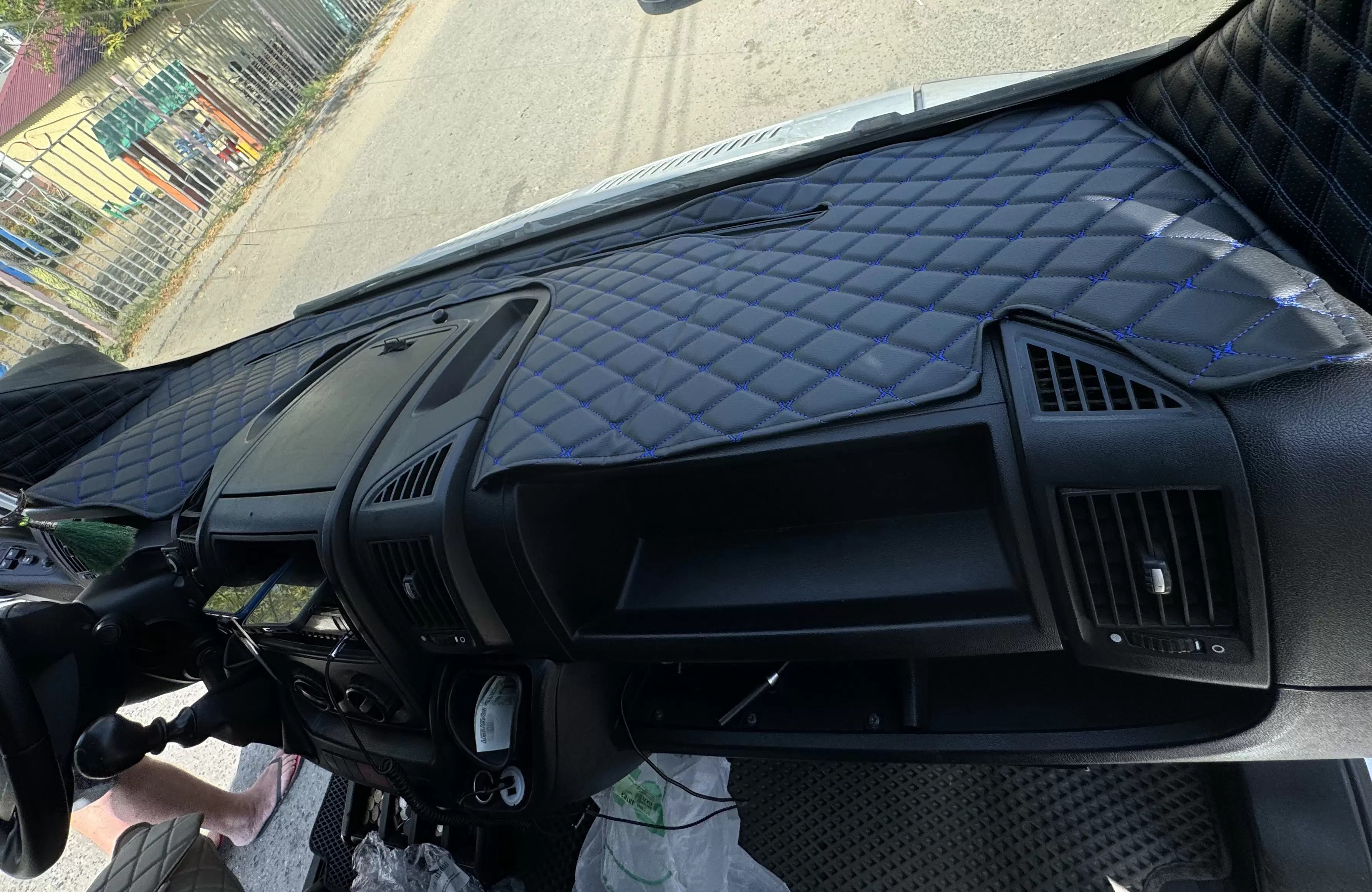 Накидка на панель приборов Peugeot Boxer 2, Citroen Jumper 2, Fiat Ducato 3 черная, синяя строчка