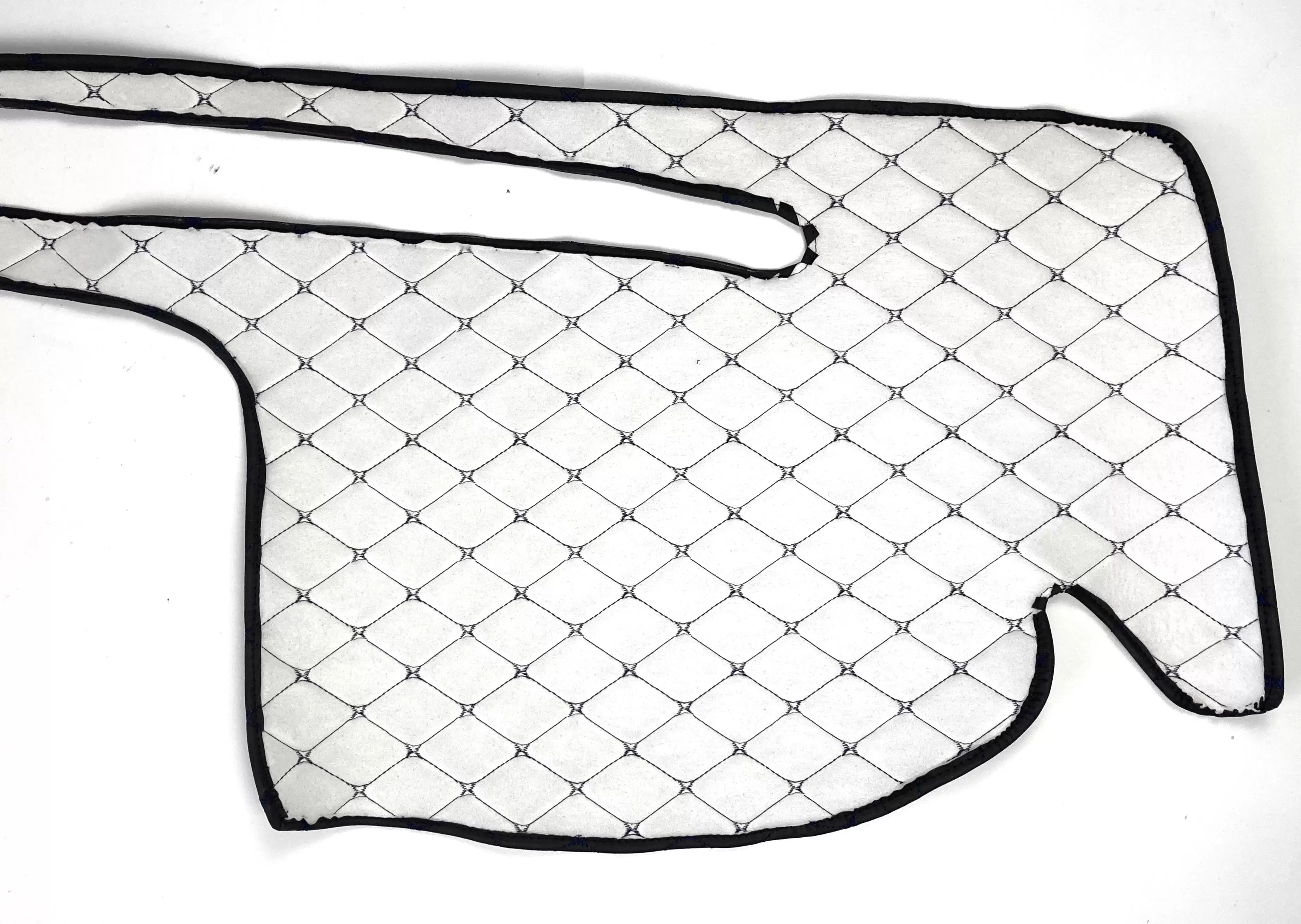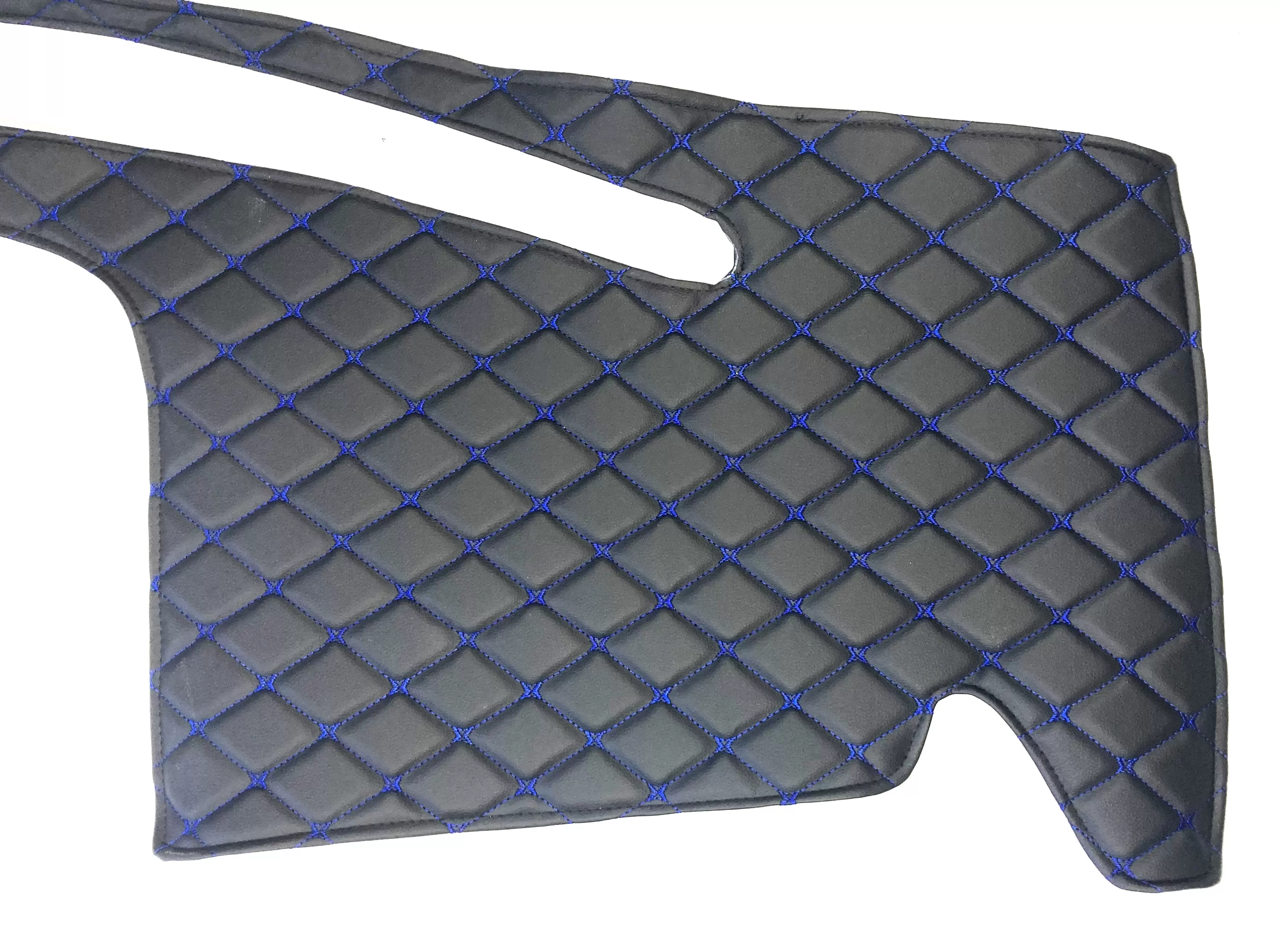 Проработанный оригинальный дизайн товара из декоративных черных ромбов, прошитых синей нитью, придаст салону Вашего автомобиля стильный и эстетичный внешний вид.