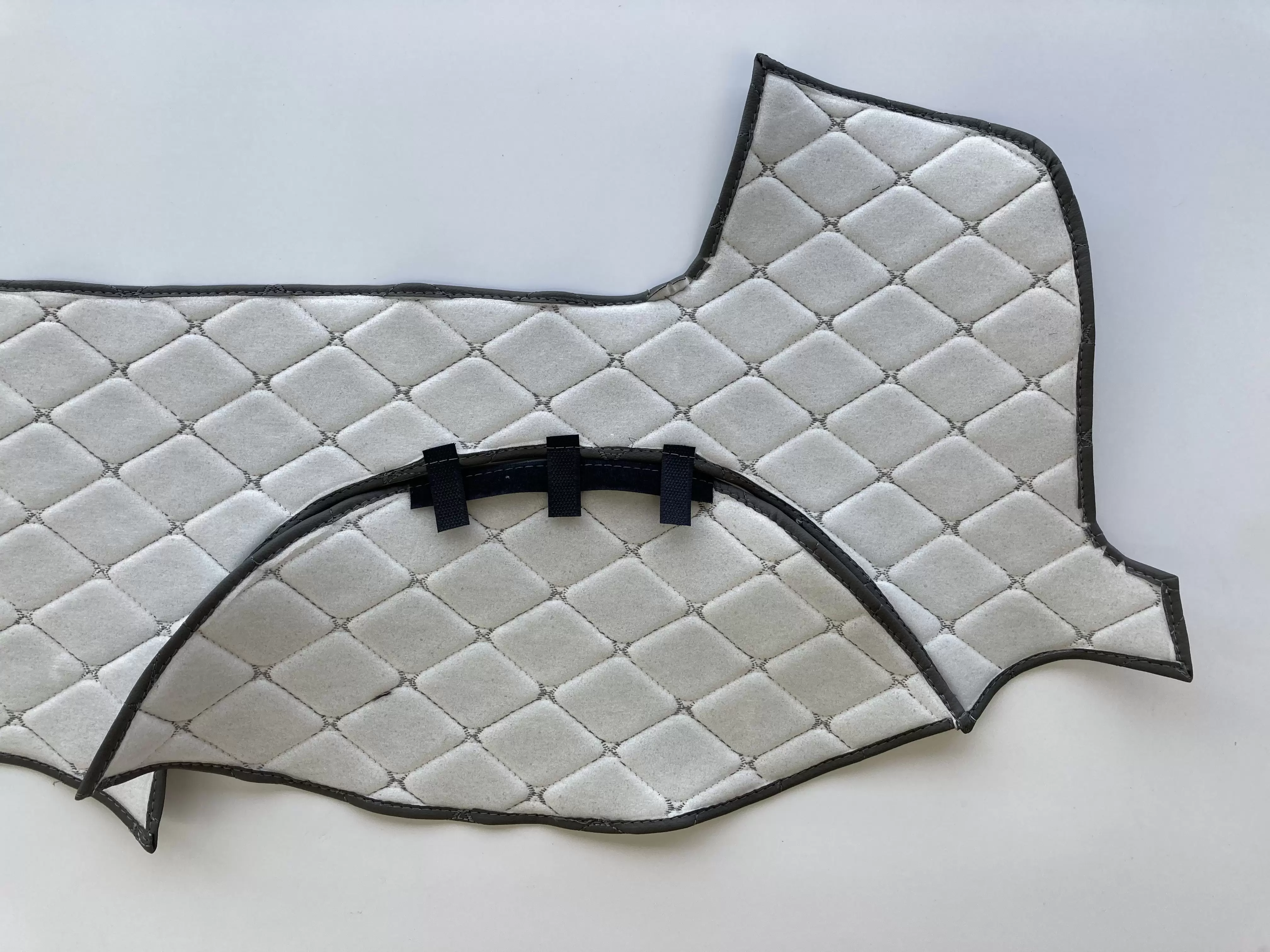 Продуманная конструкция позволяет просто и быстро прикрепить накидку к приборной панели автомобиля с помощью самоклеящейся ленты.