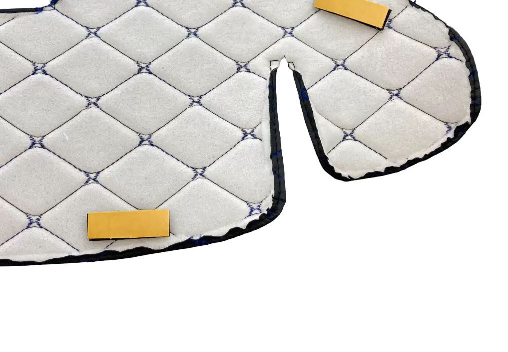 Оригинальный дизайн накидки из декоративных черных ромбов, прошитых синей нитью, придаст салону Вашего автомобиля стильный, солидный и эстетичный внешний вид.