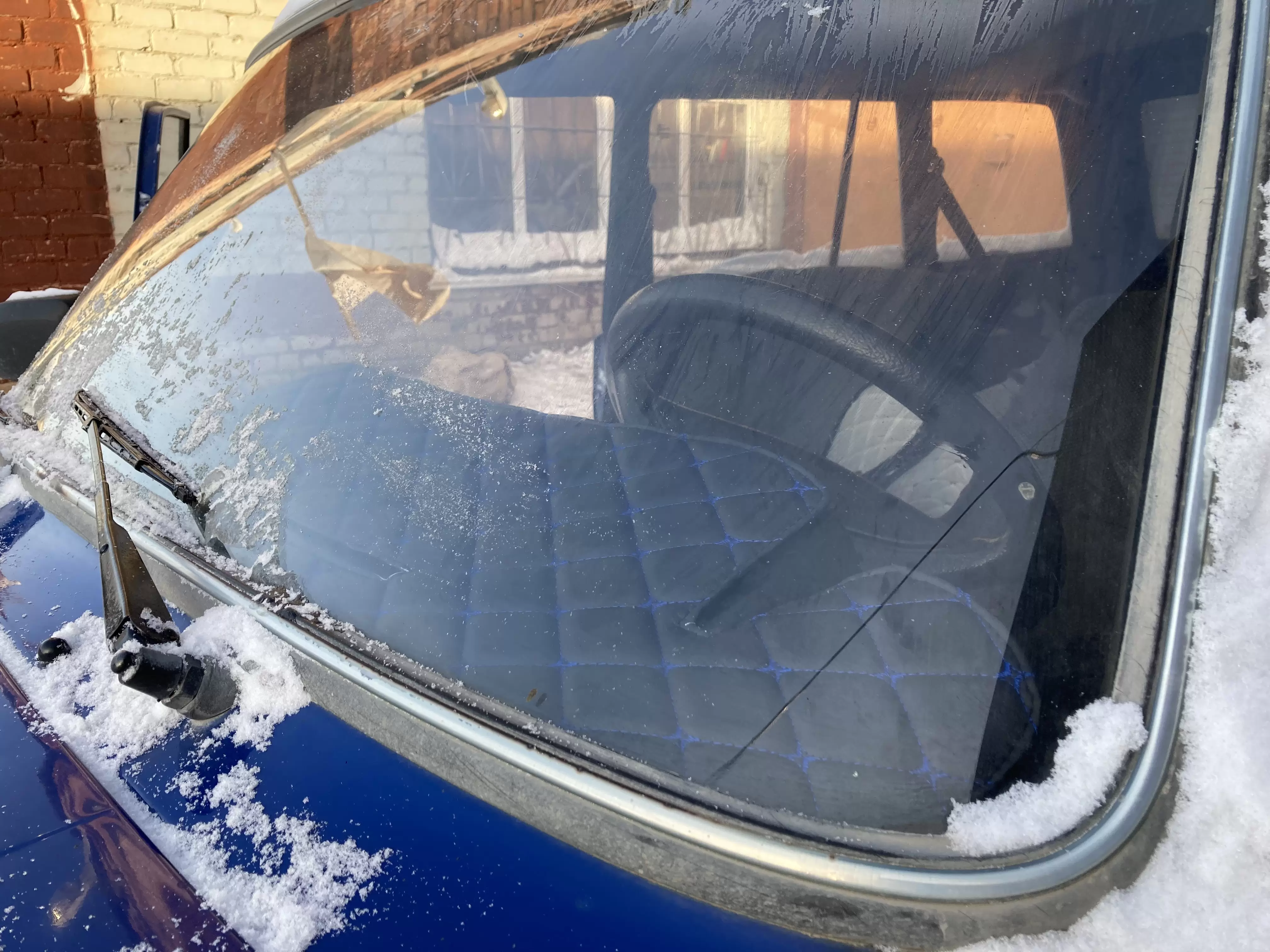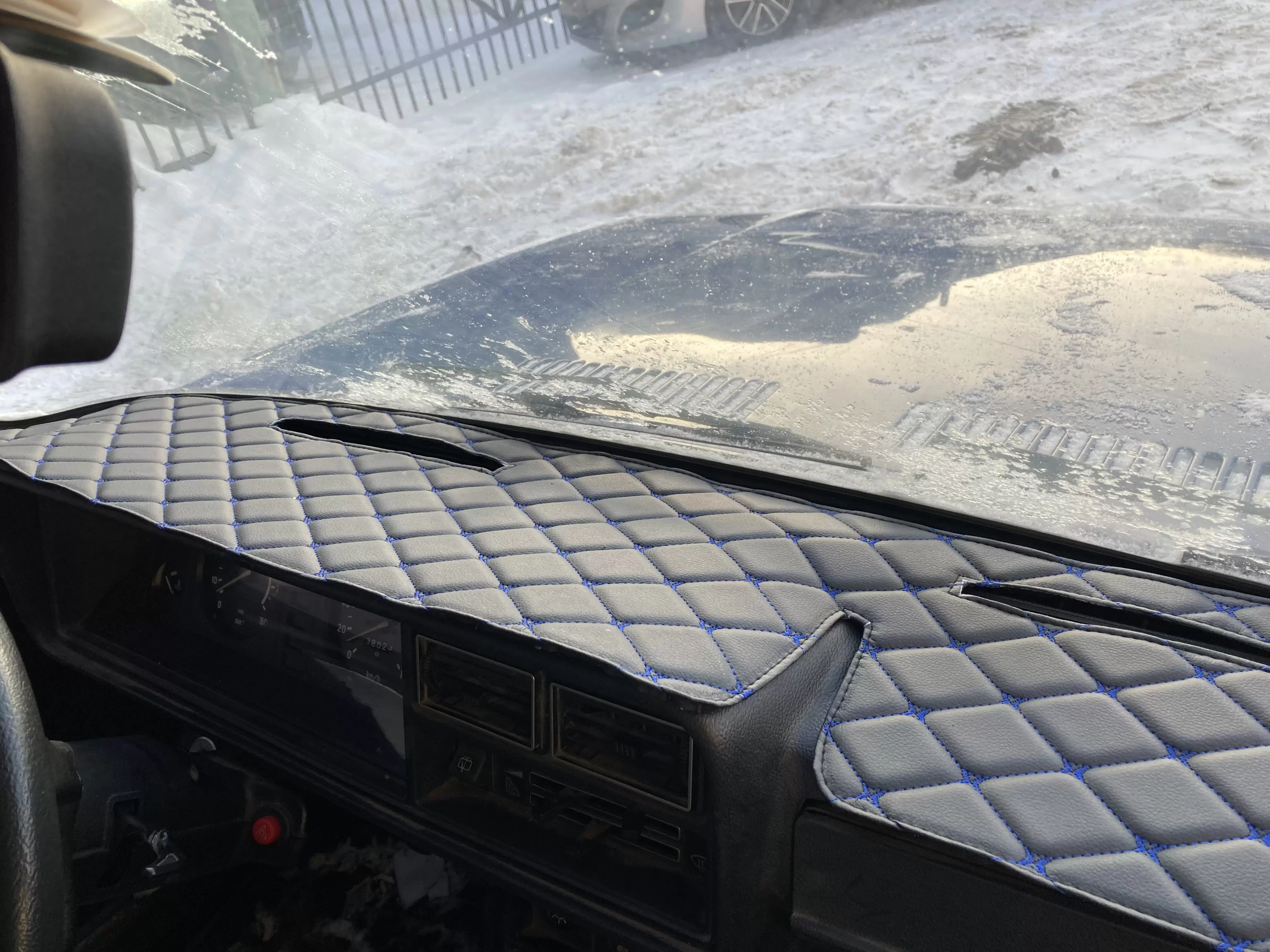 Накидка на панель приборов ВАЗ 2104 инжектор, ВАЗ 2107 декоративный черный ромб синяя нить