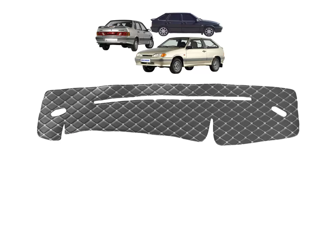 Накидка на панель приборов ВАЗ 2114, 2113, 2115 декоративный черный ромб, белая нить