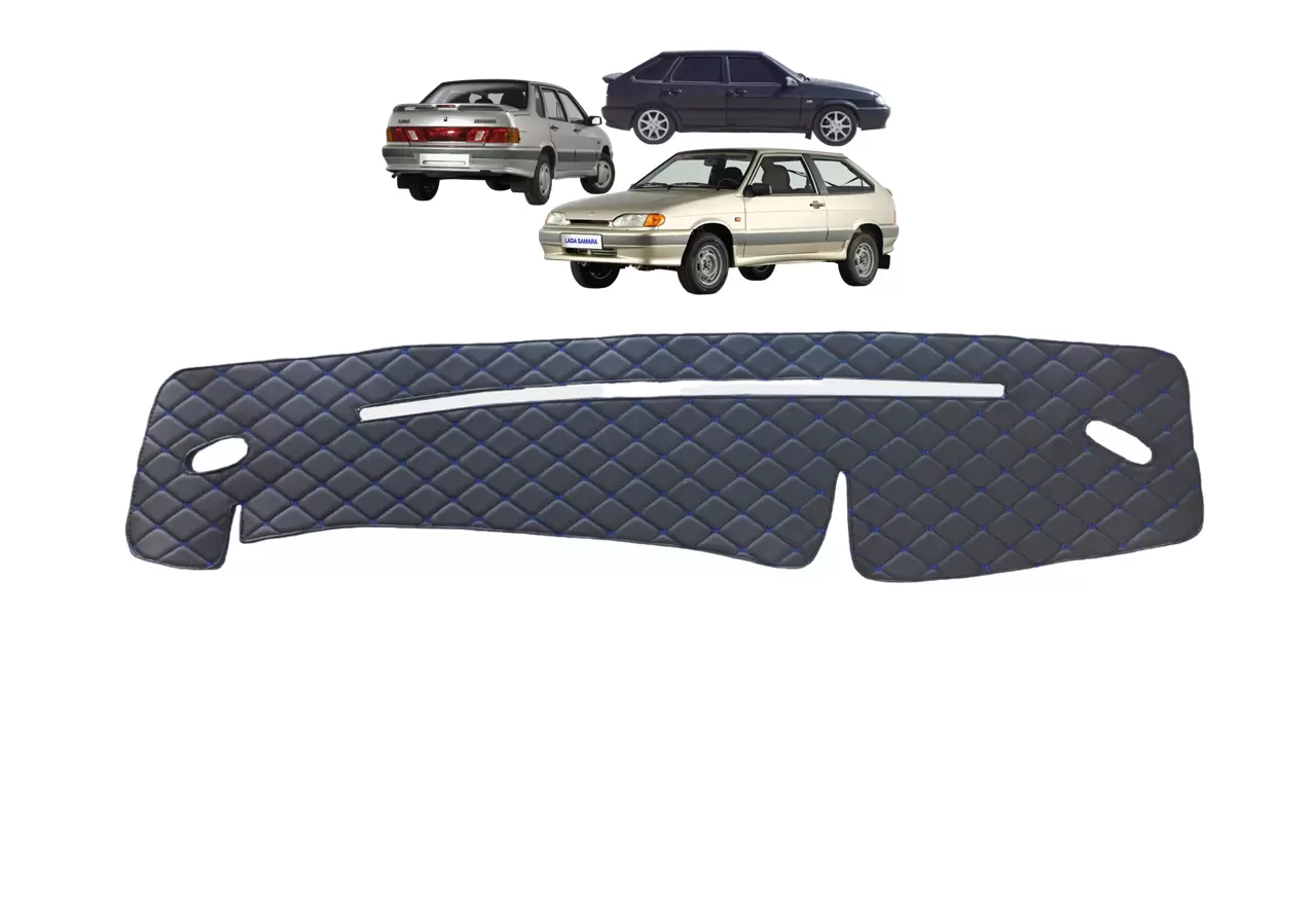Накидка на панель приборов ВАЗ 2114, 2113, 2115 декоративный черный ромб, синяя нить