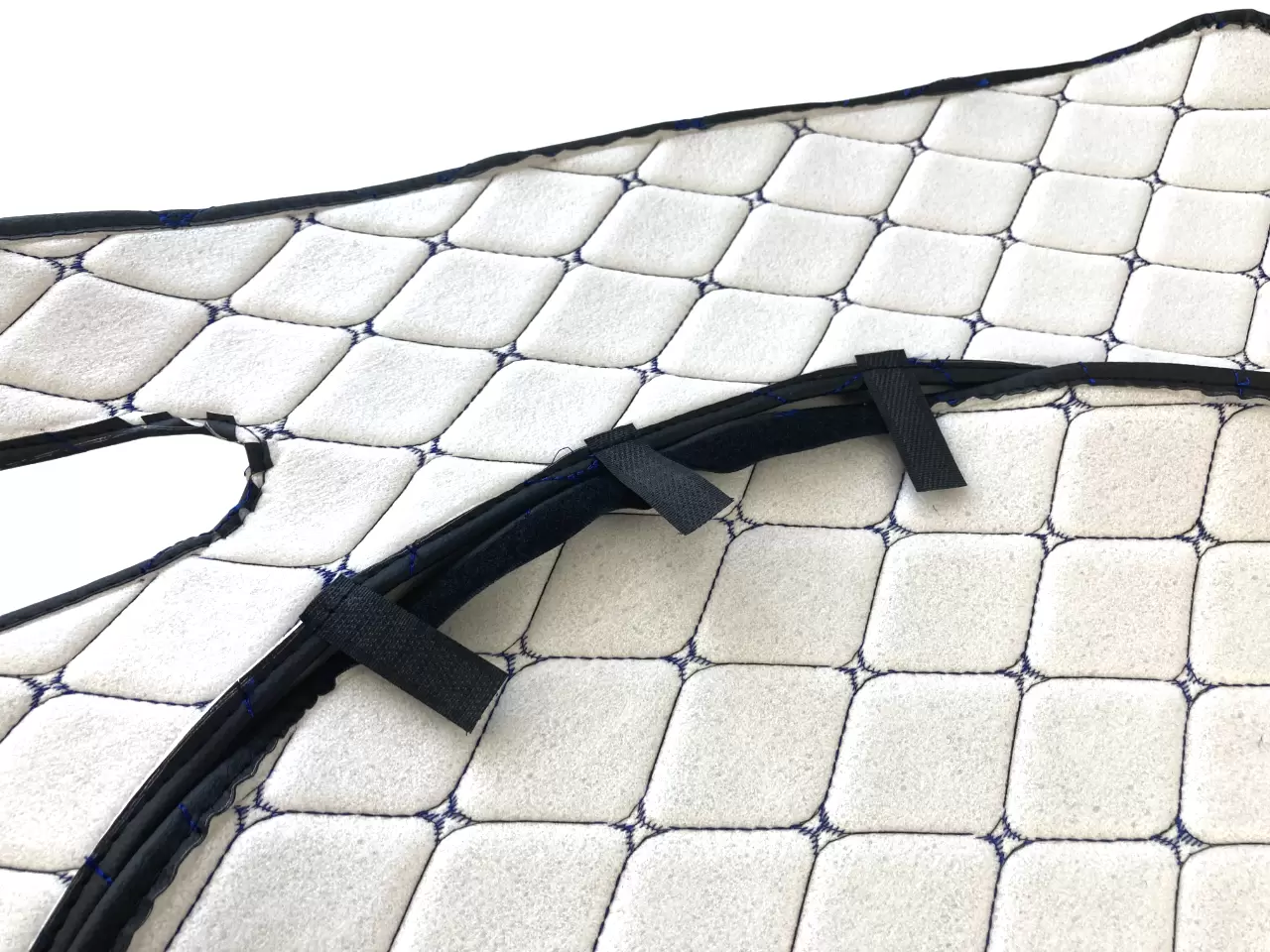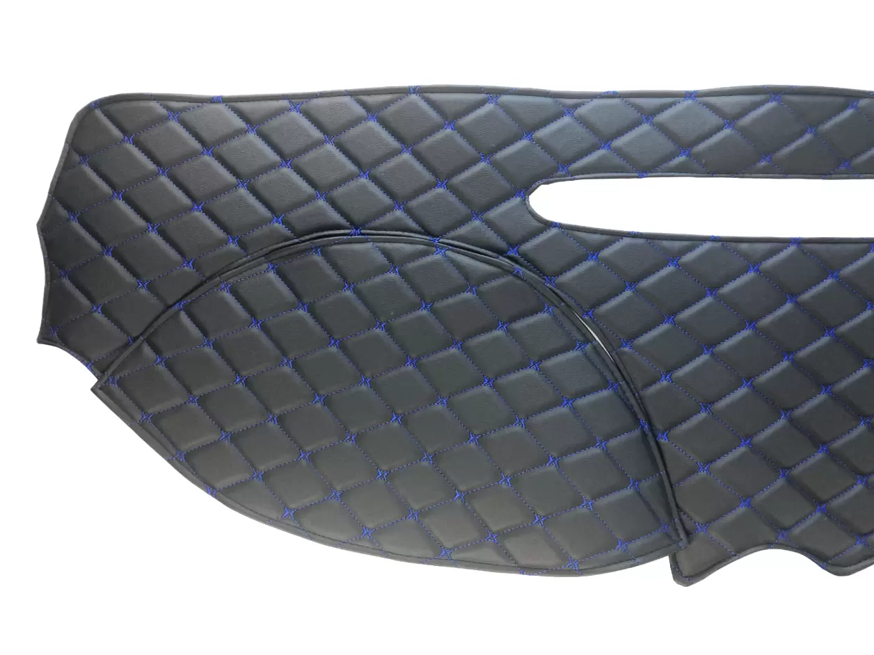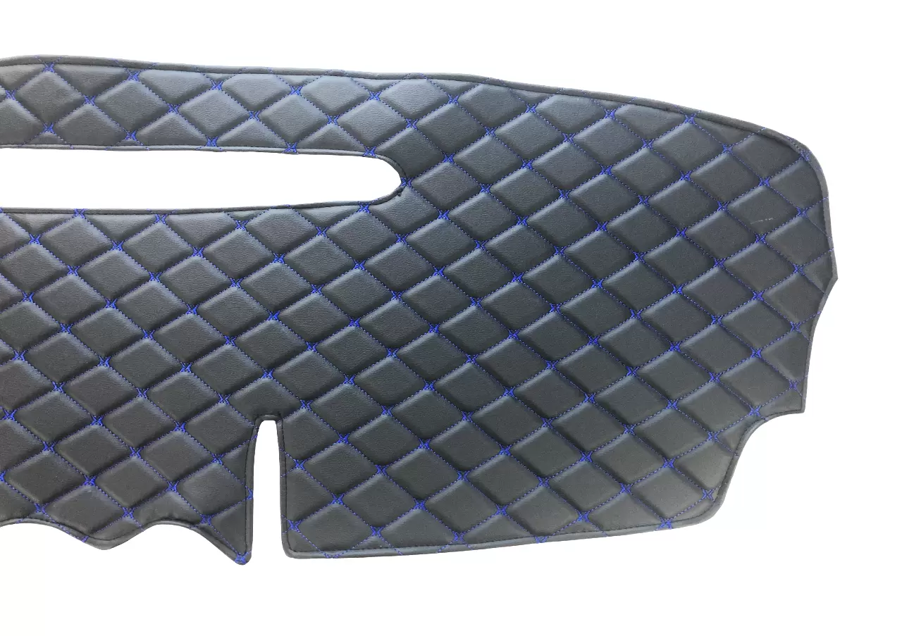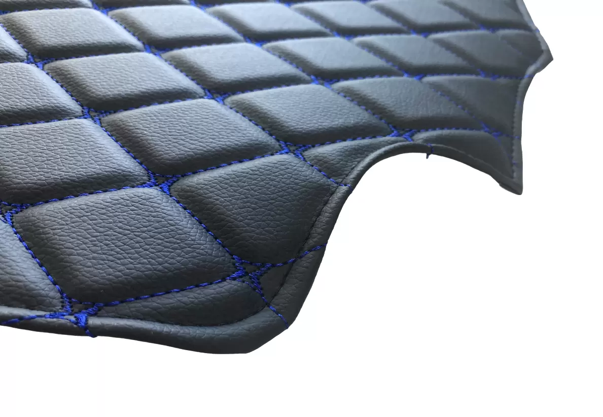 Проработанный оригинальный дизайн товара из декоративных черных ромбов, прошитых синей нитью, придаст салону Вашего автомобиля стильный и эстетичный внешний вид.