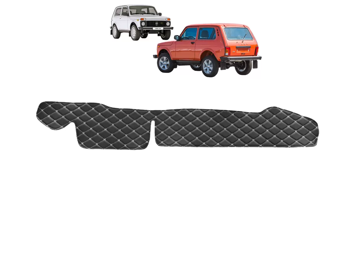 Накидка на панель приборов ВАЗ ЛАДА НИВА декоративный черный ромб белая нить