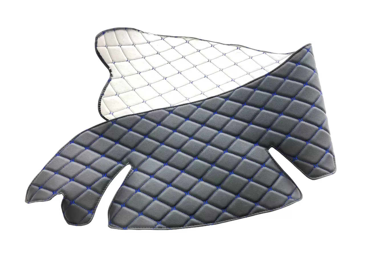 Проработанный дизайн накидки из декоративных черных ромбов, прошитых синей нитью, придаст салону Вашего автомобиля стильный, эстетичный и элегантный внешний вид.