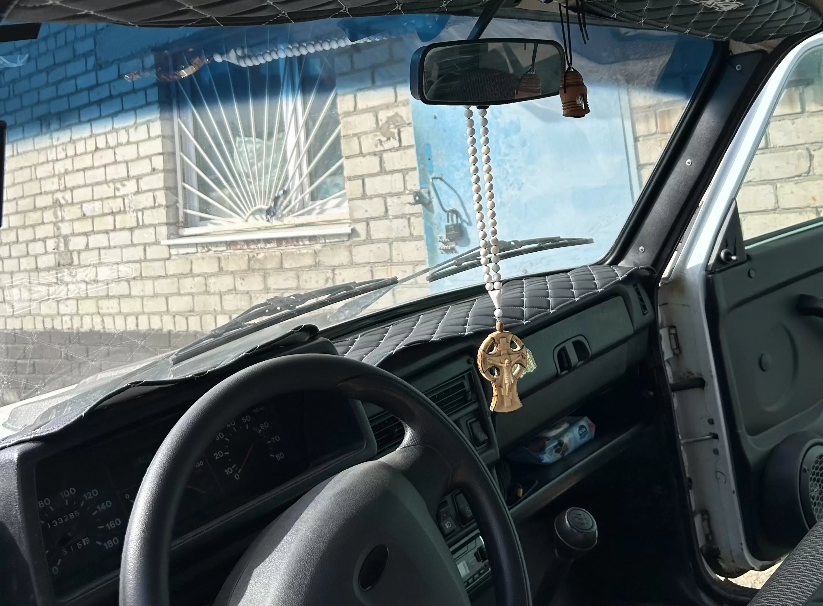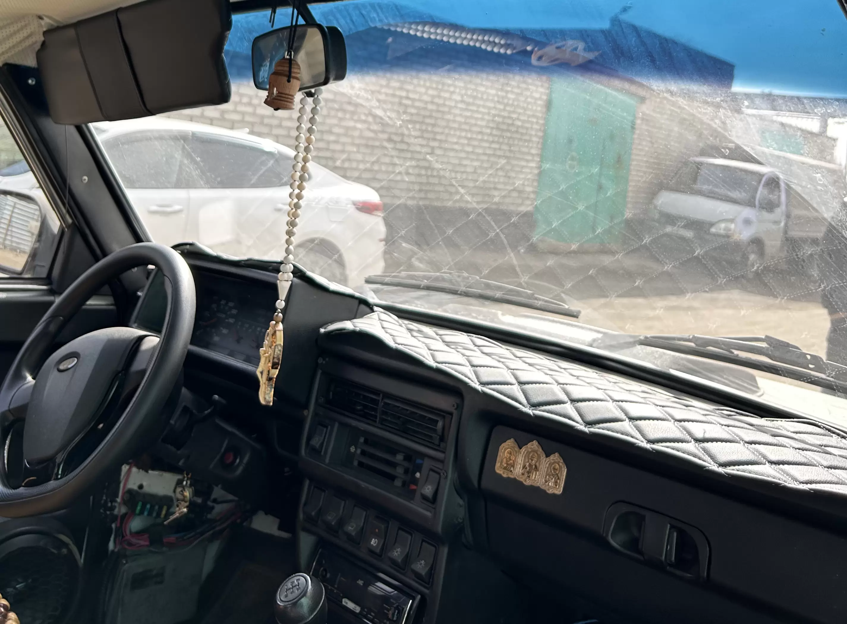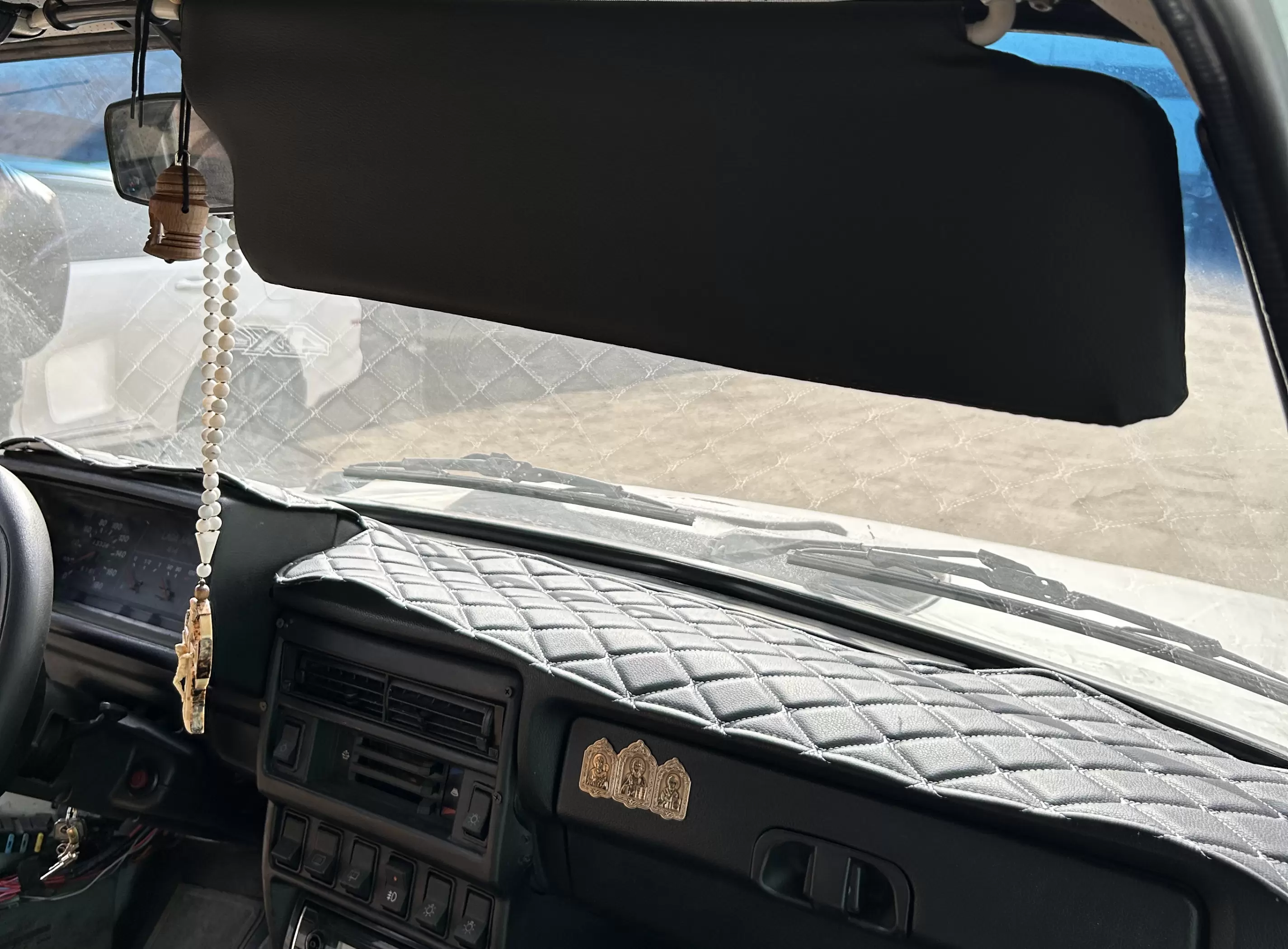 Накидка с лого 4х4 на панель приборов ВАЗ ЛАДА НИВА черный ромб белая нить