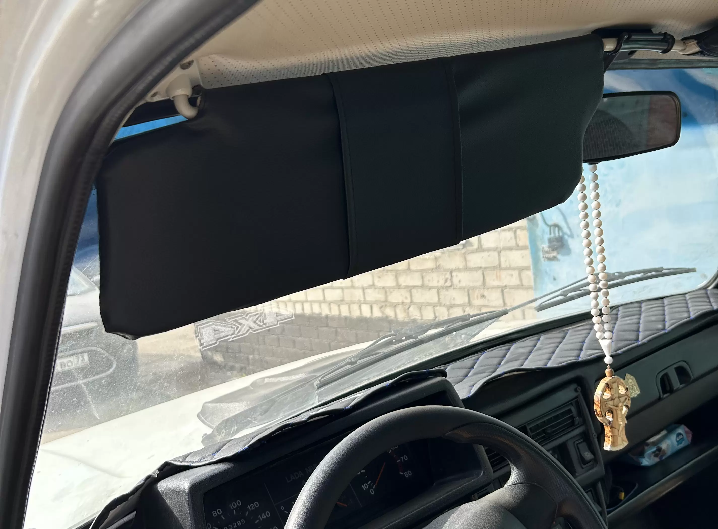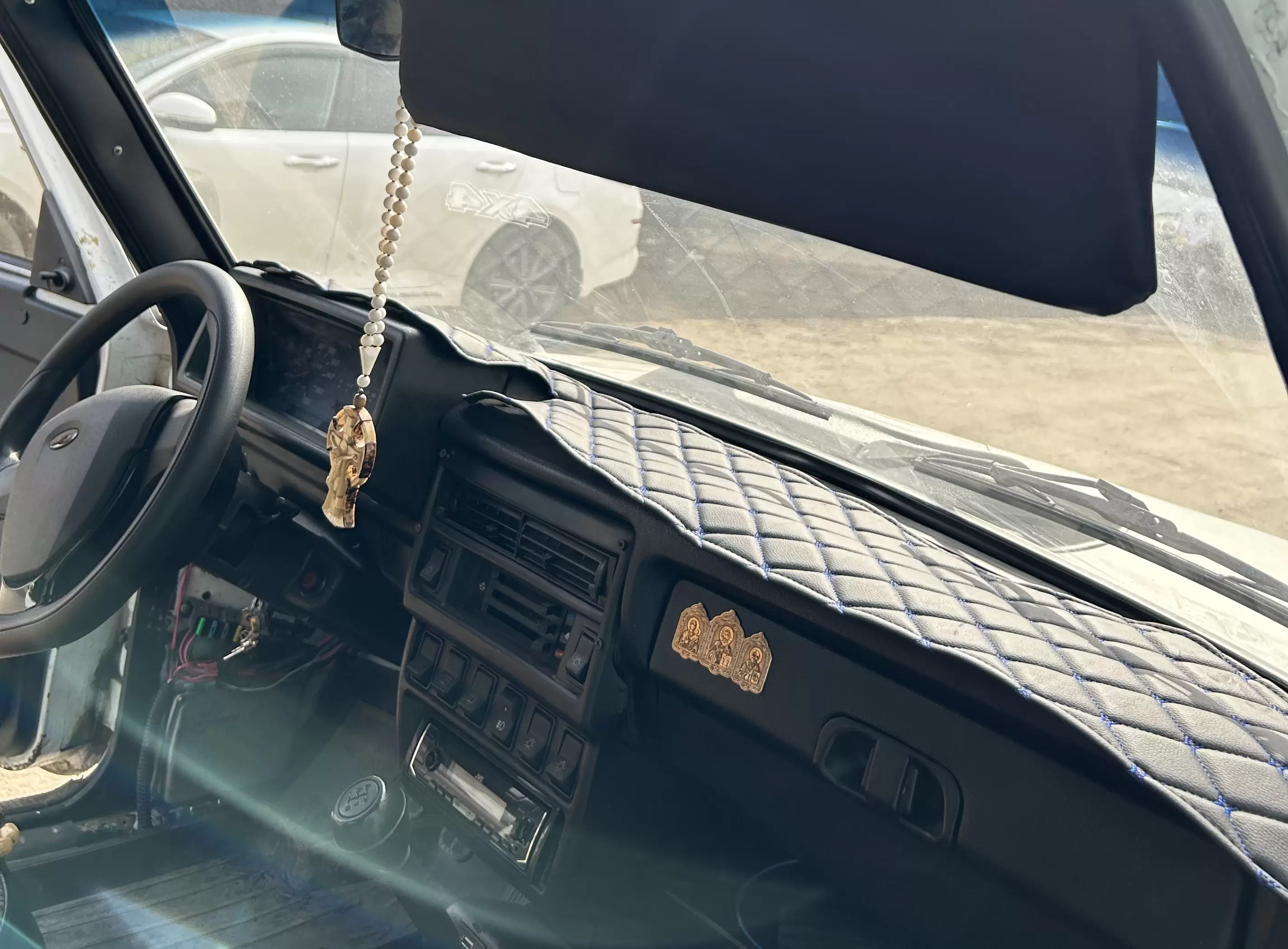 Накидка с лого 4х4 на панель приборов ВАЗ ЛАДА НИВА черный ромб синяя нить