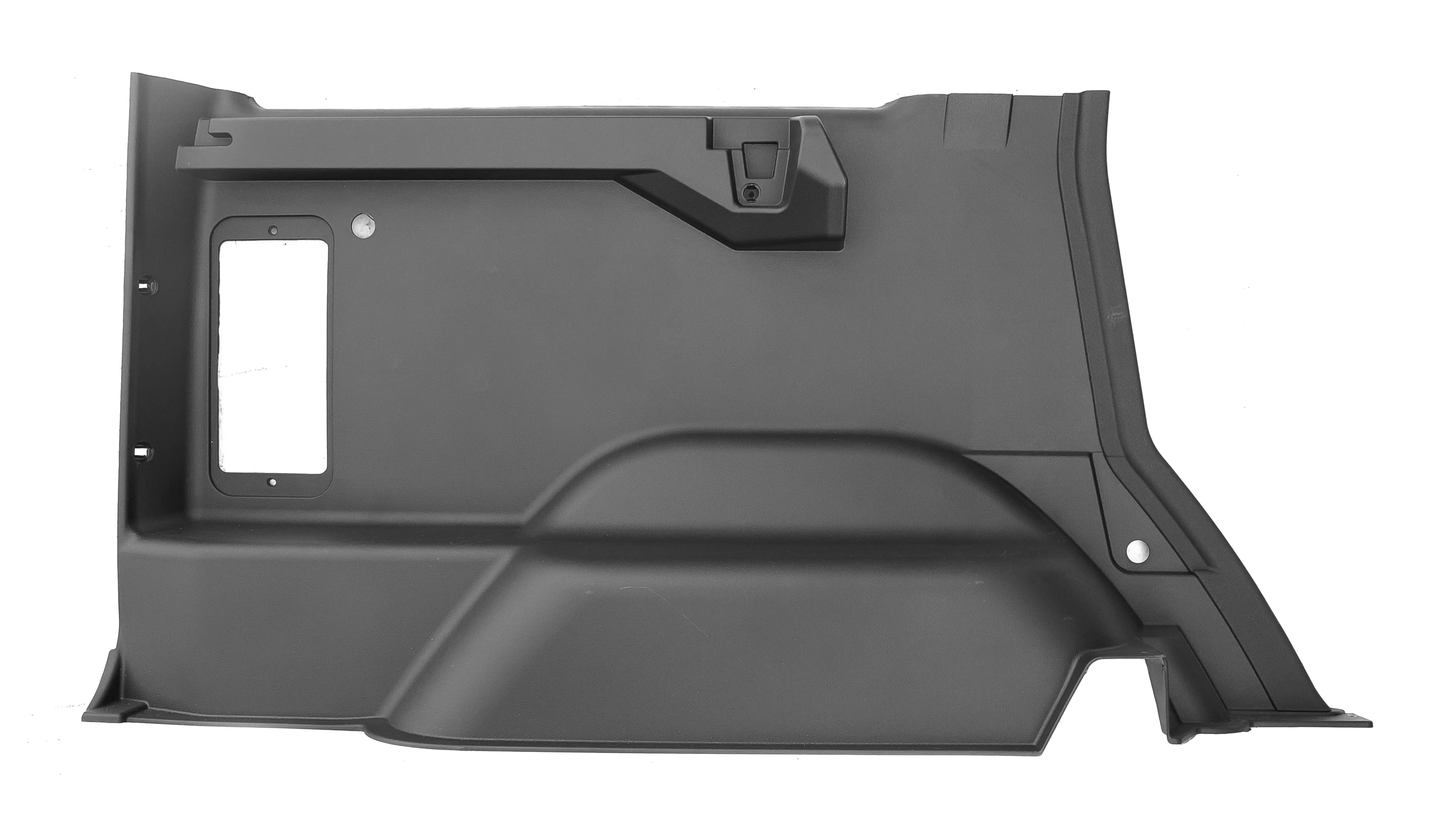 Задняя левая обивка боковины предназначена для автомобилей УАЗ Патриот выпуска с 2018 года в комплектациях Classic и Optimum. Изделие используется для штатной облицовки задней части салона и устанавливается на левую сторону.