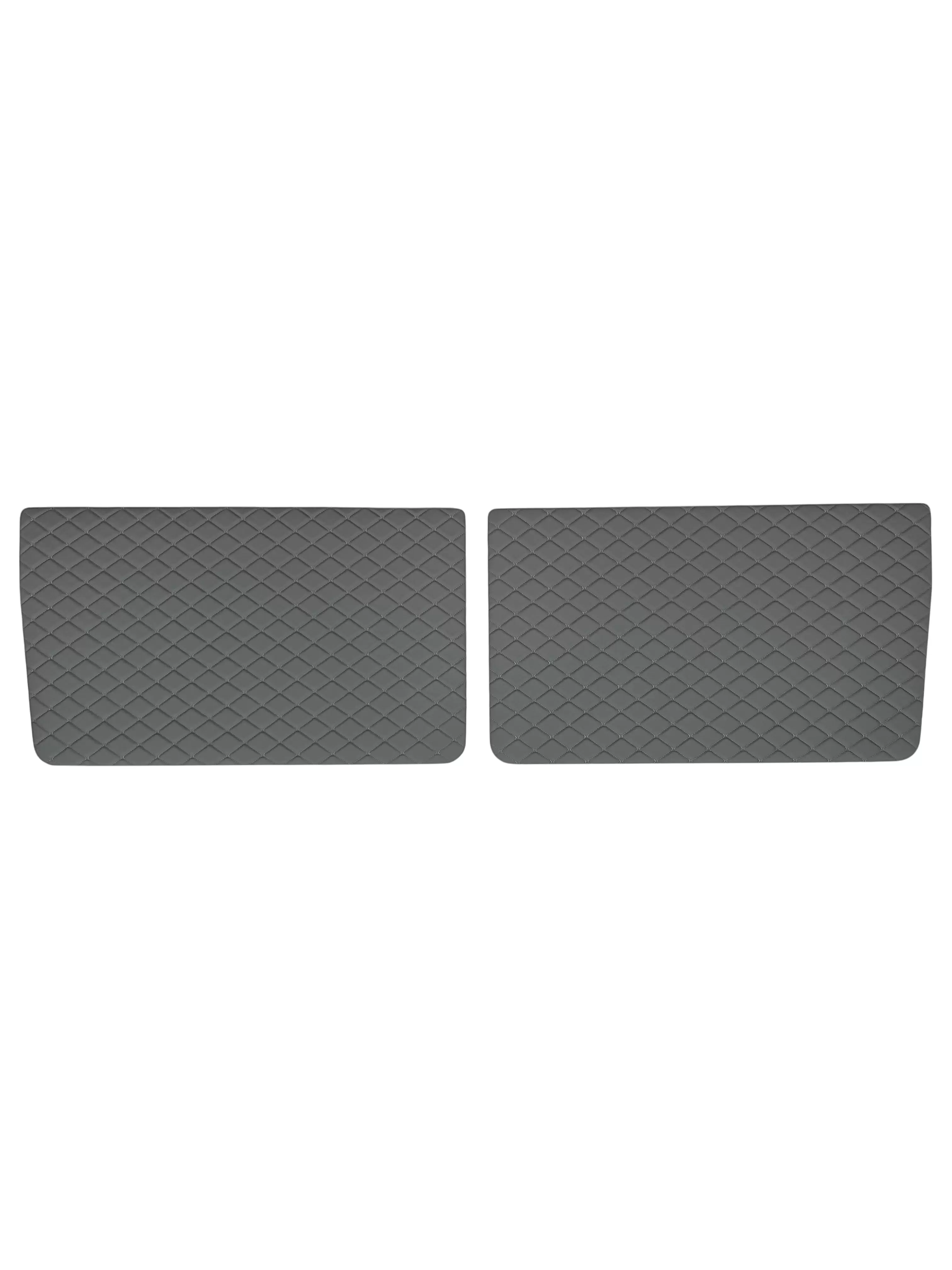 Обивки изготовлены на основе ДВП с внешним покрытием из винилискожи и декоративной ромбовидной прострочкой. Комплект включает обшивку водительской правой и пассажирской левой дверей. На основе предусмотрены технологические отверстия под штатные ручки, однако на внешнем материале потребуется дополнительная подрезка и доработка по месту при установке.