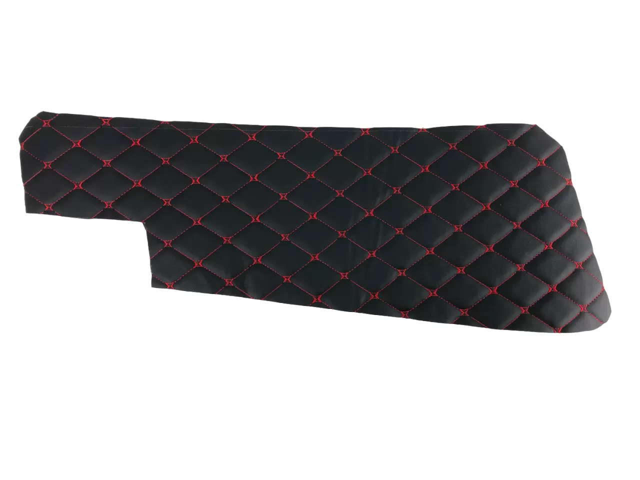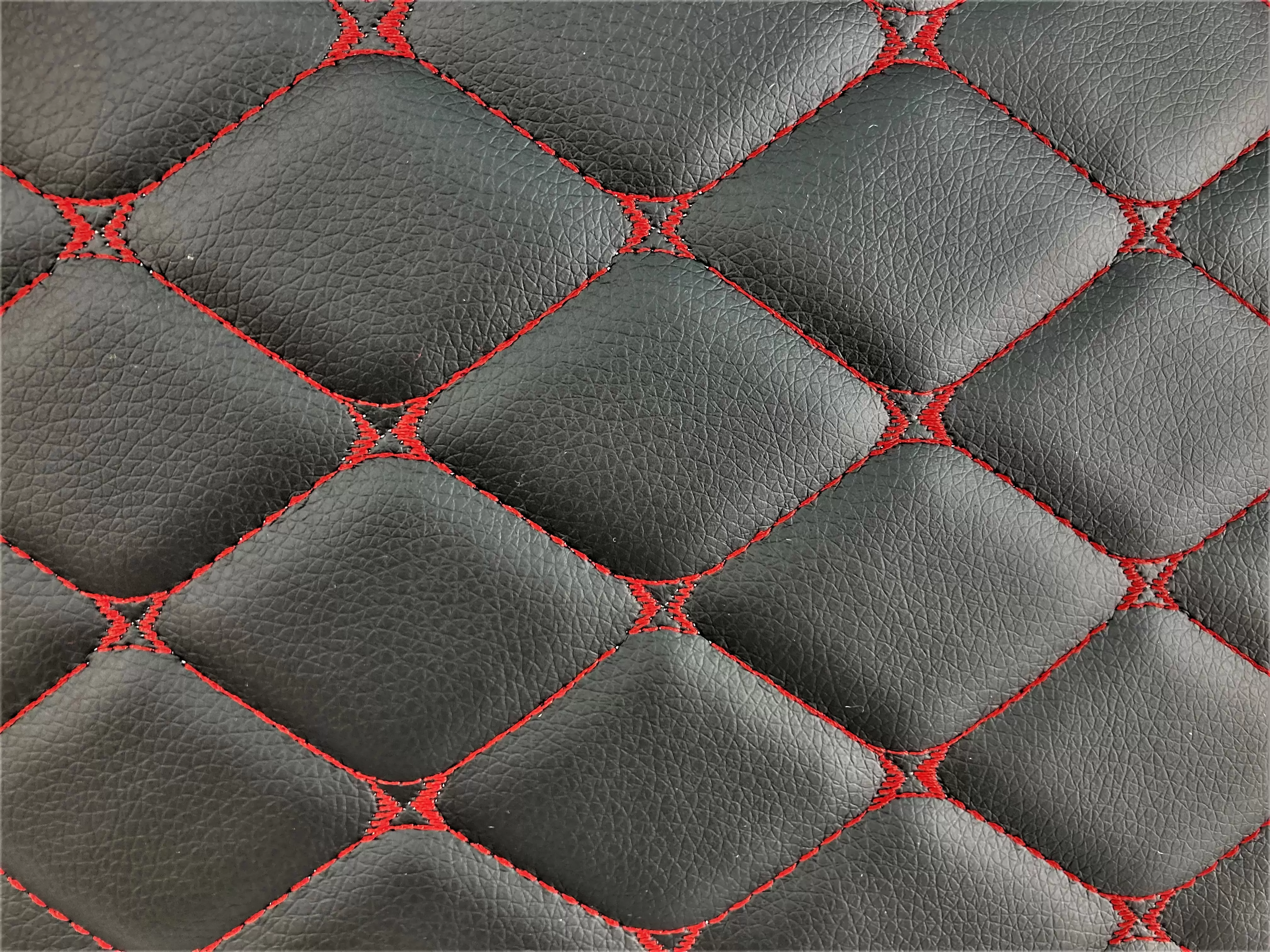 Стильный оригинальный дизайн товара в виде черных ромбов, прошитых яркой красной нитью, придает салону автомобиля брутальности и своеобразия.