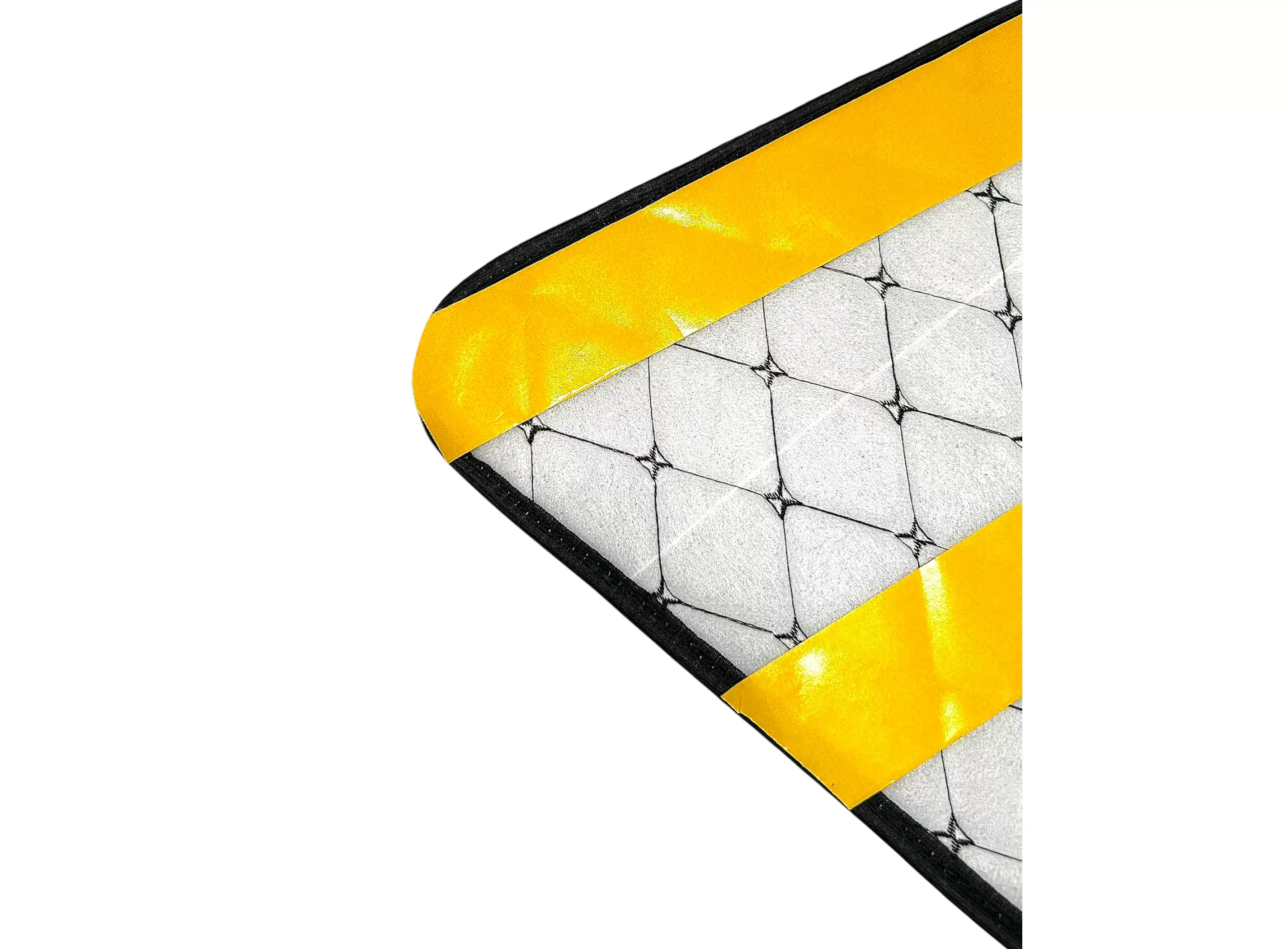 Внешний слой выполнен из прочной винилискожи с ромбовидной прострочкой. С обратной стороны нанесён двухсторонний монтажный скотч, что позволяет устанавливать накладки без применения специальных инструментов и без вмешательства в конструкцию двери.