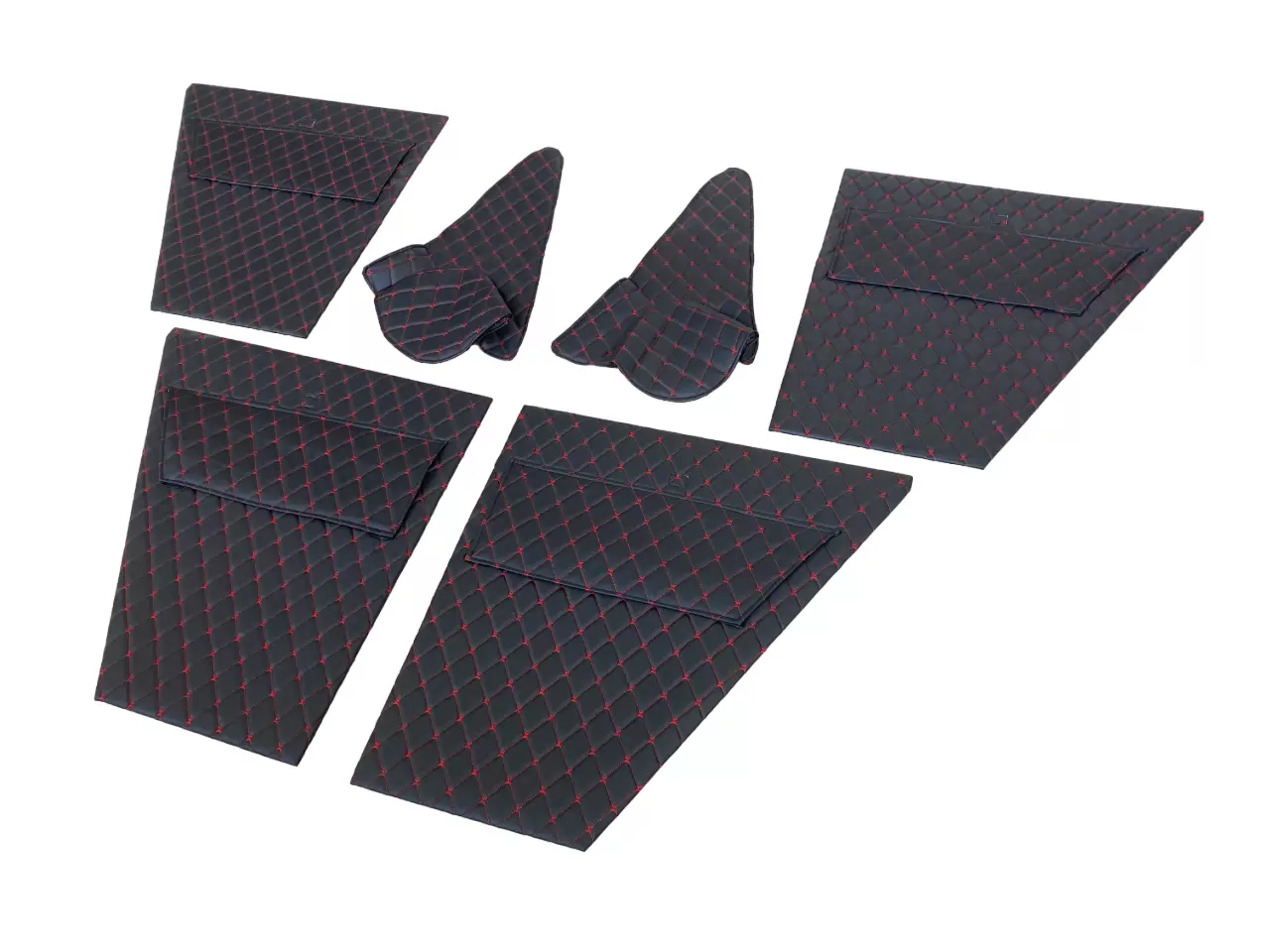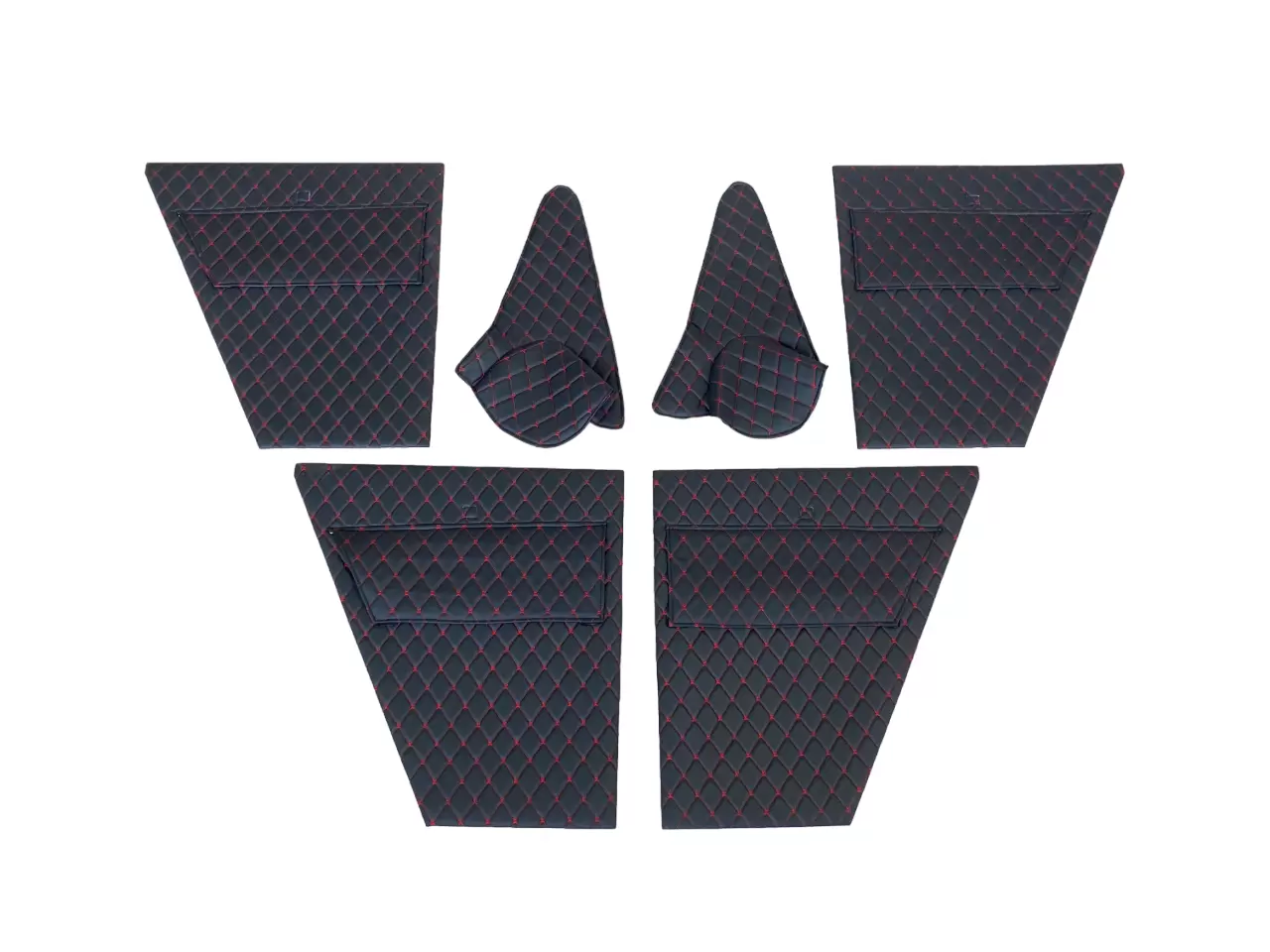 Обивка дверей и стоек УАЗ 469, Хантер (ДВП) чёрный ромб декоративная красная нить 6 шт