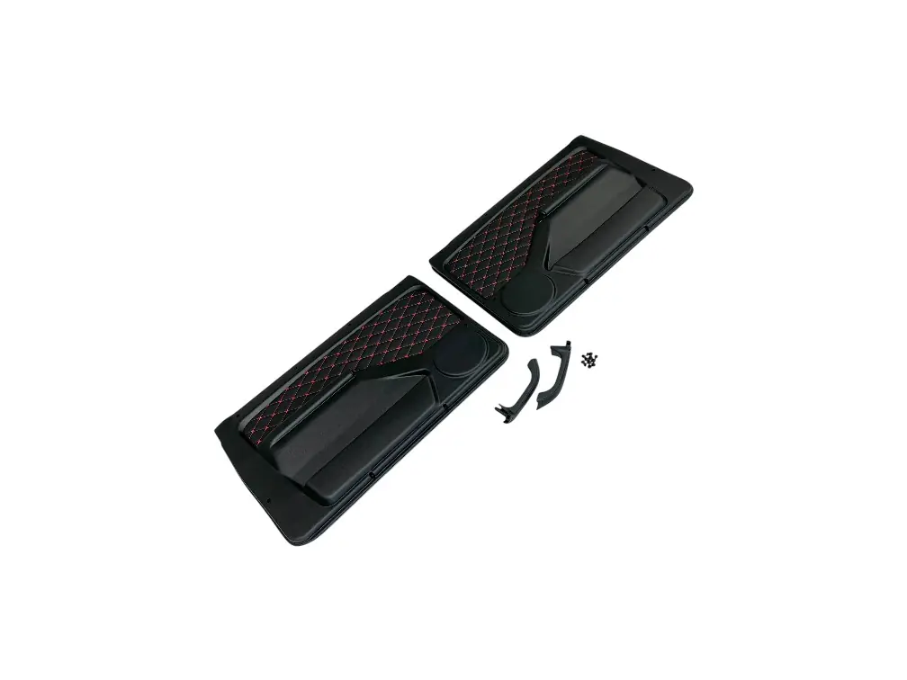 Обивки передних дверей ВАЗ 21213-214 Нива в сборе с ручками и большой вставкой красная нить