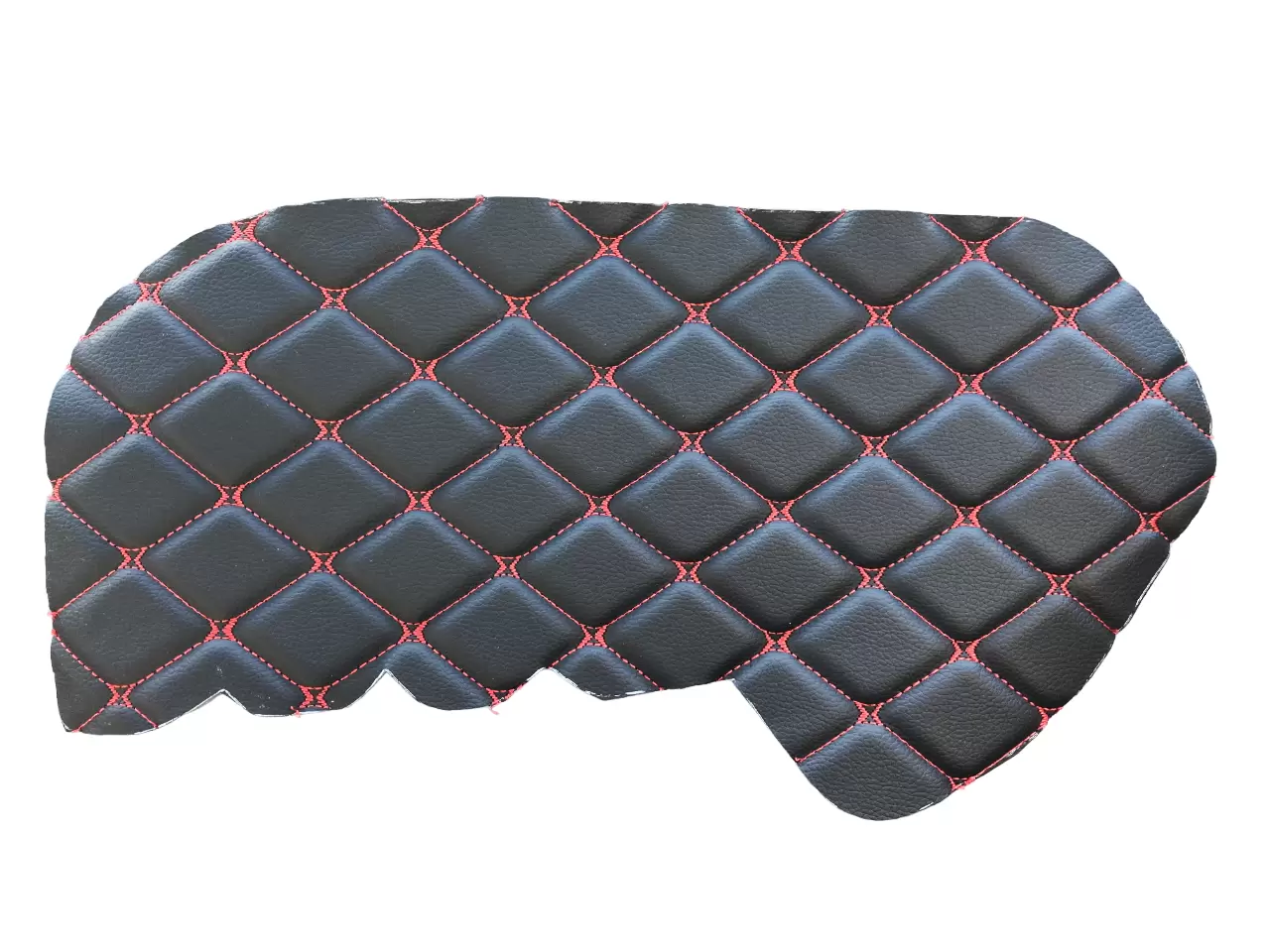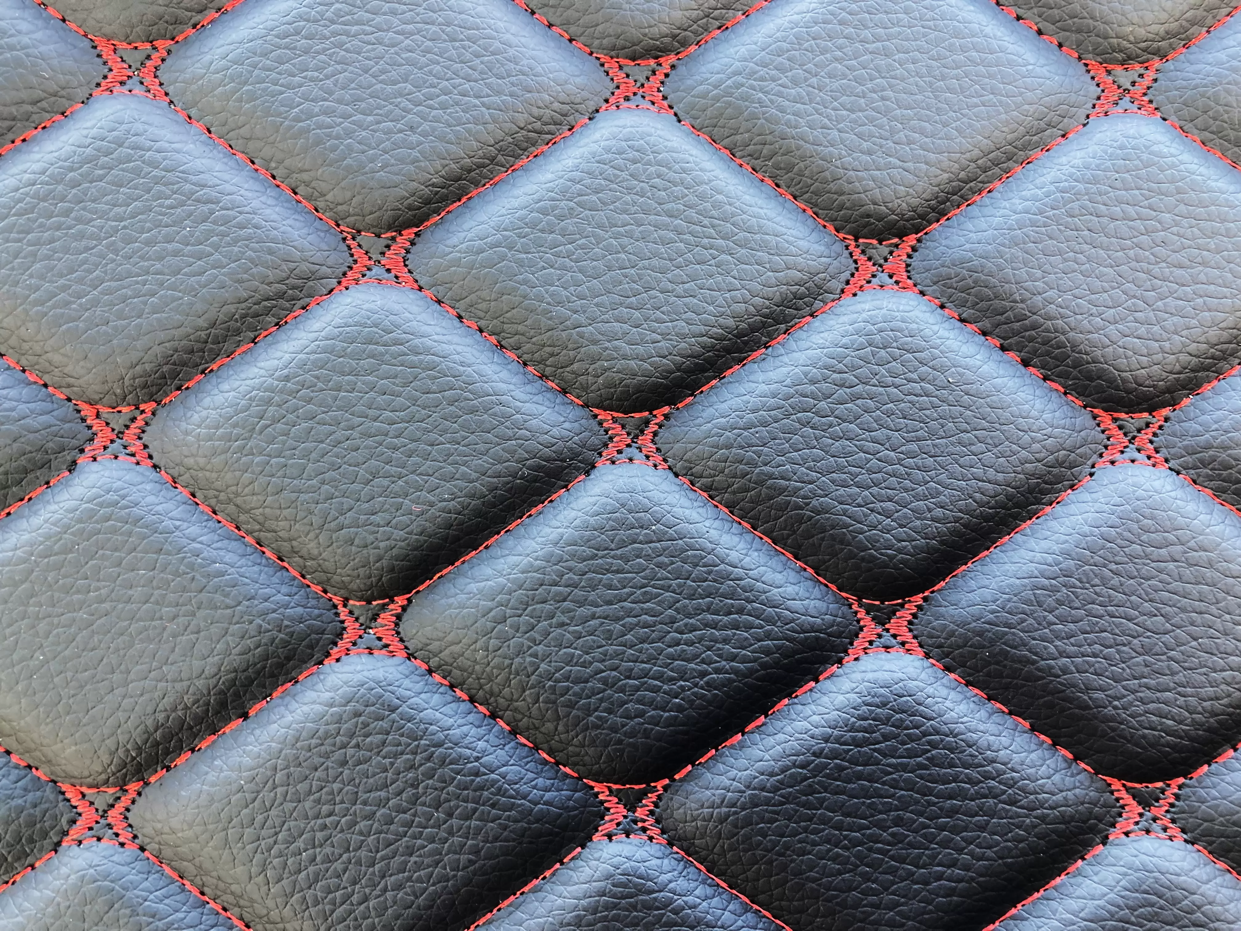 Стильный оригинальный дизайн товара в виде черных ромбов, прошитых яркой красной нитью, придает салону автомобиля брутальности и своеобразия.