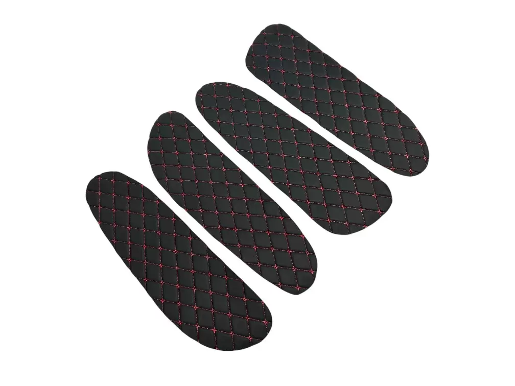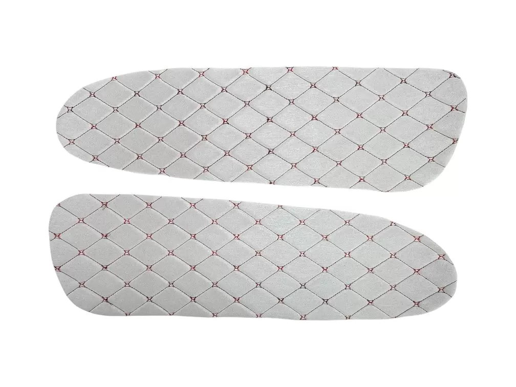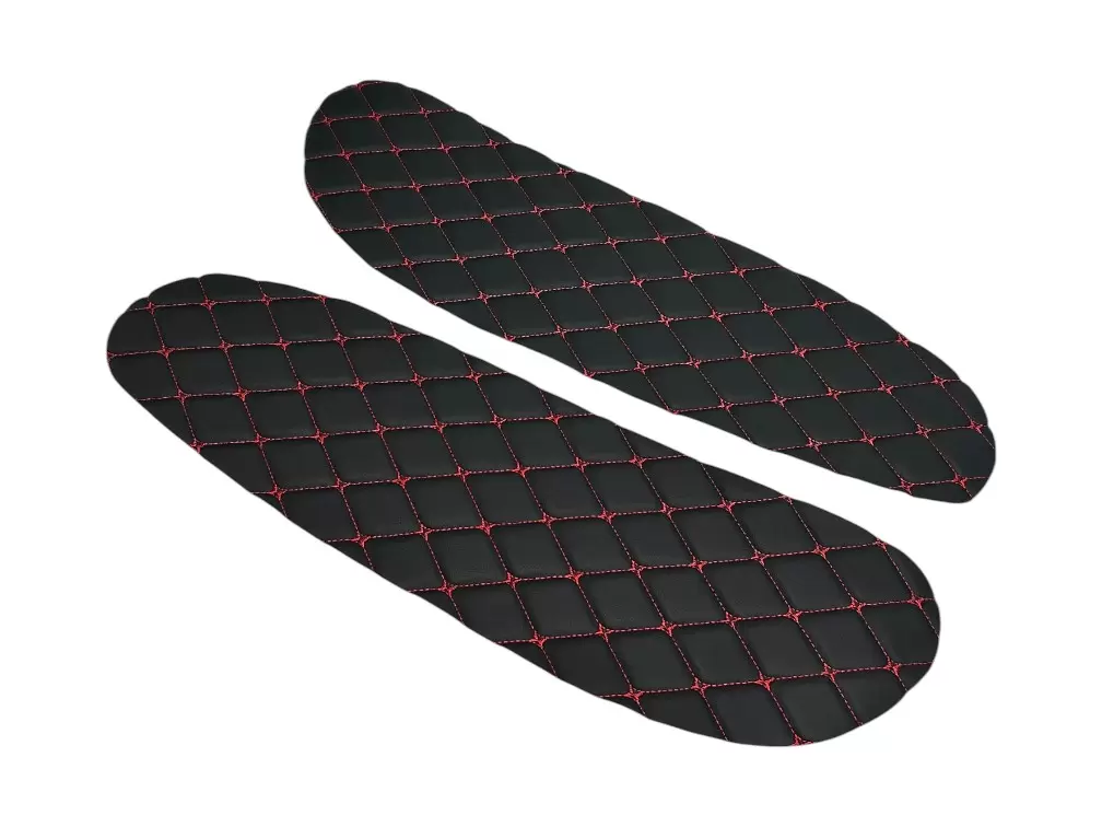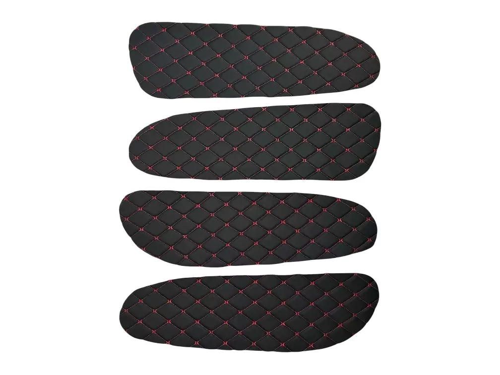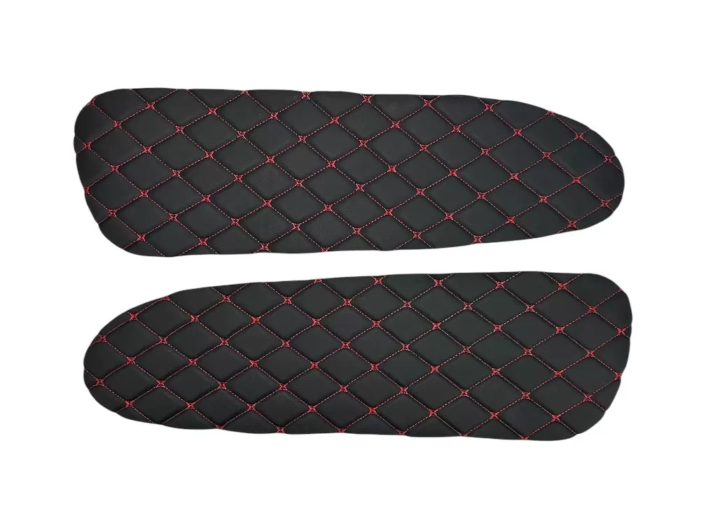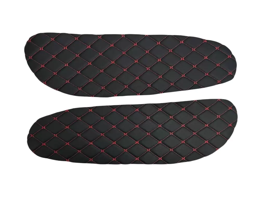 Вставки выполнены из декоративного материала с ромбовидной прострочкой. Благодаря универсальному формату подходят для самостоятельной установки, а также могут применяться при перетяжке салона или доработке штатных панелей. Цветовое исполнение может варьироваться в зависимости от комплектации.