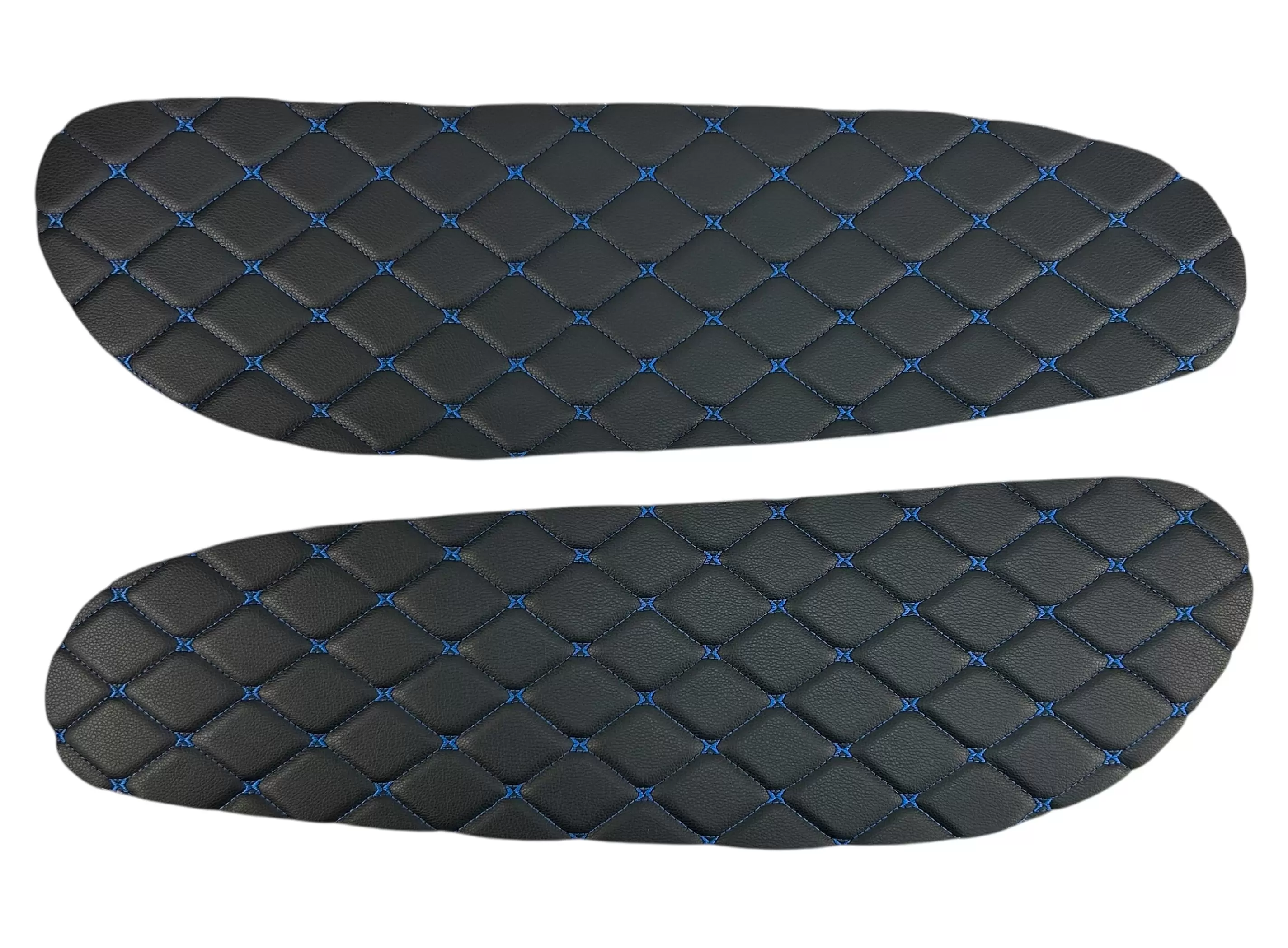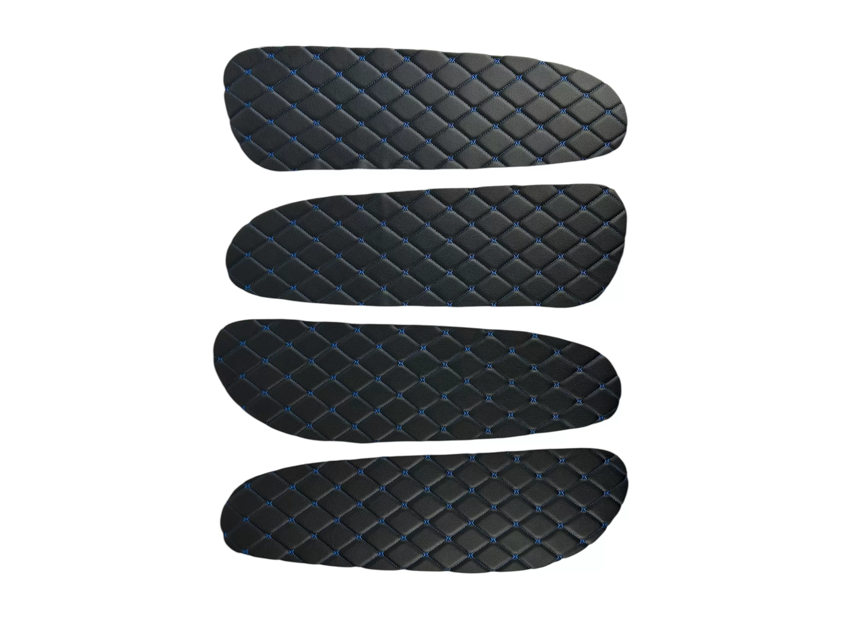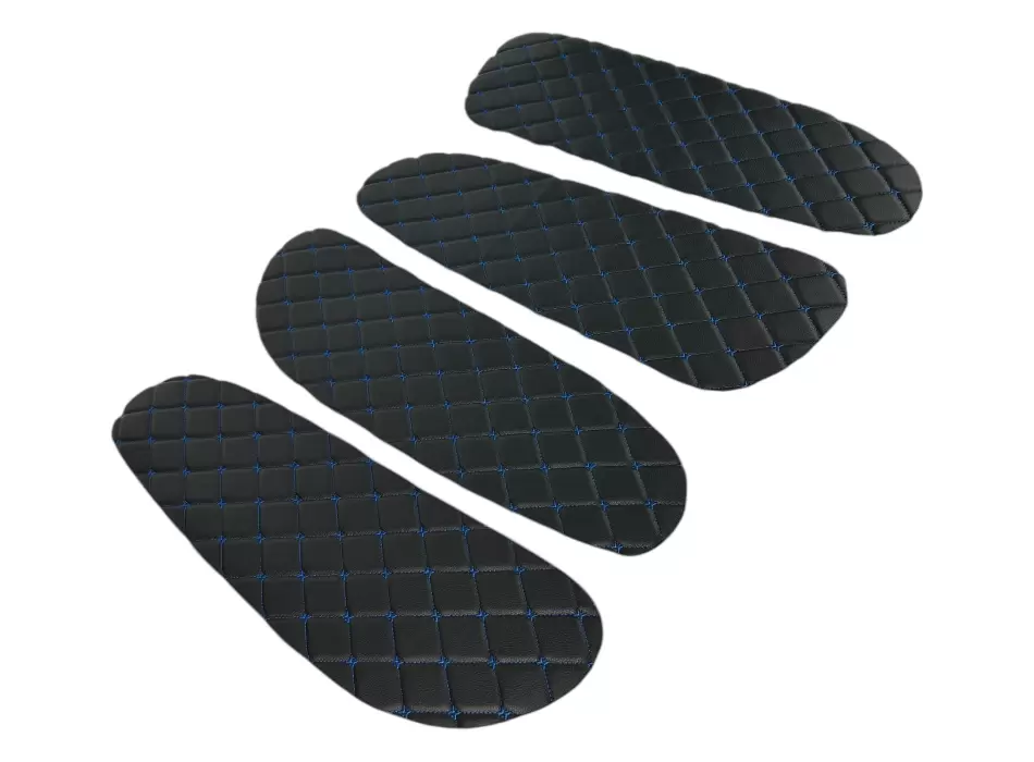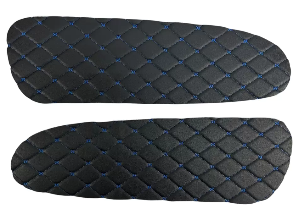 Вставки выполнены из декоративного материала с ромбовидной прострочкой. Благодаря универсальному формату подходят для самостоятельной установки, а также могут применяться при перетяжке салона или доработке штатных панелей. Цветовое исполнение может варьироваться в зависимости от комплектации.