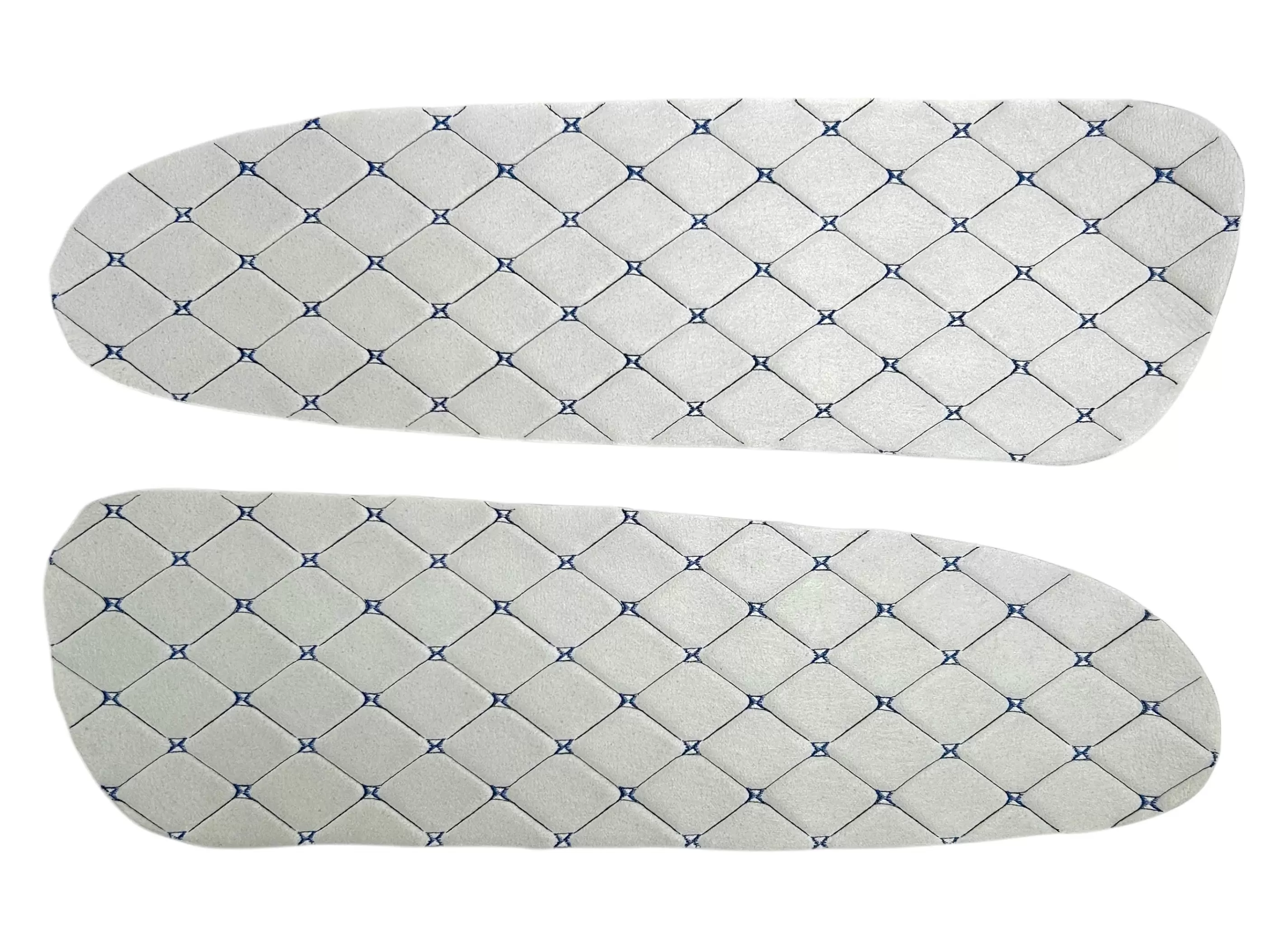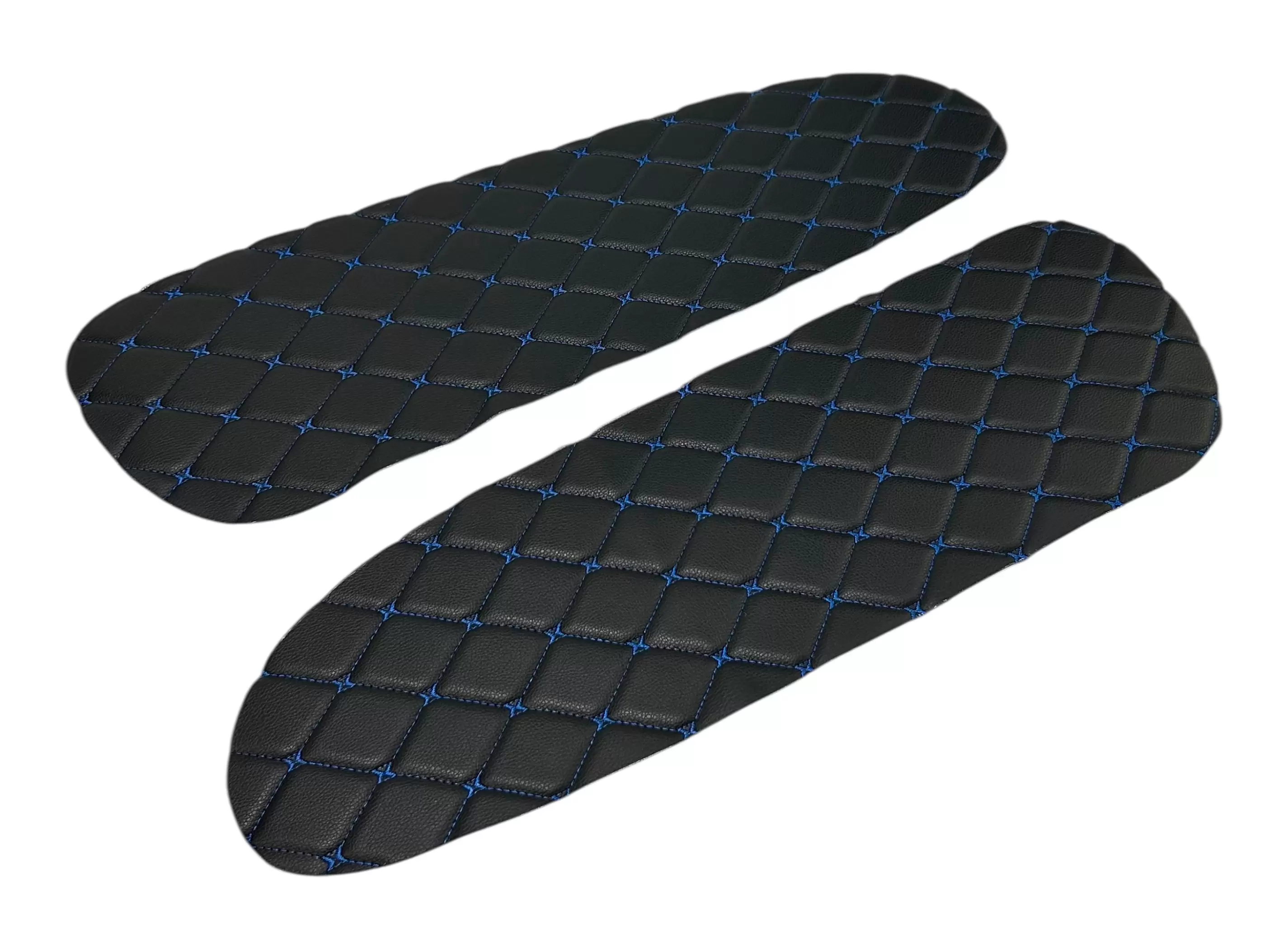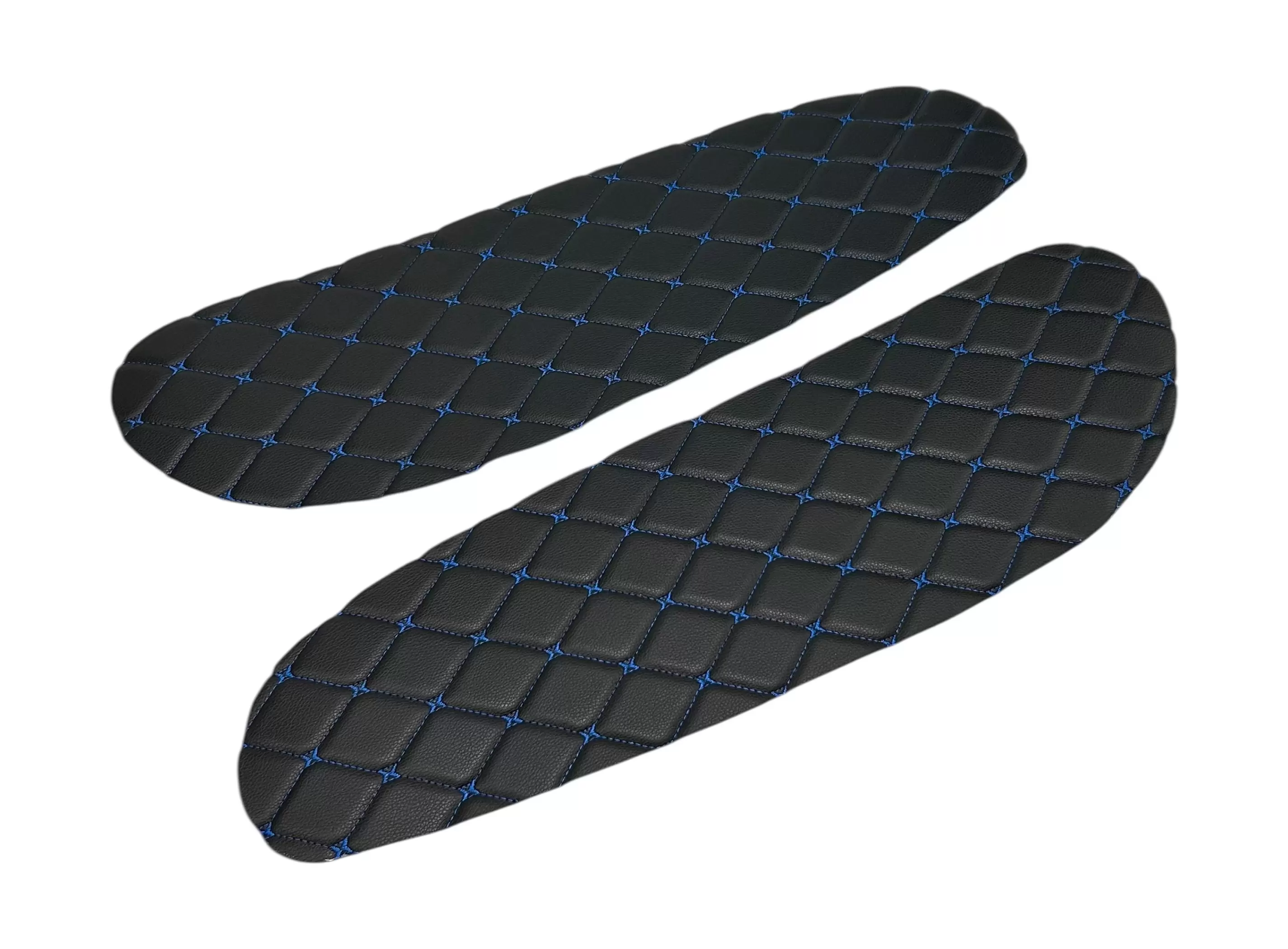 Вставки выполнены из декоративного материала с ромбовидной прострочкой. Благодаря универсальному формату подходят для самостоятельной установки, а также могут применяться при перетяжке салона или доработке штатных панелей. Цветовое исполнение может варьироваться в зависимости от комплектации.