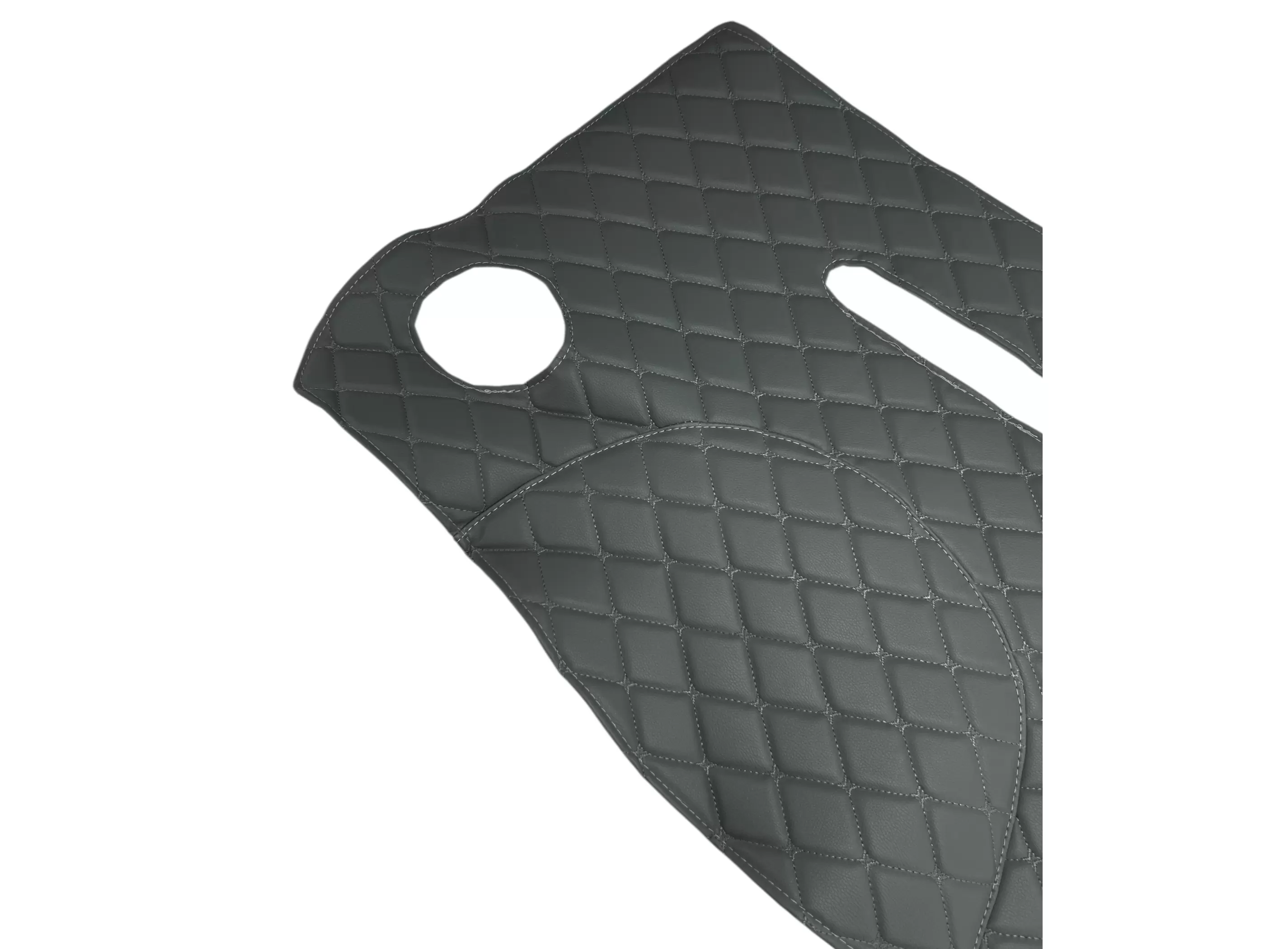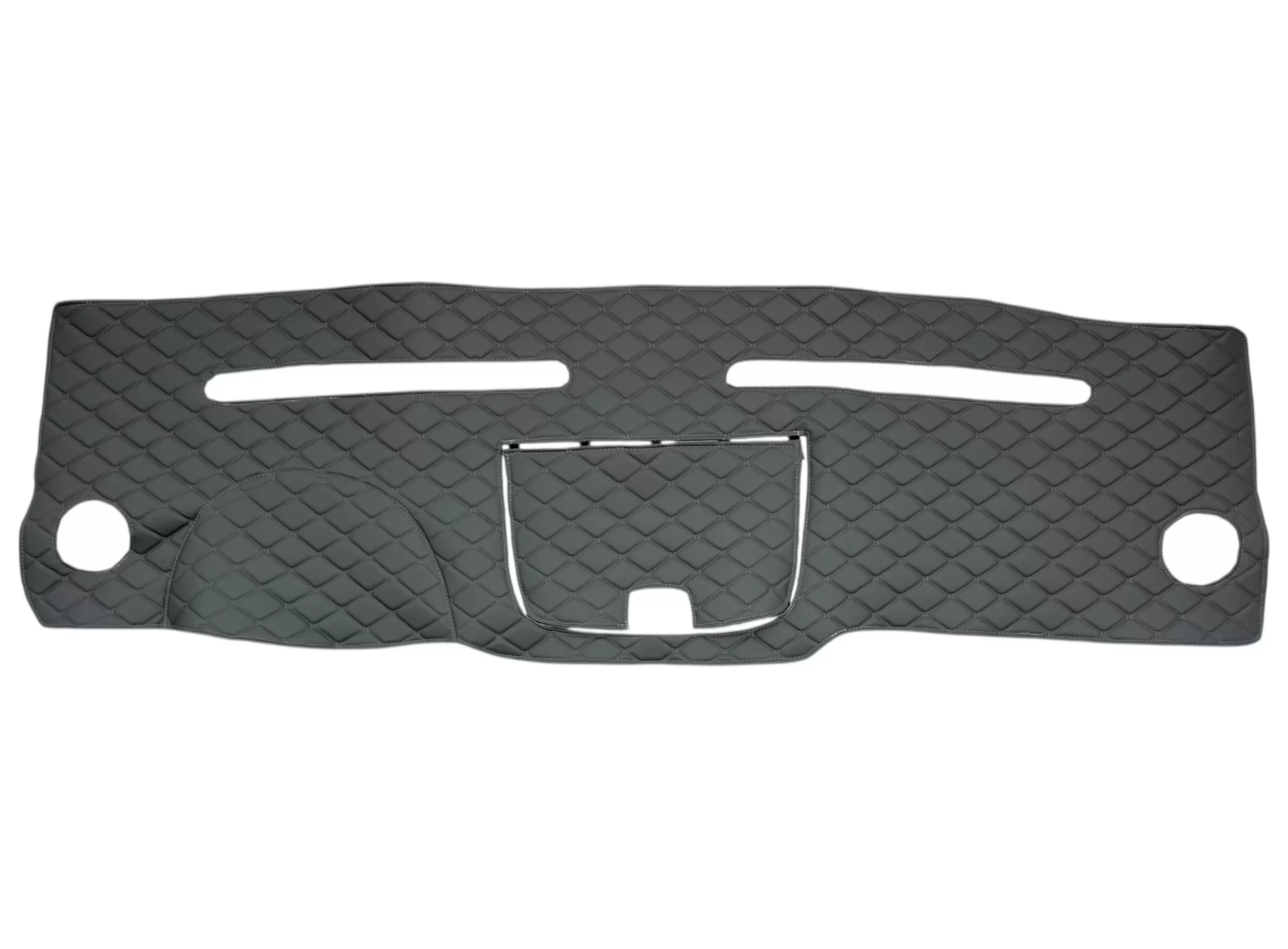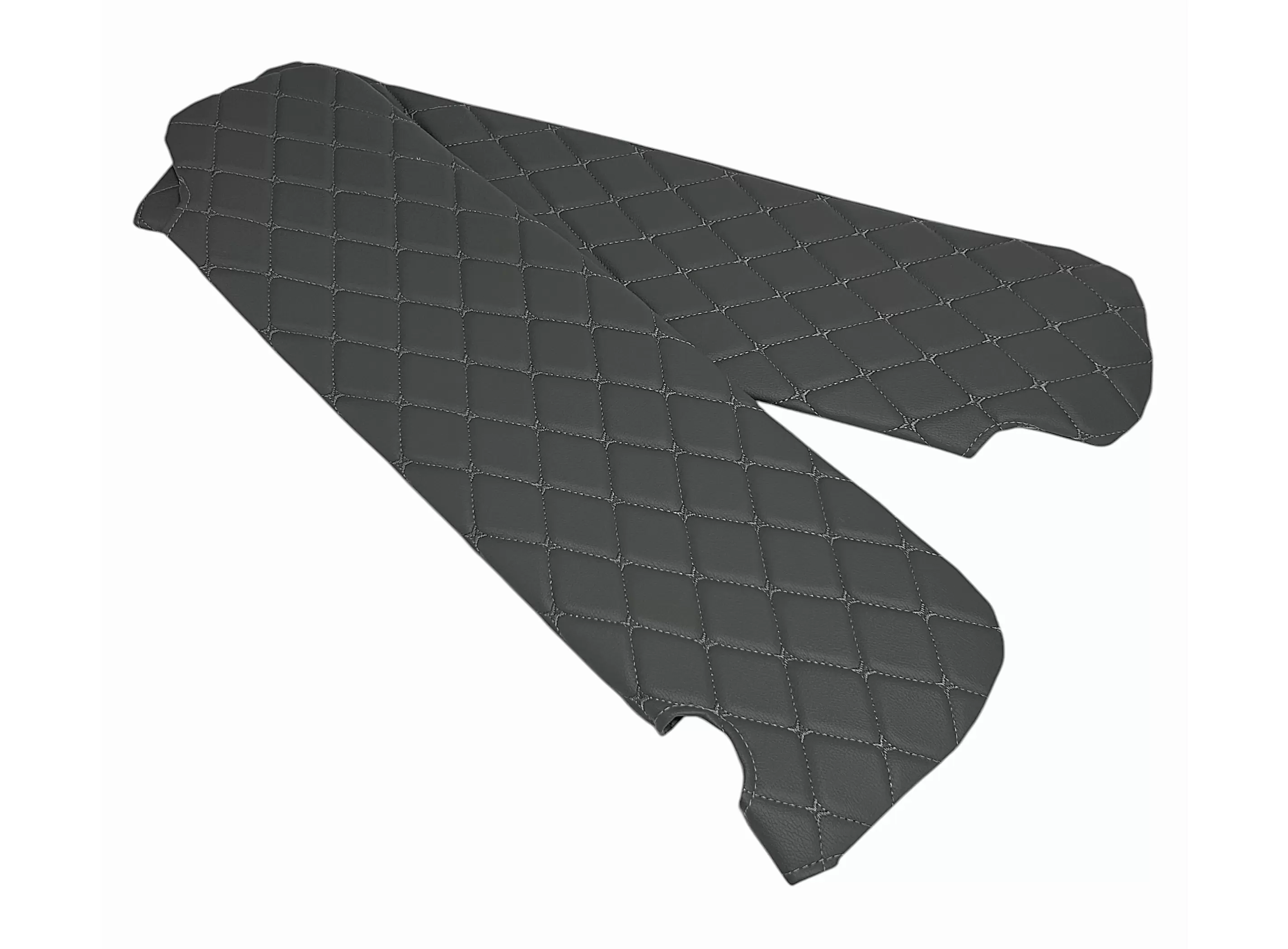 Все элементы комплекта изготовлены из винилискожи с декоративной ромбовидной прострочкой. Материал устойчив к истиранию, загрязнениям и легко очищается, что делает его практичным решением для коммерческого транспорта. Обивка доступна в различных цветовых решениях, что позволяет подобрать вариант под интерьер автомобиля.