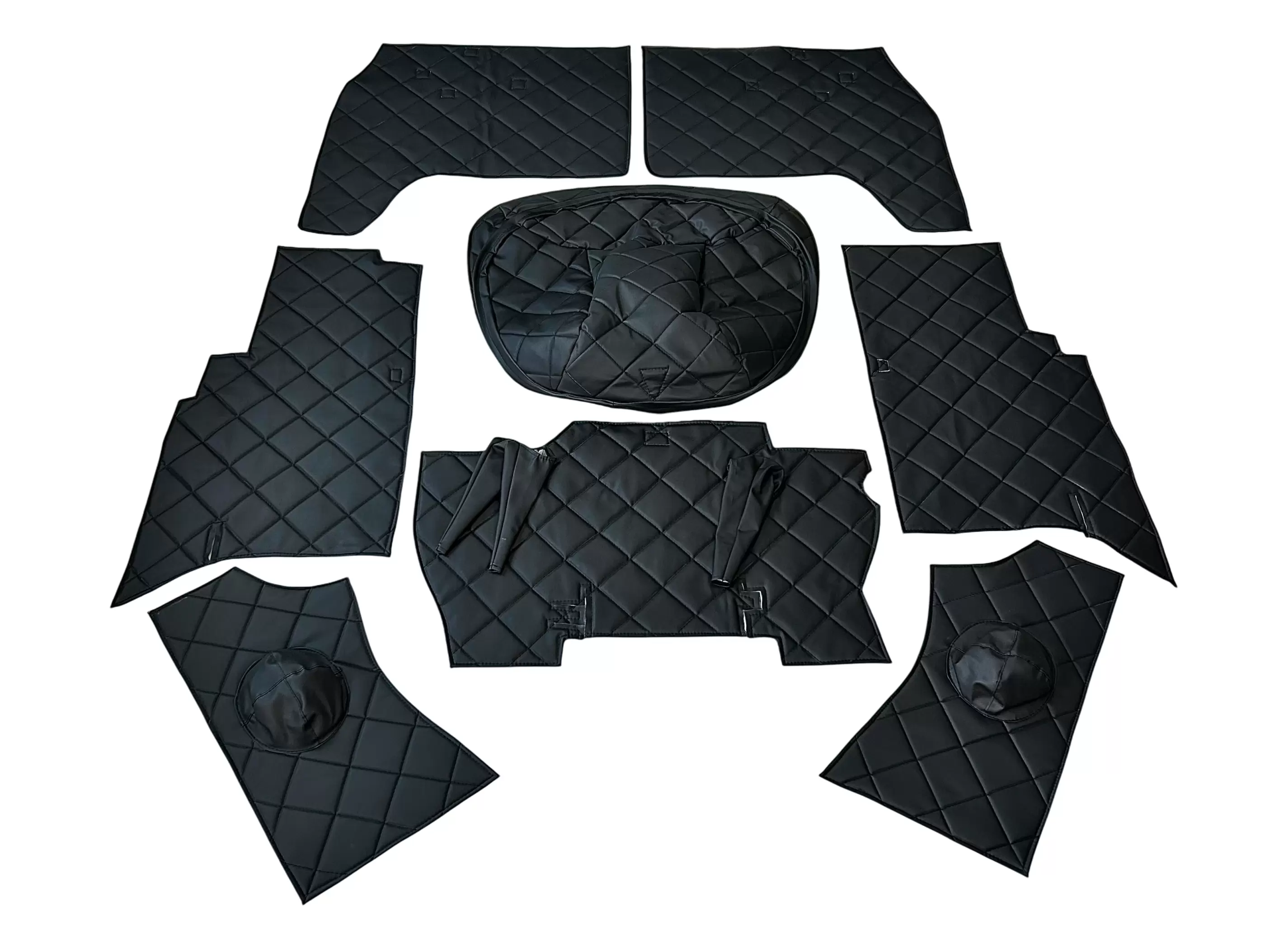 Обивка кабины УАЗ 452, Буханка (винилкожа, поролон, ватин) чёрный ромб, 8 предметов