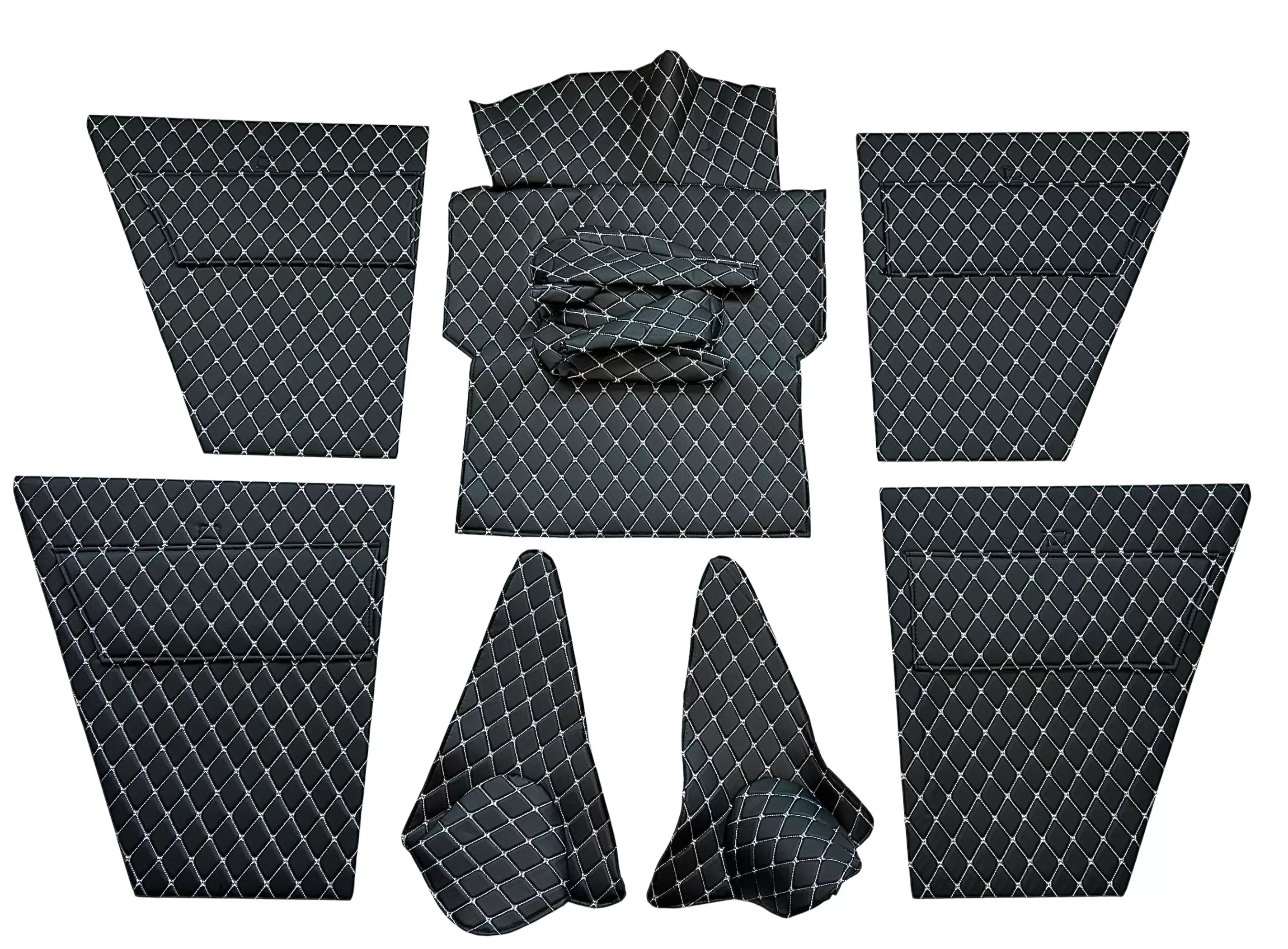 Обивка салона УАЗ 469 (ДВП) чёрный ромб декоративная белая нить 7 шт