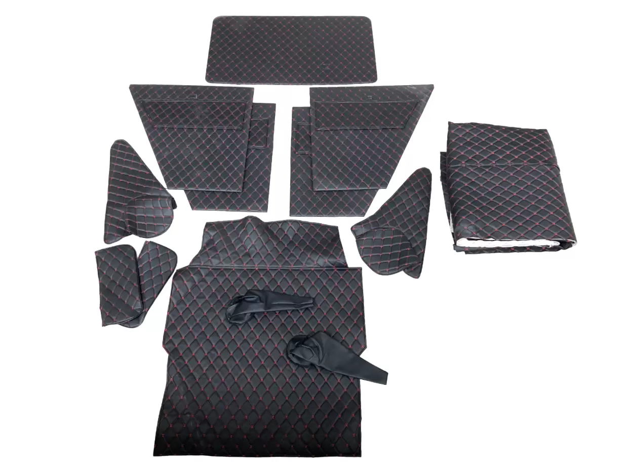 Обивка салона УАЗ Хантер (ДВП) чёрный ромб декоративная красная нить 11 шт