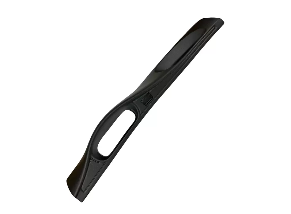 Накладка выполнена из АБС-пластика с фактурным покрытием «шагрень», устойчивым к механическим воздействиям и перепадам температуры. Чёрный цвет хорошо сочетается со стандартным интерьером автомобиля и придаёт панели более аккуратный и завершённый вид.