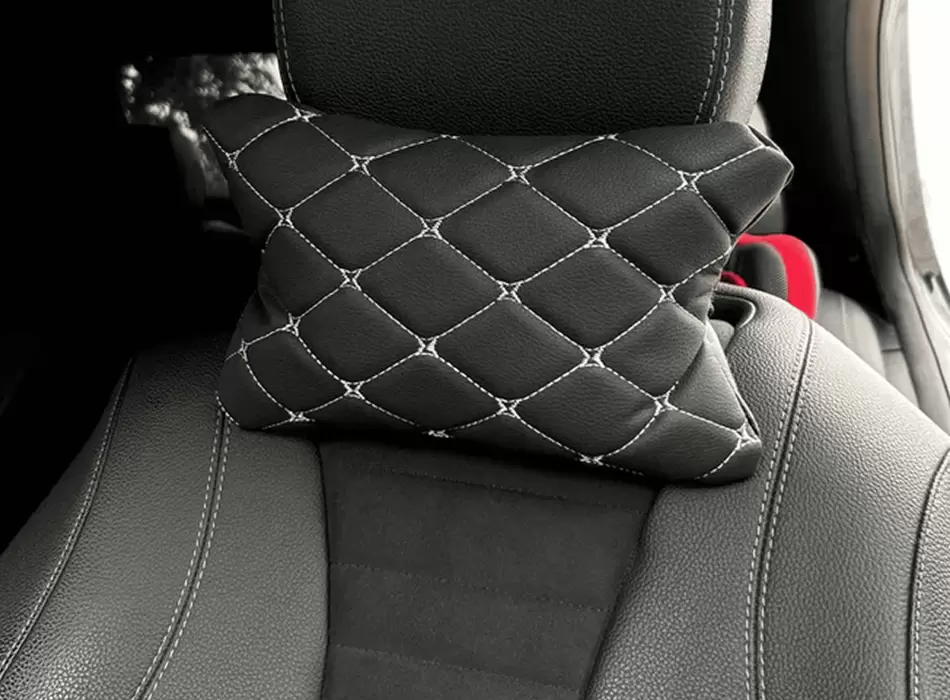 Подушки автомобильные из эко-кожи (комплект 2 шт) белый ромб